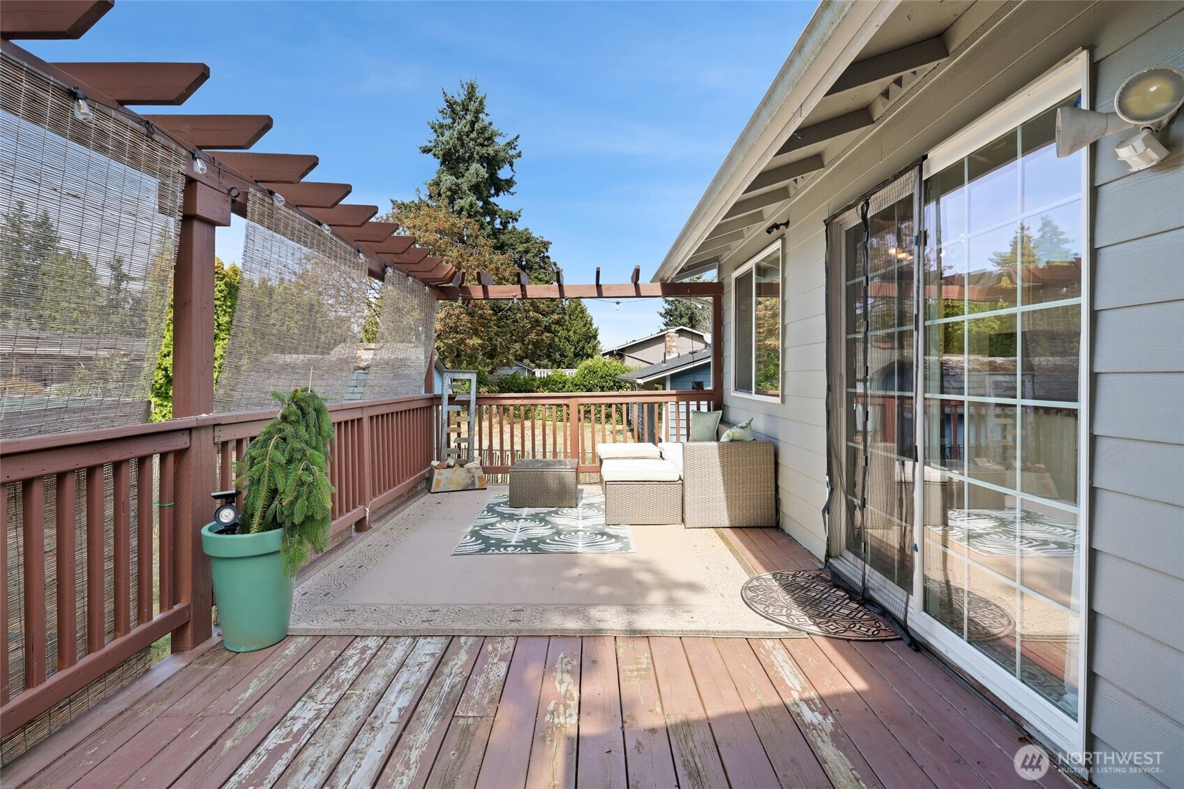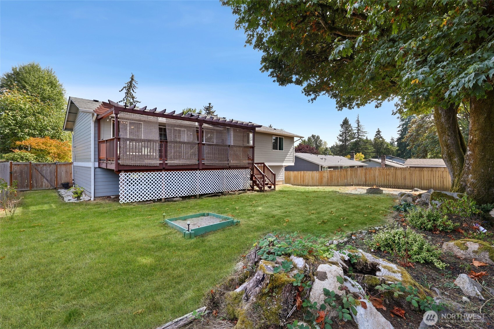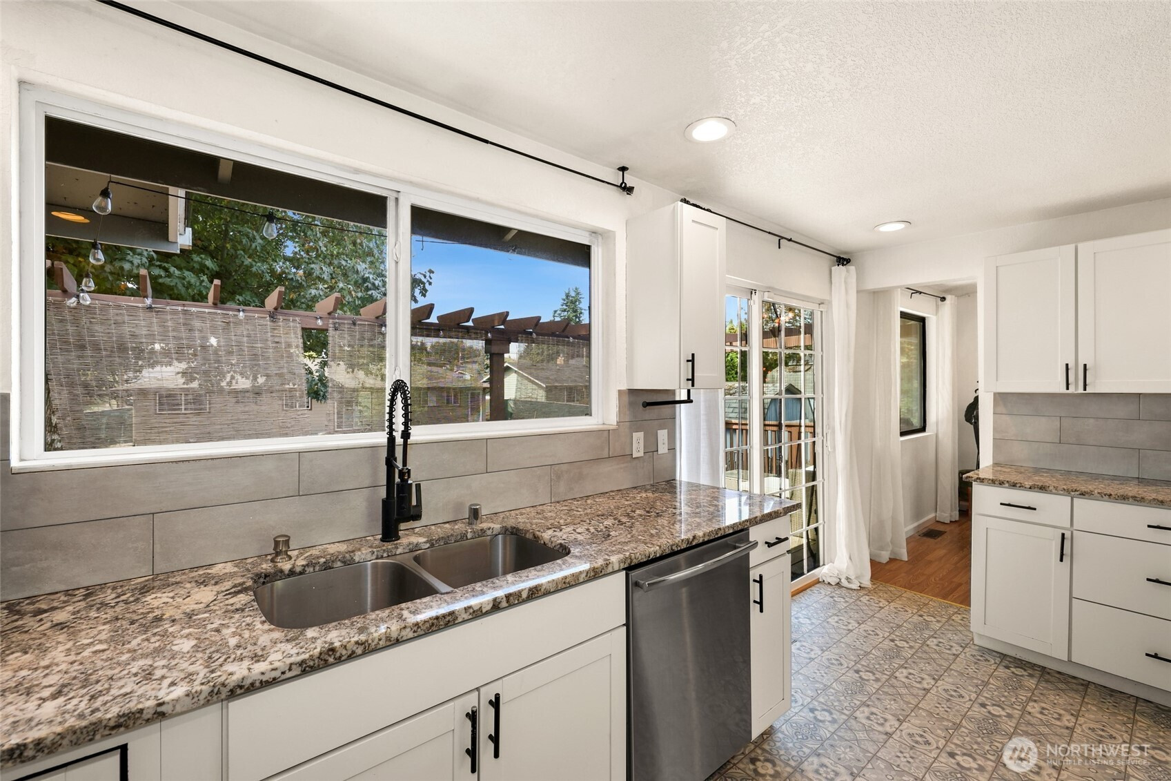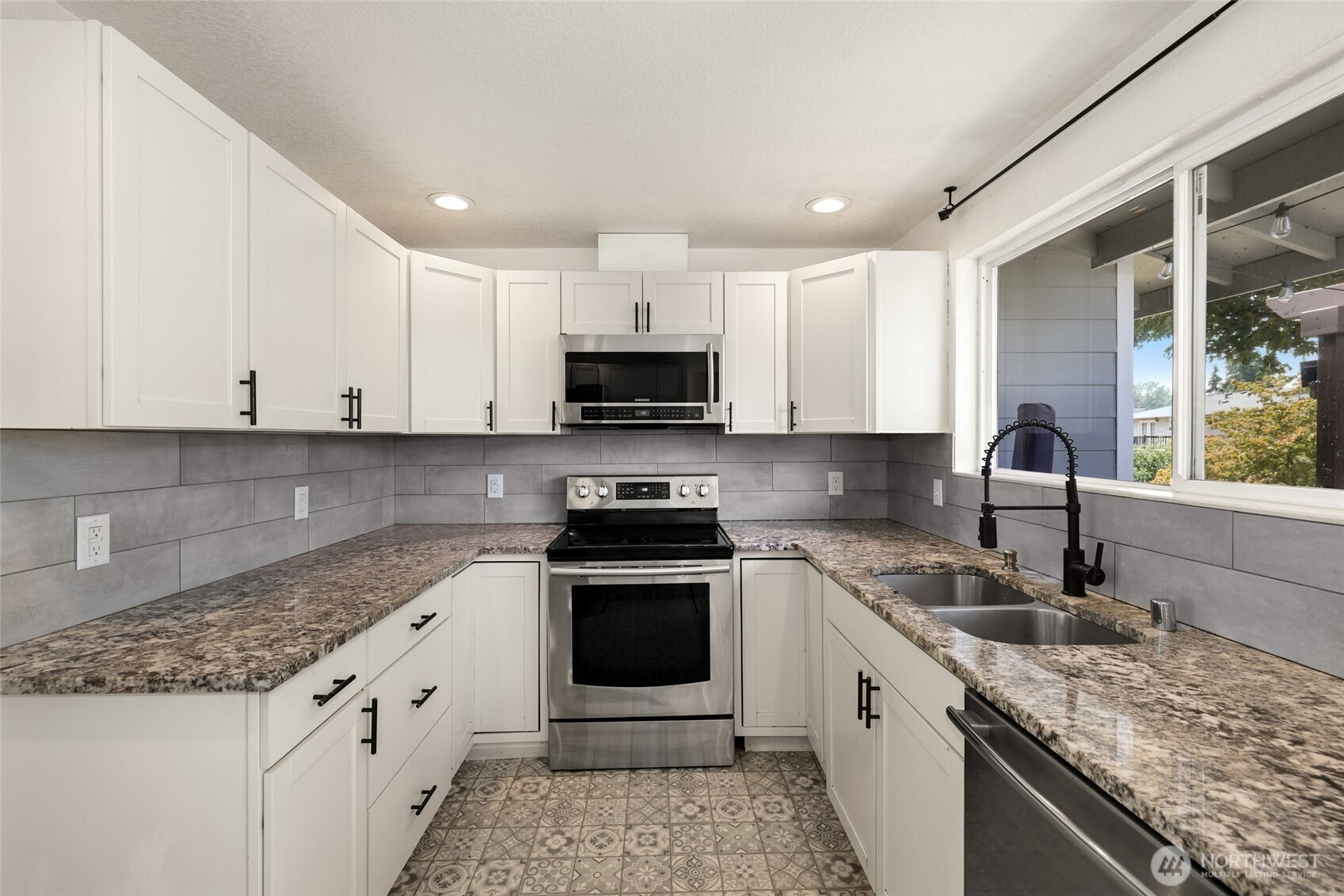 Welcome to this charming split-level home featuring a beautifully remodeled kitchen with granite countertops, white cabinets, and all appliances included. The inviting layout opens to a spacious deck overlooking the fully fenced backyard with a firepit, perfect for entertaining. The primary suite offers a private retreat with an attached bathroom, while two cozy wood-burning fireplaces—one upstairs and one down—add warmth and character. A large driveway with plenty of parking plus a garage provides convenience. Located on wide, tree-lined streets with sidewalks, this home is close to the high school and ideal for commuting. Recent updates include a brand-new furnace this year, ensuring comfort and peace of mind.