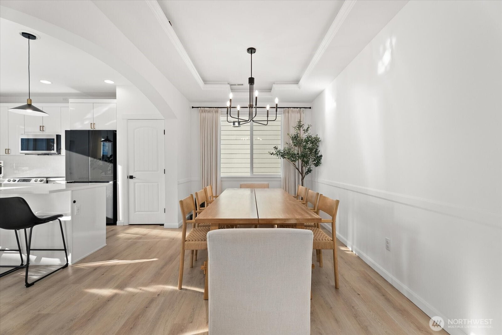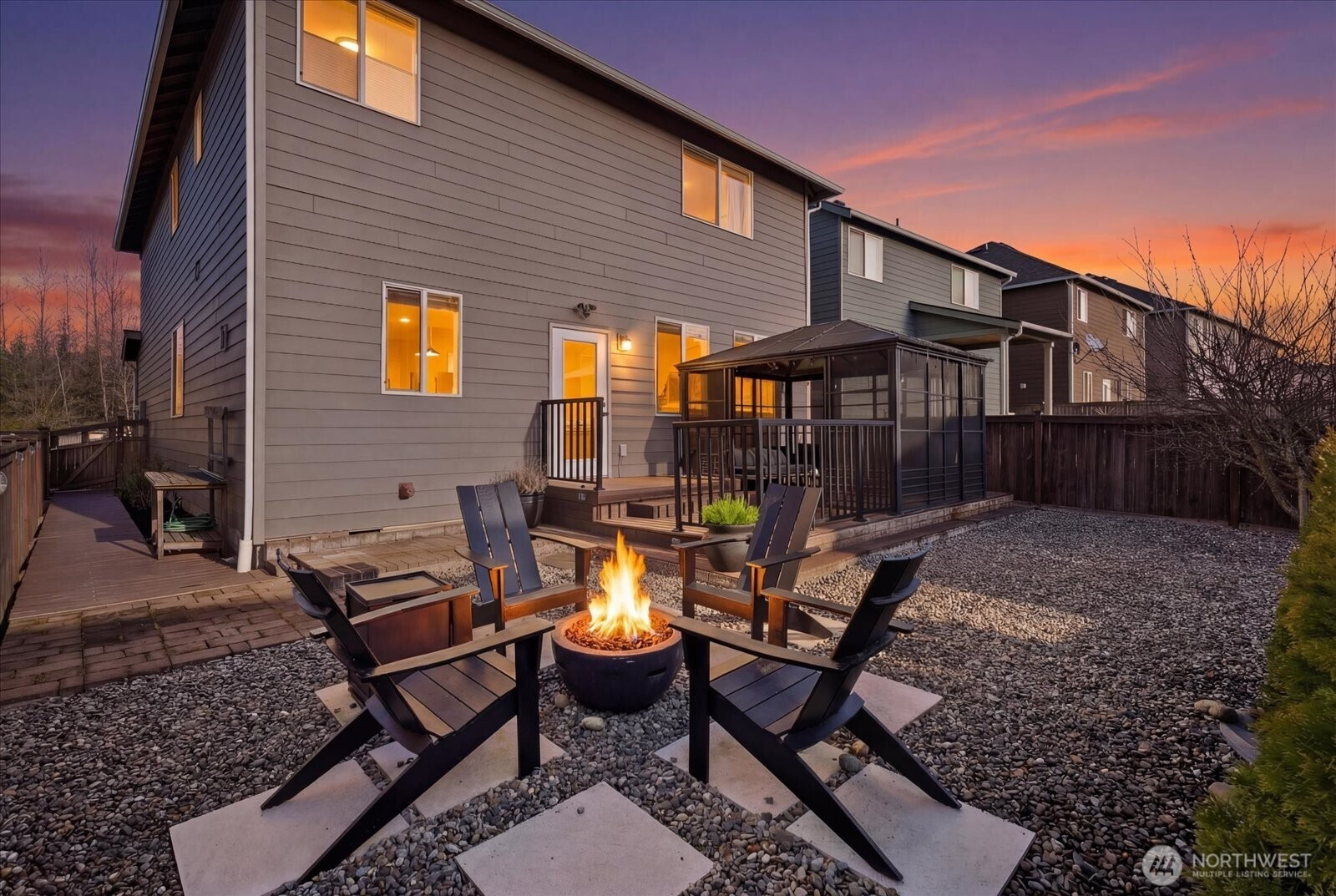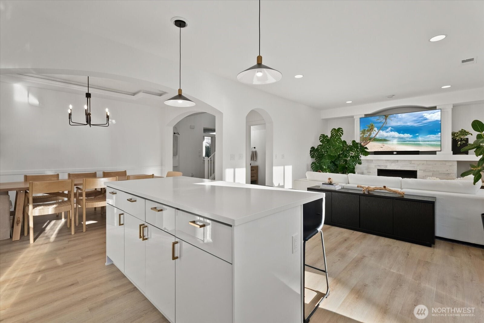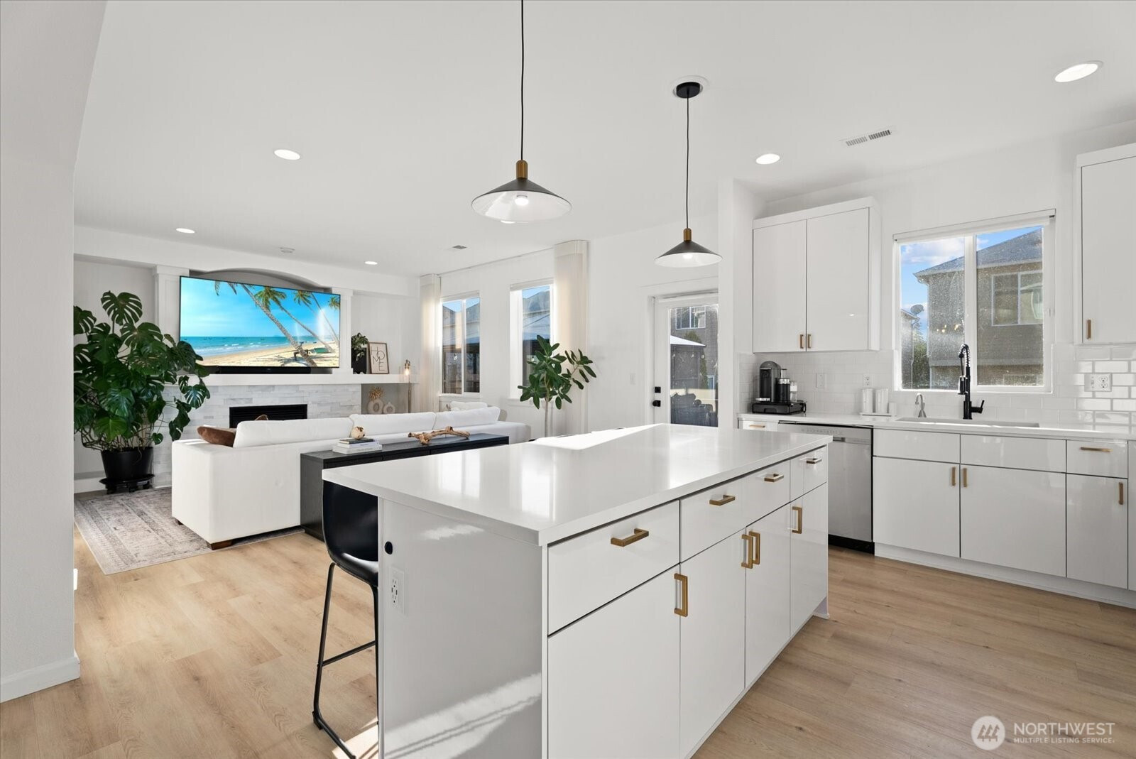 Refined living in this beautifully upgraded home showcasing exceptional style and pride of ownership with over $50,000 in thoughtful upgrades. The fully remodeled kitchen features sleek high-gloss flat panel cabinetry with elegant gold finishes, quartz countertops, and updated designer lighting over the dining area and island. Modern LVP flooring flows throughout, complemented by a stunning stone-surround fireplace that anchors the living space. Expansive formal dining room offers the perfect setting for gatherings and entertaining. Bathrooms have been thoughtfully updated with modern finishes, and the home is equipped with Hunter Douglas automated blinds for added comfort and convenience. Meticulously maintained and truly move-in ready. Enjoy a low-maintenance backyard with a spacious deck ideal for entertaining. Featuring 4 bedrooms, 2.5 baths, and a 2-car garage. Ideally located across from a community park and minutes to shopping, transit, freeways, train, and Kent Station.