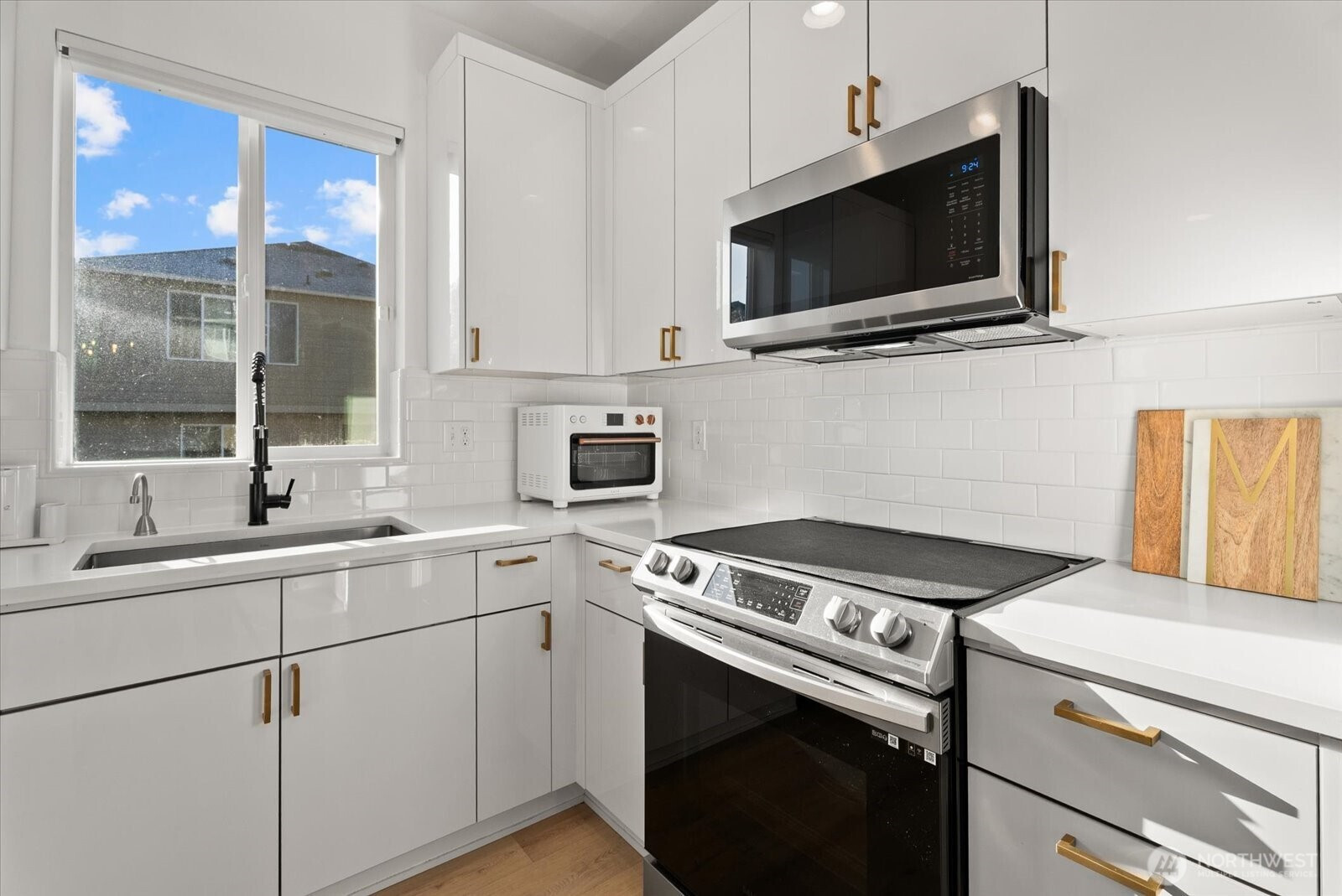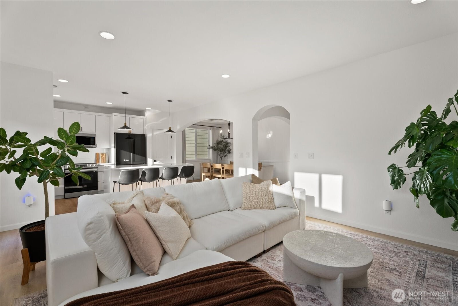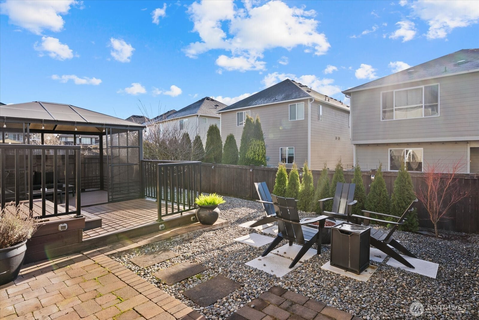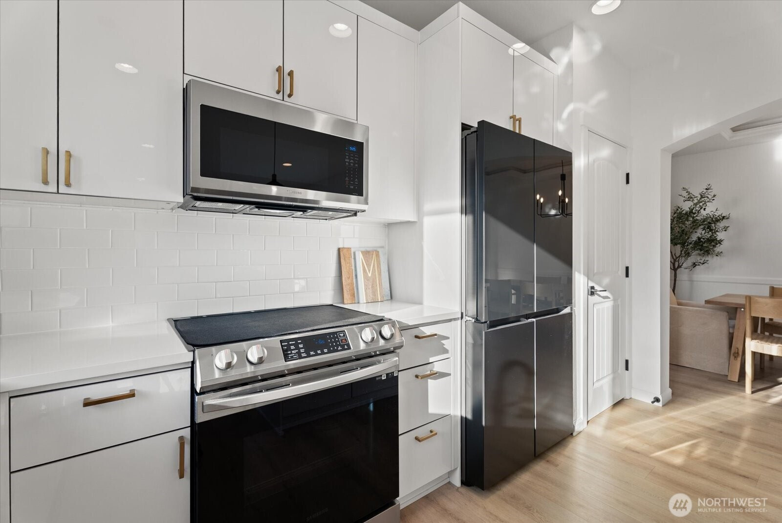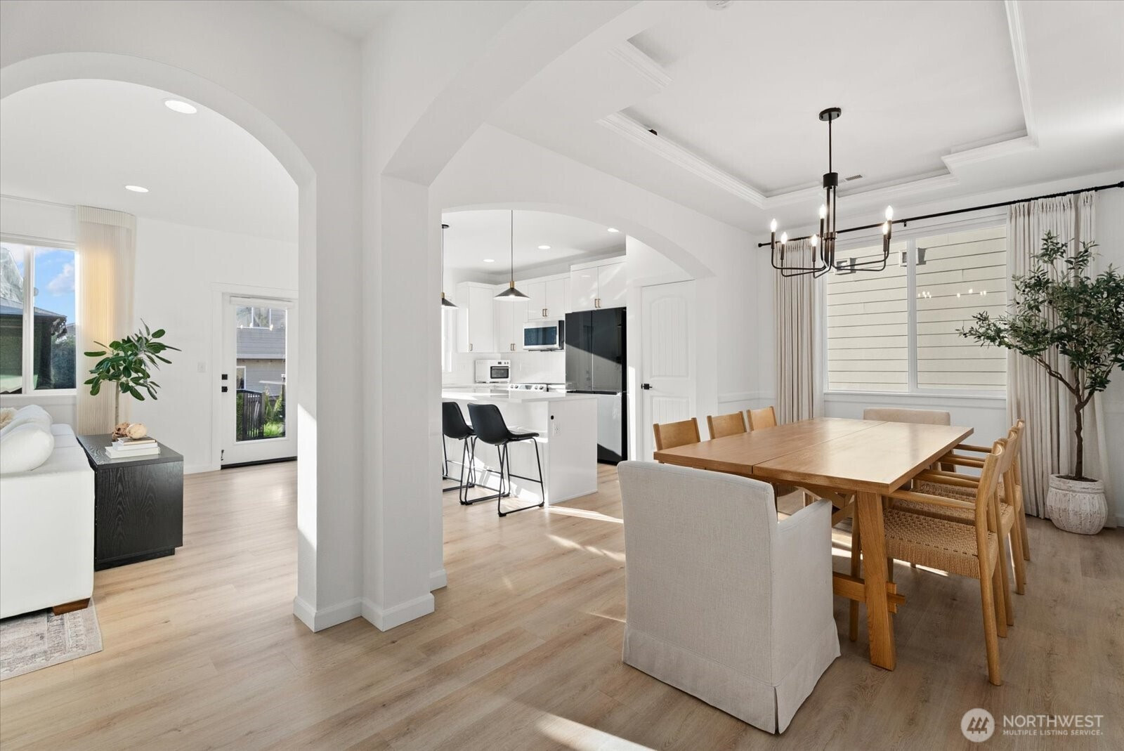 Refined living in this beautifully upgraded home showcasing exceptional style and pride of ownership with over $50,000 in thoughtful upgrades. The fully remodeled kitchen features sleek high-gloss flat panel cabinetry with elegant gold finishes, quartz countertops, and updated designer lighting over the dining area and island. Modern LVP flooring flows throughout, complemented by a stunning stone-surround fireplace that anchors the living space. Expansive formal dining room offers the perfect setting for gatherings and entertaining. Bathrooms have been thoughtfully updated with modern finishes, and the home is equipped with Hunter Douglas automated blinds for added comfort and convenience. Meticulously maintained and truly move-in ready. Enjoy a low-maintenance backyard with a spacious deck ideal for entertaining. Featuring 4 bedrooms, 2.5 baths, and a 2-car garage. Ideally located across from a community park and minutes to shopping, transit, freeways, train, and Kent Station.