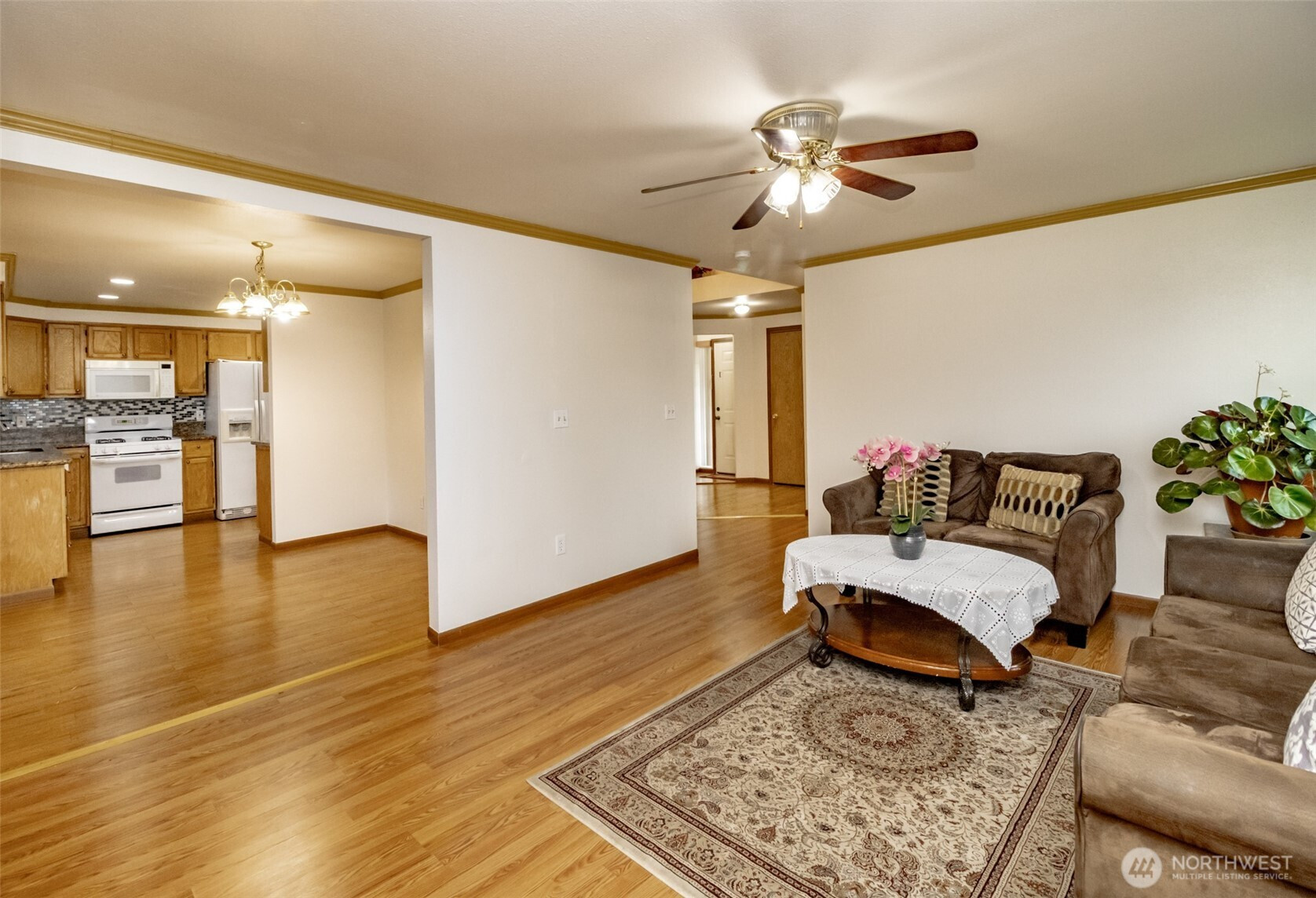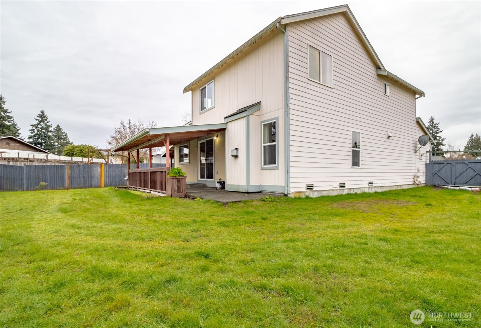 Welcome Home! Beautiful 3 Bedrooms, 2.5 Baths, and 2 Car Garage. Open Concept W/Natural Light. Split Entrance-On Right Side Welcome You Cozy Livingroom, Formal Dinning Area Open To Kitchen. On The Left You'll Find Convenient Hallway to A Half Bathroom, Laundry Area, and Family Room W/Gas Fireplace. Family Room Open to Breakfast Nook and Kitchen Area. 2nd Floor Has 3 Bedrooms and 2 Full Bath. Spacious Master Suite w/Walk-In Closet and Full Bathroom. Covered Patio Off Kitchen. Very Huge Yard w/Trees and Fully Fenced. Gate Can Be Open For RV parking. Close To HS School And Easy Commute to Seattle(North) or Tacoma(South). Free One Year Home Warranty W/Fidelity.