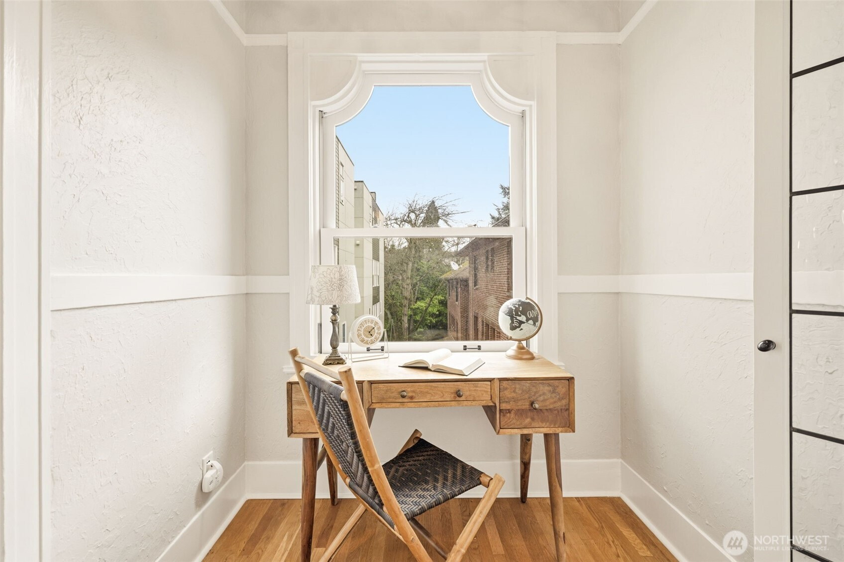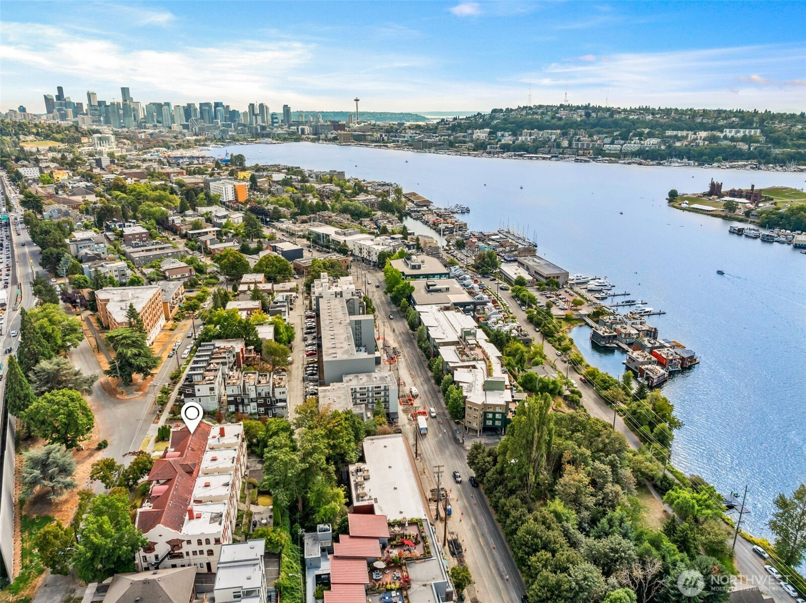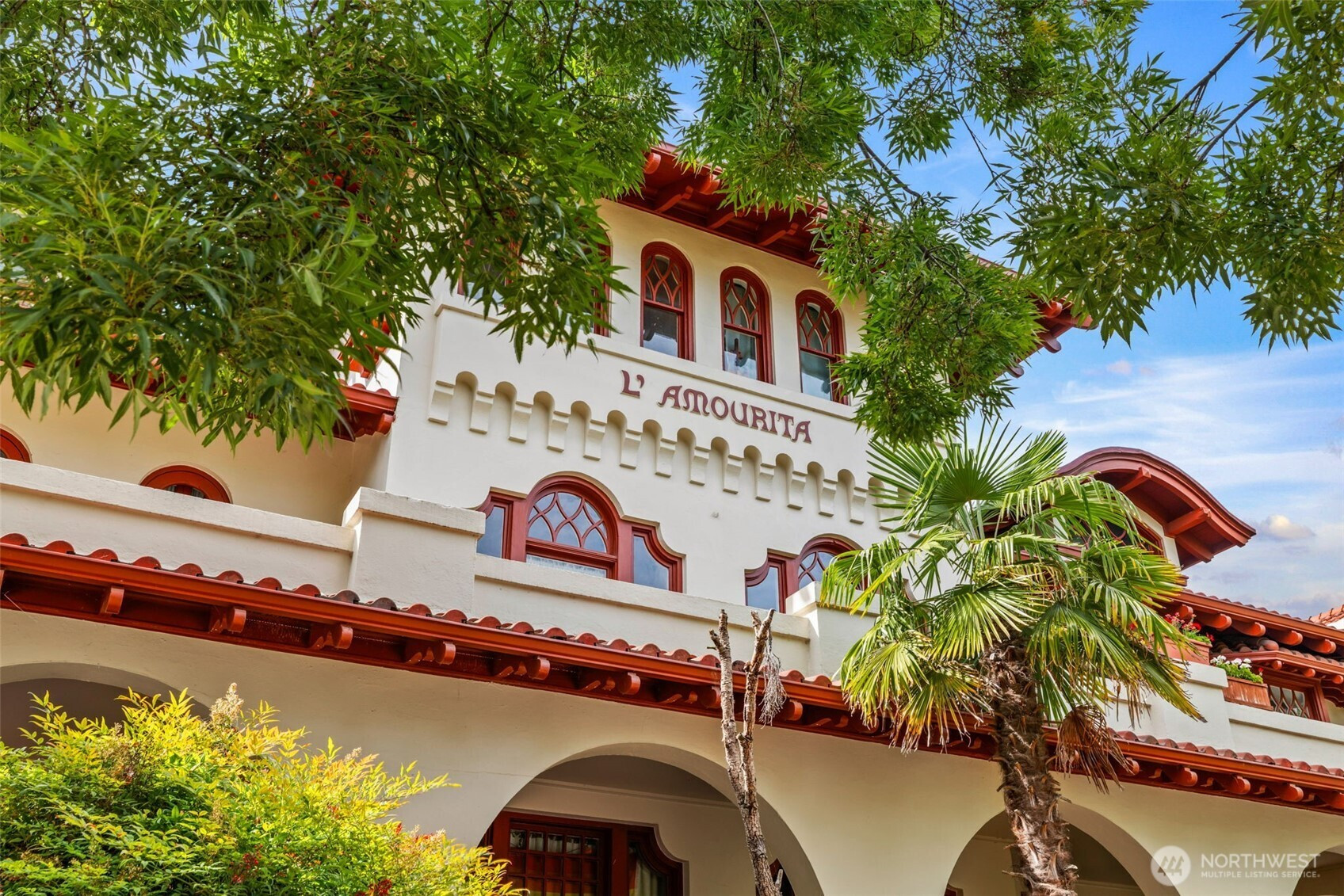 Live in Seattle’s historic landmark, L’Amourita, where the romance of Eastlake’s 1909 Spanish Revival meets stunning Lake Union views. This two-level home showcases original millwork, coved 9-foot ceilings, inlaid oak floors, arched doorways, and an intricate Art Deco tile fireplace surround. Thoughtfully updated with stainless steel appliances and quartz countertops, the kitchen blends seamlessly with timeless built-in cabinetry. The upper level offers a private retreat featuring a bedroom, office space, and a full bathroom. The lower level provides versatile flex space ideal for a workout area, additional office, guest retreat, or cozy reading nook, complete with a walk-in closet that offers potential for conversion to an additional bathroom. Enjoy the European-inspired garden patio, take in sunset views, and own a true piece of Seattle’s architectural history. Ideally located with easy access to public transit, walking trails, and the freeway, and just steps from Eastlake cafés and markets. Freshly painted throughout, with monthly co-op dues that include property taxes and most utilities. You’re going to love living here.