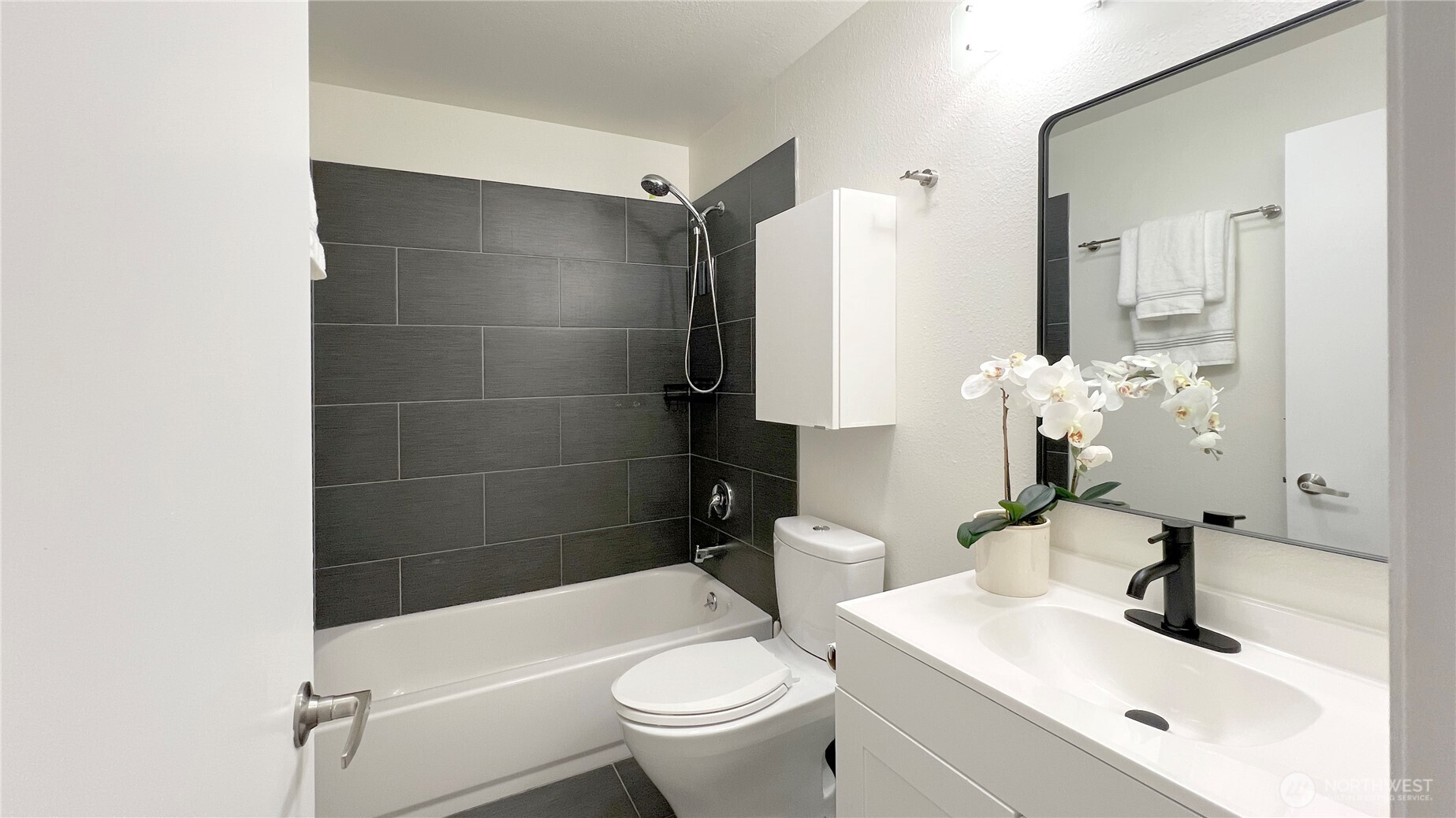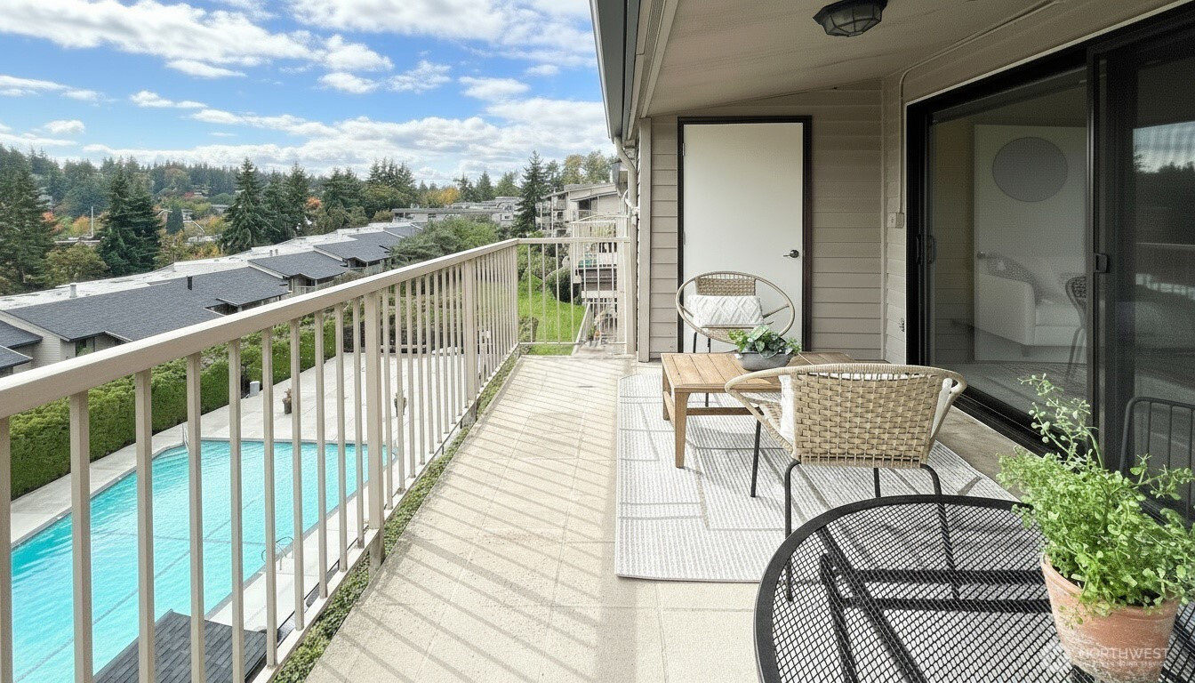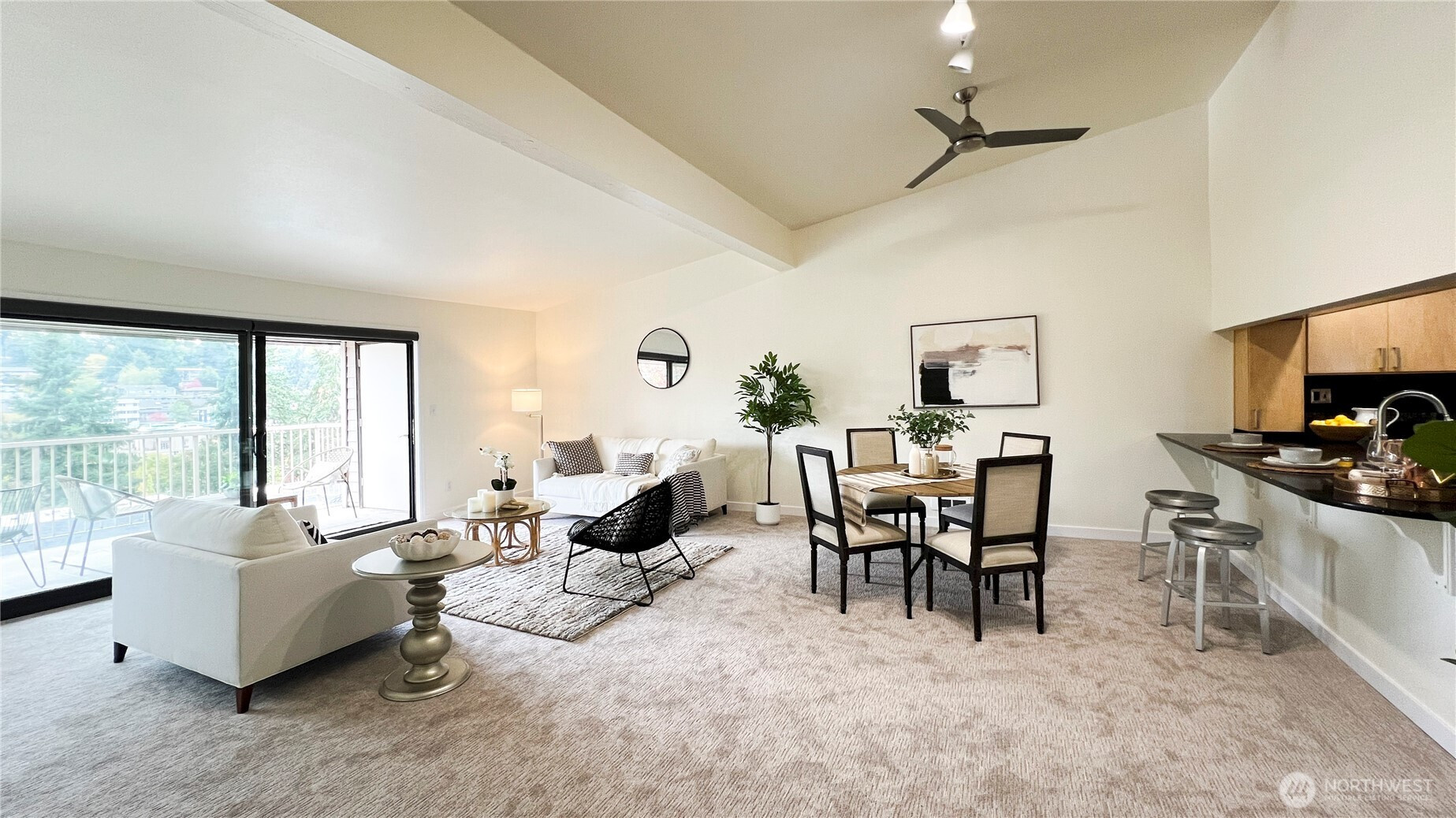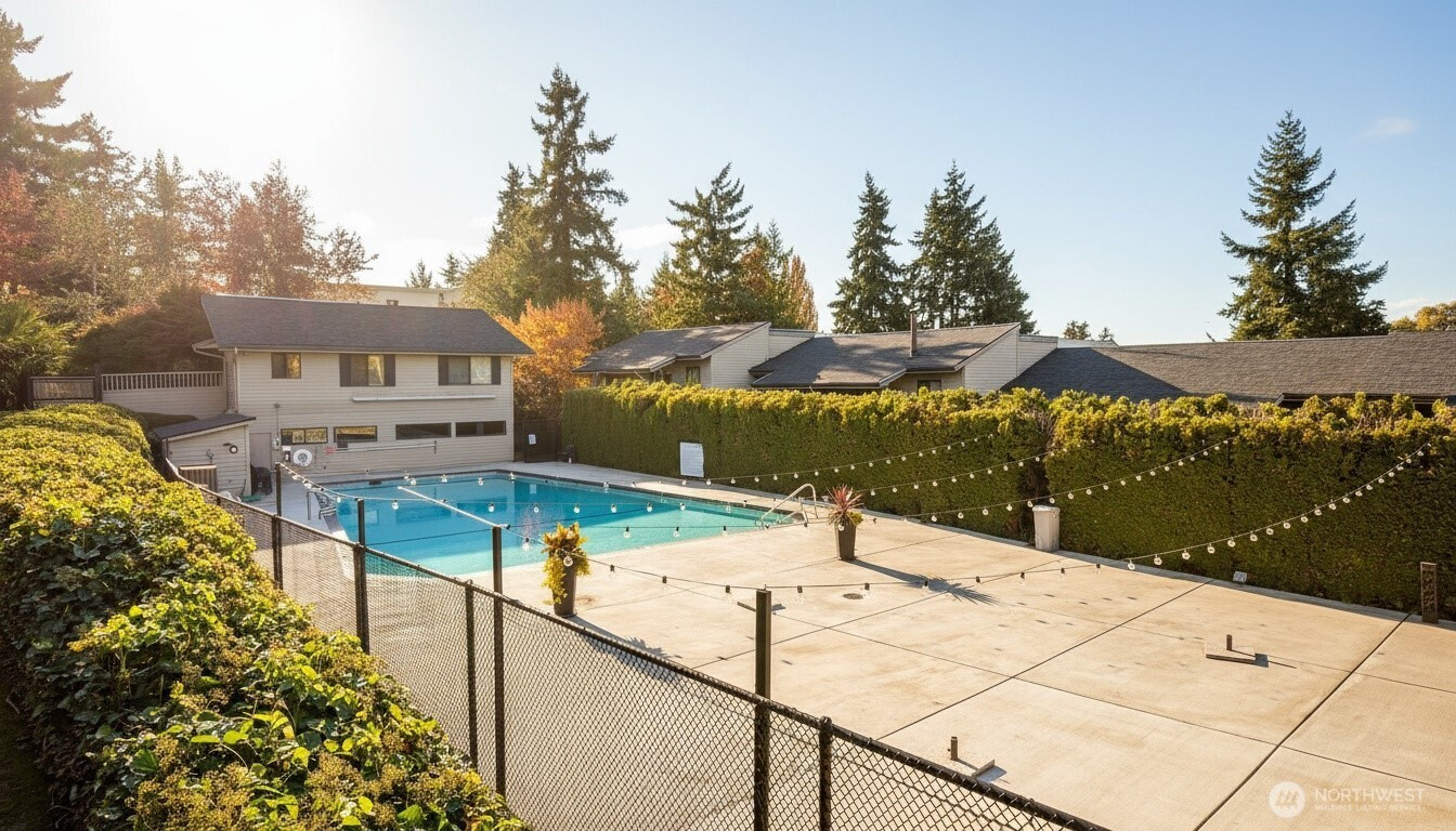 A rare opportunity: top-floor end unit with vaulted ceilings and great Cascade Mountain views. This spacious 2-bedroom plus bonus room condo on Mercer Island features a bright bedroom, an inviting living room, and a private covered deck to enjoy the stunning view. Light-filled interiors boast vaulted ceilings, fresh paint, and beautifully updated bathrooms. The generous kitchen is designed with a breakfast bar and stainless-steel appliances. Community amenities include two parking spaces, an outdoor pool, and affordable HOA dues. Just a short walk to markets, cafés, and parks, with quick access to Bellevue, Seattle, and I-90. All within the award-winning Mercer Island School District.