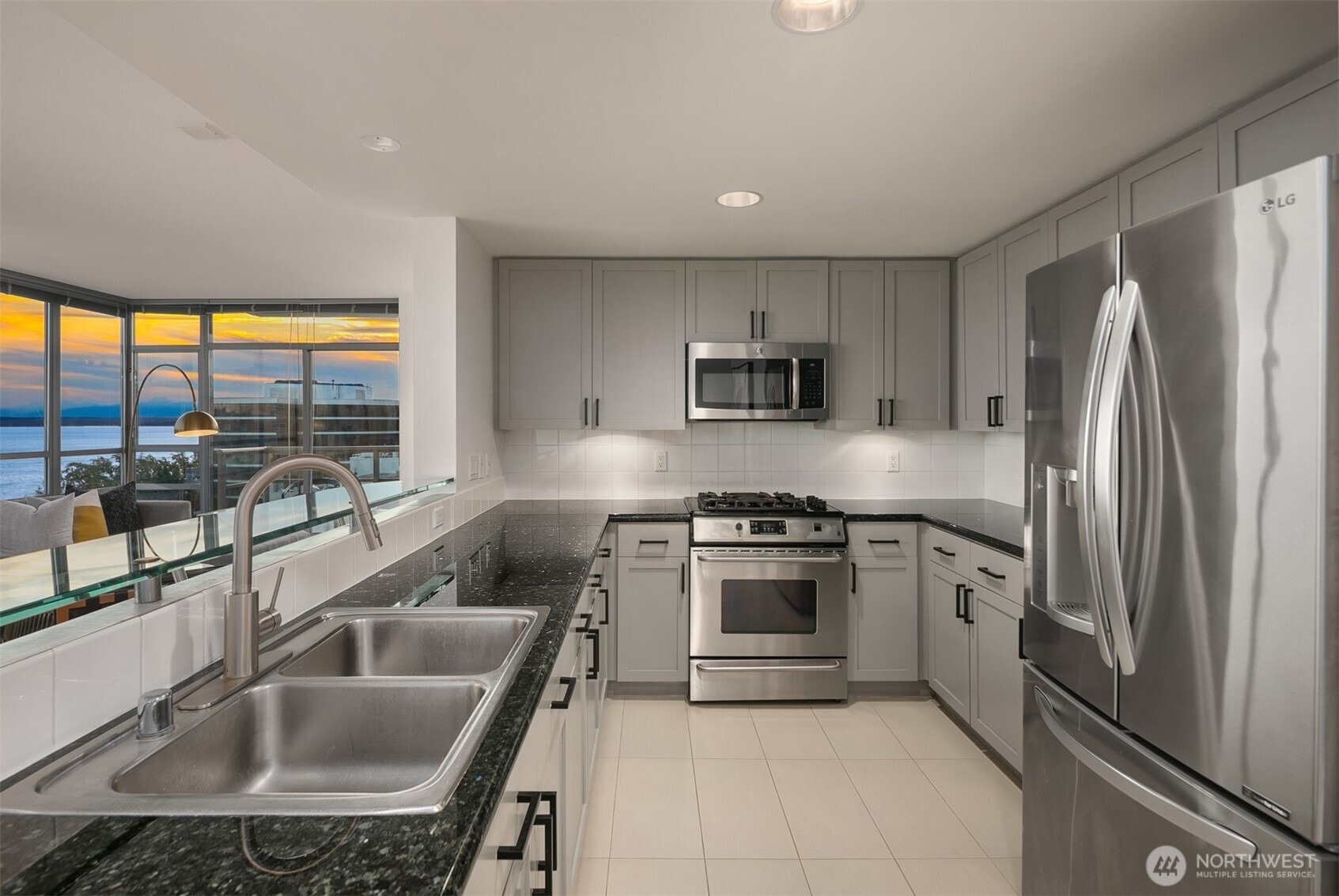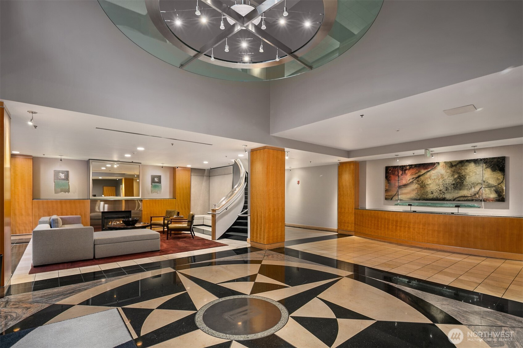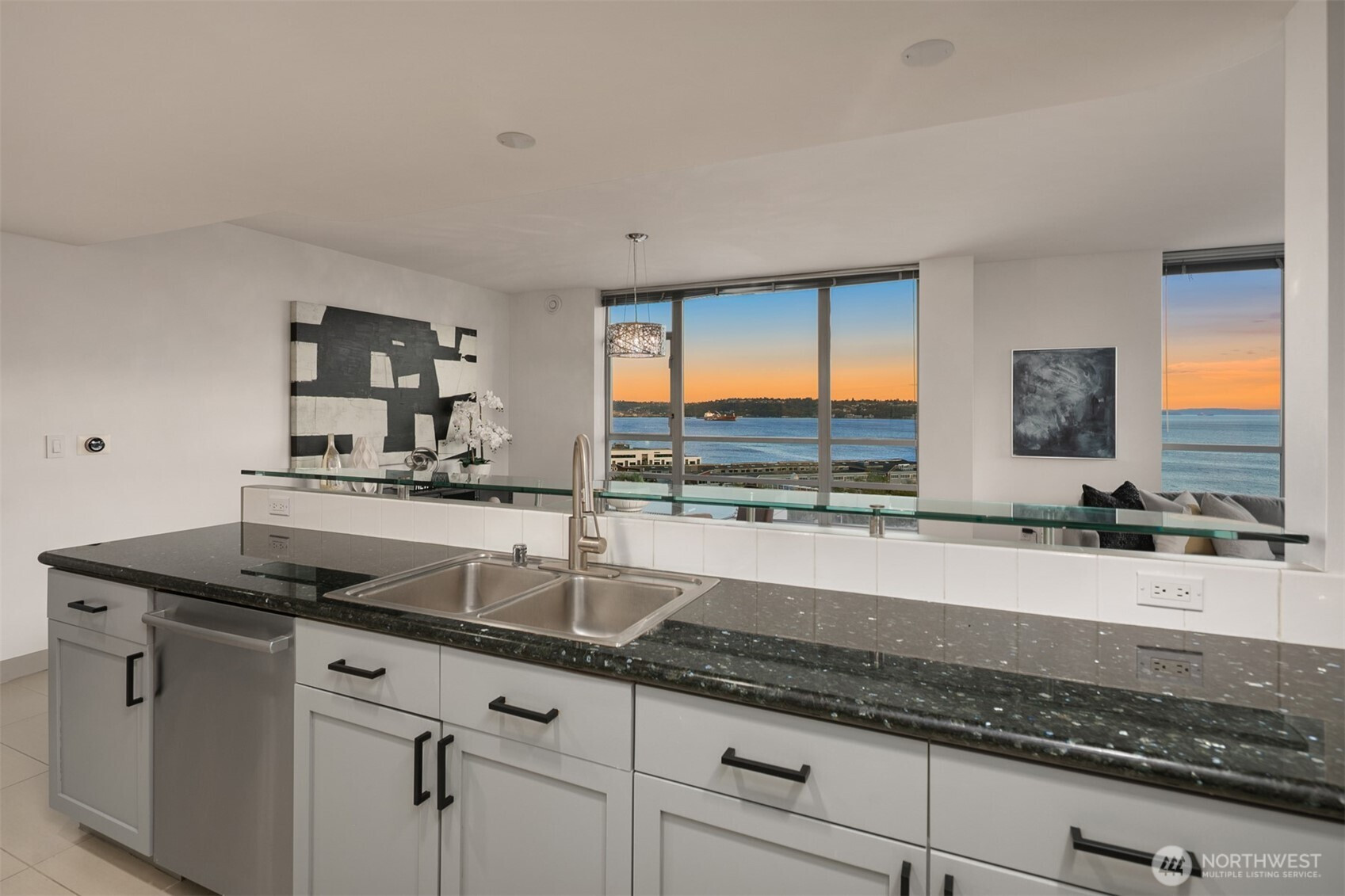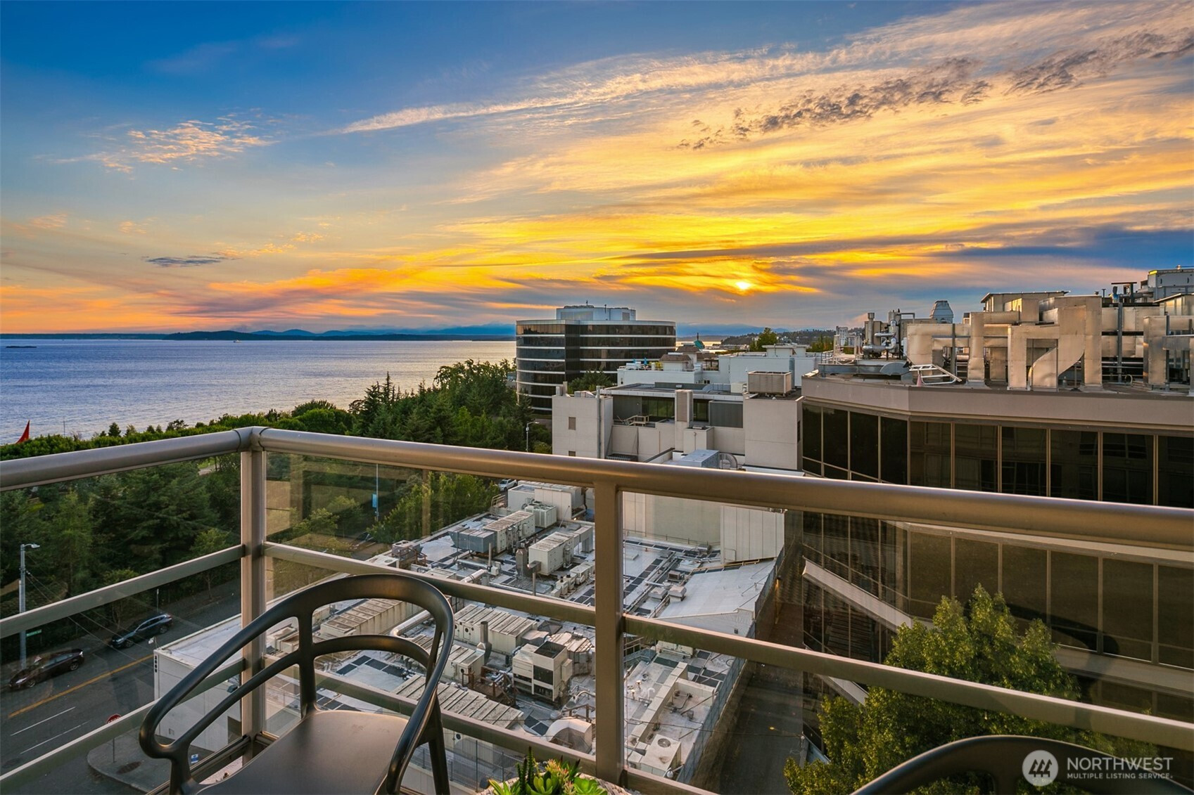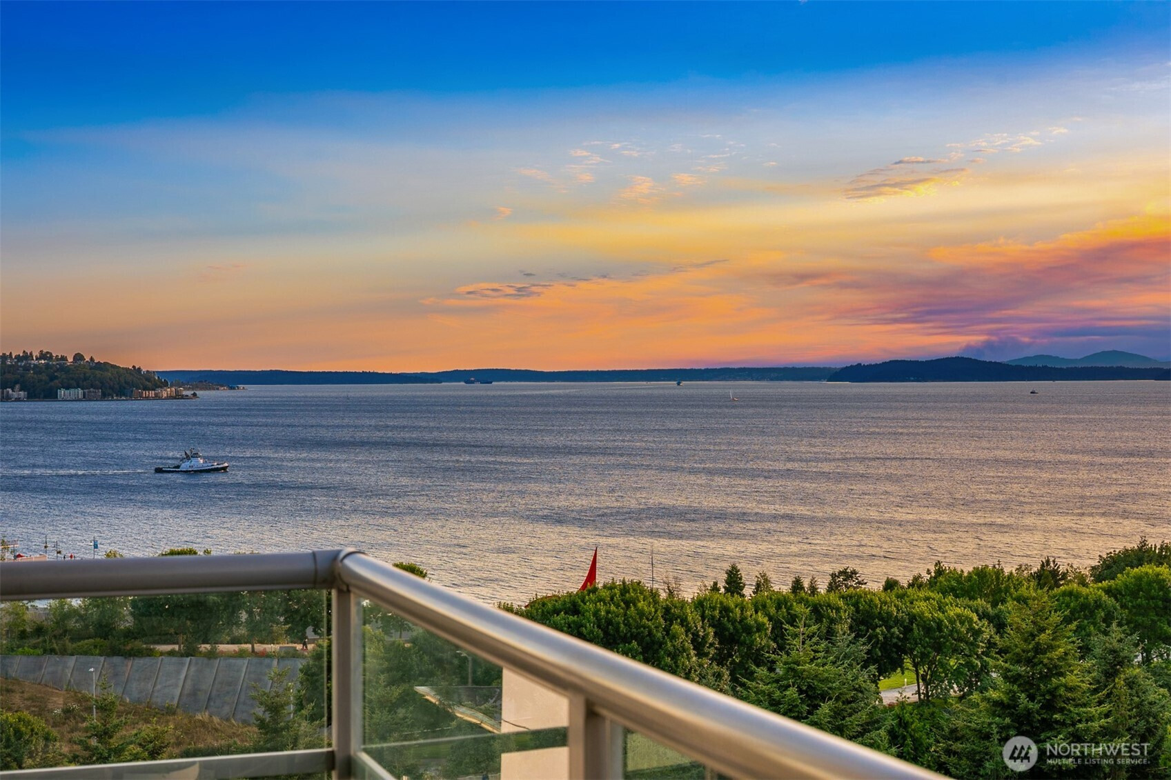 Commanding panorama of Elliott Bay + Olympics highlight this sophisticated 2BR Belltown corner condo with 2 secured parking spaces. Natural light cascades thru floor-to-ceiling windows which dramatically frame views of sunsets, ferries + Sculpture Park. Open floor plan offers optimal modern living with great entertainment potential. Bright LR features distinctive FP, chic hardwoods + access to deck. Proseries stainless appliances and slab granite counters help define modern kitchen. Stunning glass breakfast bar adds style & function. Expansive vistas also found in spacious bedrooms with owner’s BR including ensuite + California closet. Elevate your lifestyle in one of city’s hippest neighborhoods with dining, parks + nightlife just outside.