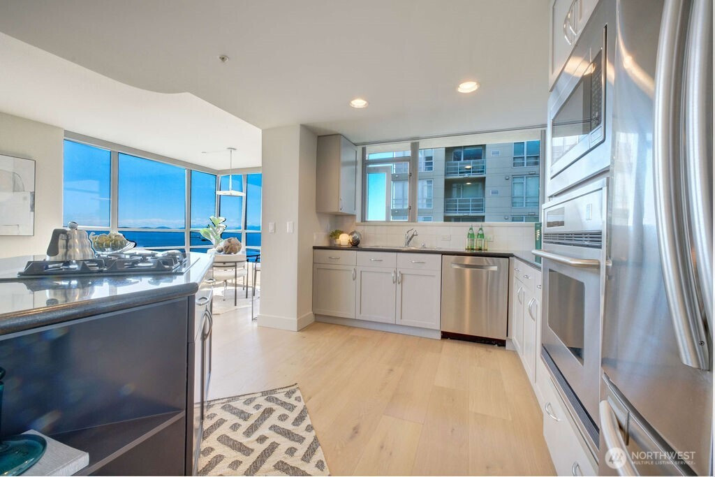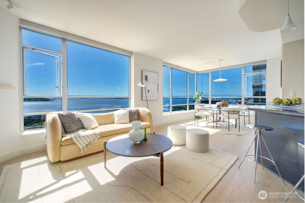 (503) 893-8874Perched above the Elliott Bay, this stunning corner unit 2-bedroom condo offers expansive windows with unobstructed views of Puget Sound and the Olympics, blending urban convenience with golden sunsets over the water. Thoughtfully designed with an open layout, and private balcony: perfect for both relaxing and entertaining. Smart home controls of blinds and heating with central AC. Enjoy living in a quite part of Belltown with easy access to top-tier restaurants, vibrant nightlife, and the waterfront, all just outside Concords front door. The building is pet friendly to bring your fury friend, and luxury amenities abound. With a parking space and storage unit in private garage this condo delivers the ultimate Seattle living experiences.