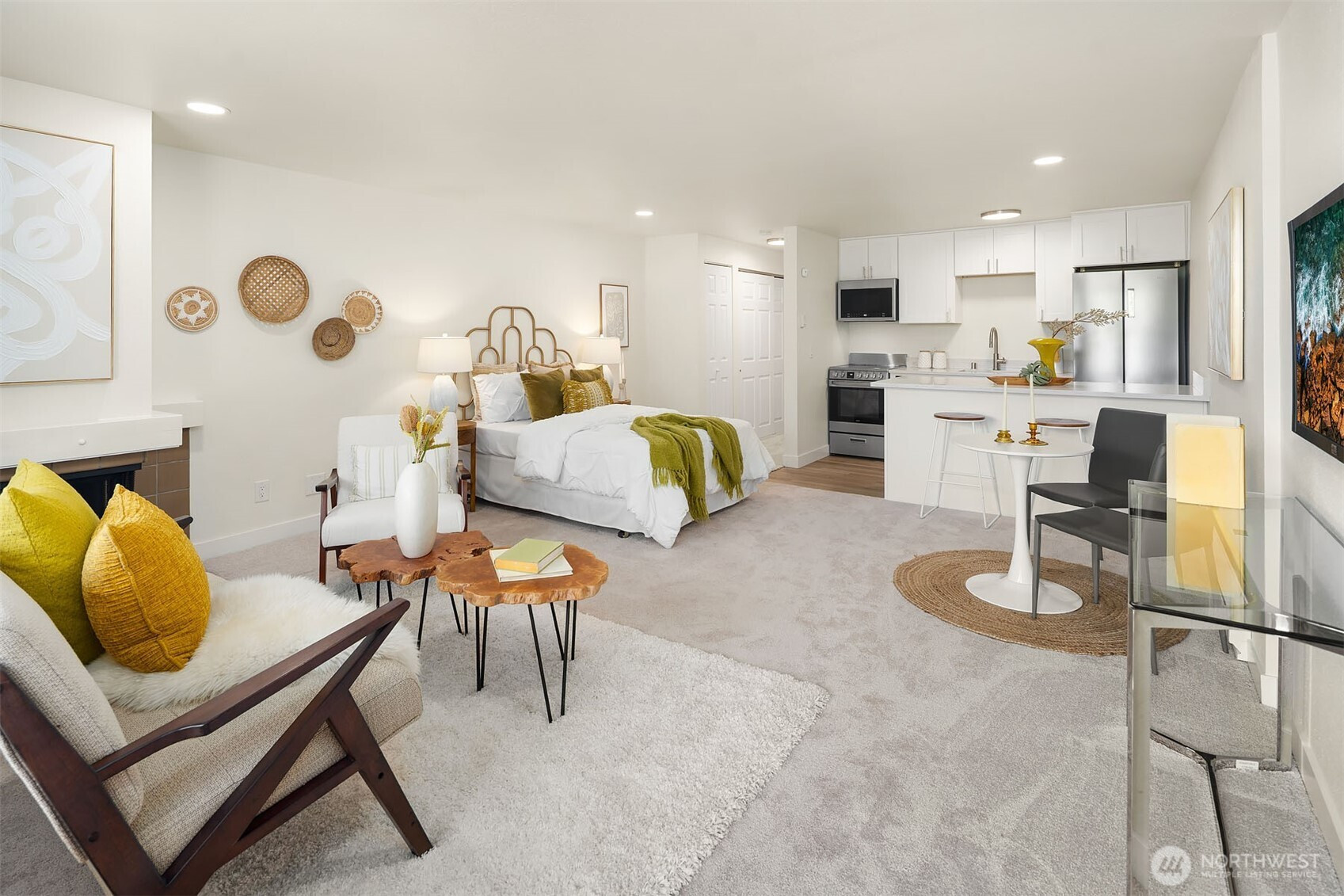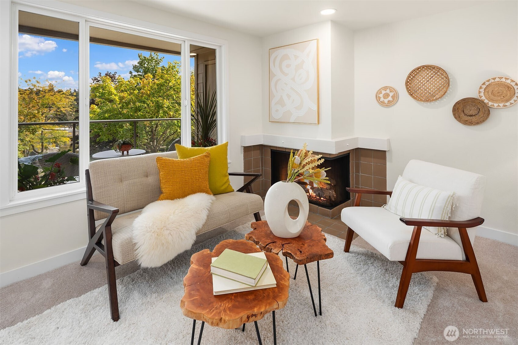 Totally new condo from top to bottom! Live in the Heart of Mercer Island, just steps away from downtown. Two blocks to Metropolitan Market. Shortcut trail to Mercerdale Park, Farmers Market & Macrina Bakery. Fully equipped kitchen has good size stainless steel appliances, new cabinets, bar with quartz countertops & plenty of cooking prep space. The original popcorn ceilings are gone & recessed ceiling lights have been installed for a light & bright living space. Closet lined hallway. Real wood burning fireplace. Territorial view deck. Exterior storage closet. Complex has a gym & clubhouse and neat & clean on-site laundry. Assigned parking next to unit. Quick highway access. Enjoy efficient, comfortable living. Nothing else needed!