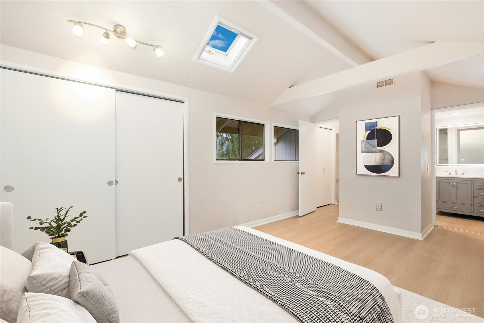Beautifully updated 3-bedroom, 3.5-bath townhome in the highly sought-after Kennydale neighborhood. This home features three completely remodeled bathrooms plus a convenient half bath on the main level. Vaulted ceilings, skylights, and abundant natural light create an airy, open feel throughout. The updated kitchen offers ample counter space, a large pantry, and is perfect for both everyday living and entertaining. Enjoy exceptional indoor-outdoor living with three separate decks. Home backs p to a peaceful greenbelt for added privacy. The spacious primary suite provides a relaxing retreat, while the private detached garage adds convenience. Located near multiple parks with easy freeway access, this home combines comfort, style, and an unbeatable location.