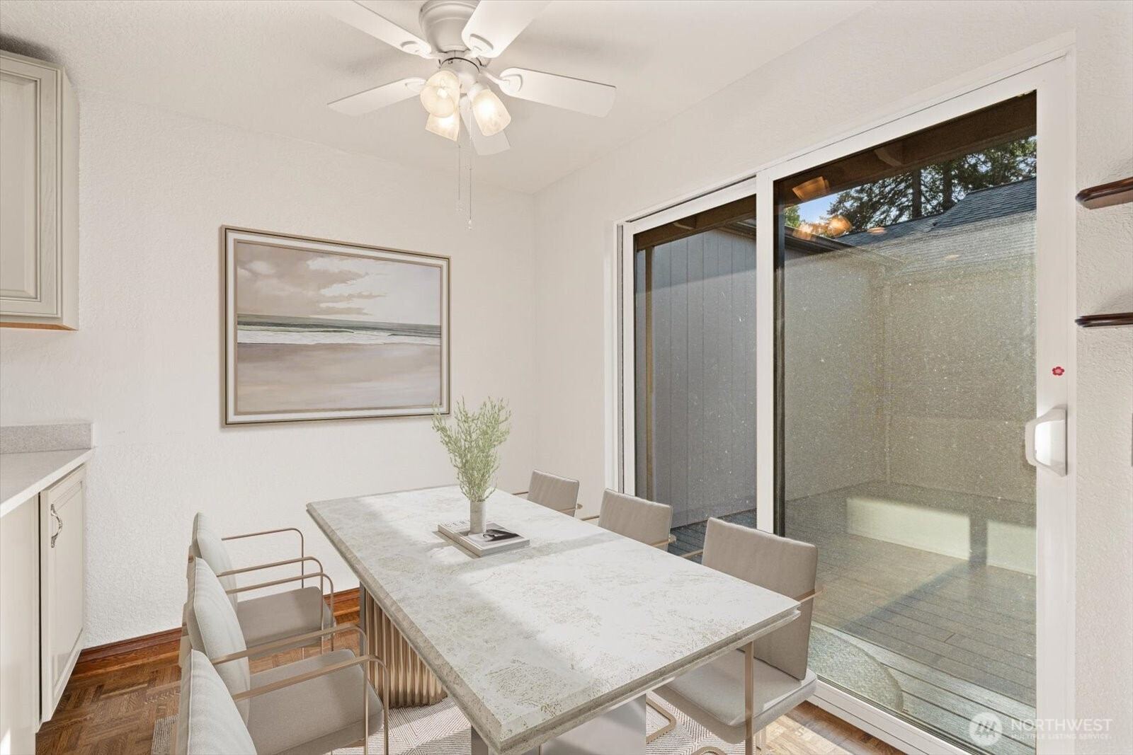 Welcome Home! If you're looking for character that is turn-key you have found it! Tucked into the sought-after Canyon Oaks community, this Kennydale townhome offers space, privacy, and effortless living that lives like a single-family home—without the maintenance. Thoughtfully designed with soaring ceilings and abundant natural light, the home welcomes you with an open and airy layout, featuring a spacious living room, formal dining area, and a versatile loft/flex space ideal for a home office, media room, gym, or guest retreat. The beautifully updated kitchen showcases quartz countertops, custom cabinetry, and a charming breakfast nook that opens directly to a private courtyard—creating the perfect setting for indoor-outdoor living, morning coffee, or evening entertaining. Enjoy three generous balconies overlooking tranquil greenery and a peaceful stream, offering a serene escape right at home. Oversized bedrooms provide exceptional comfort, each with ample closet space and access to outdoor living. A fully finished 2-car garage adds convenience, storage, and functionality. Ideally located near parks, schools, shopping, and dining, with quick access to I-405 for an easy commute to Bellevue, Seattle, and beyond. A rare blend of space, style, and low-maintenance living in a prime Kennydale location.