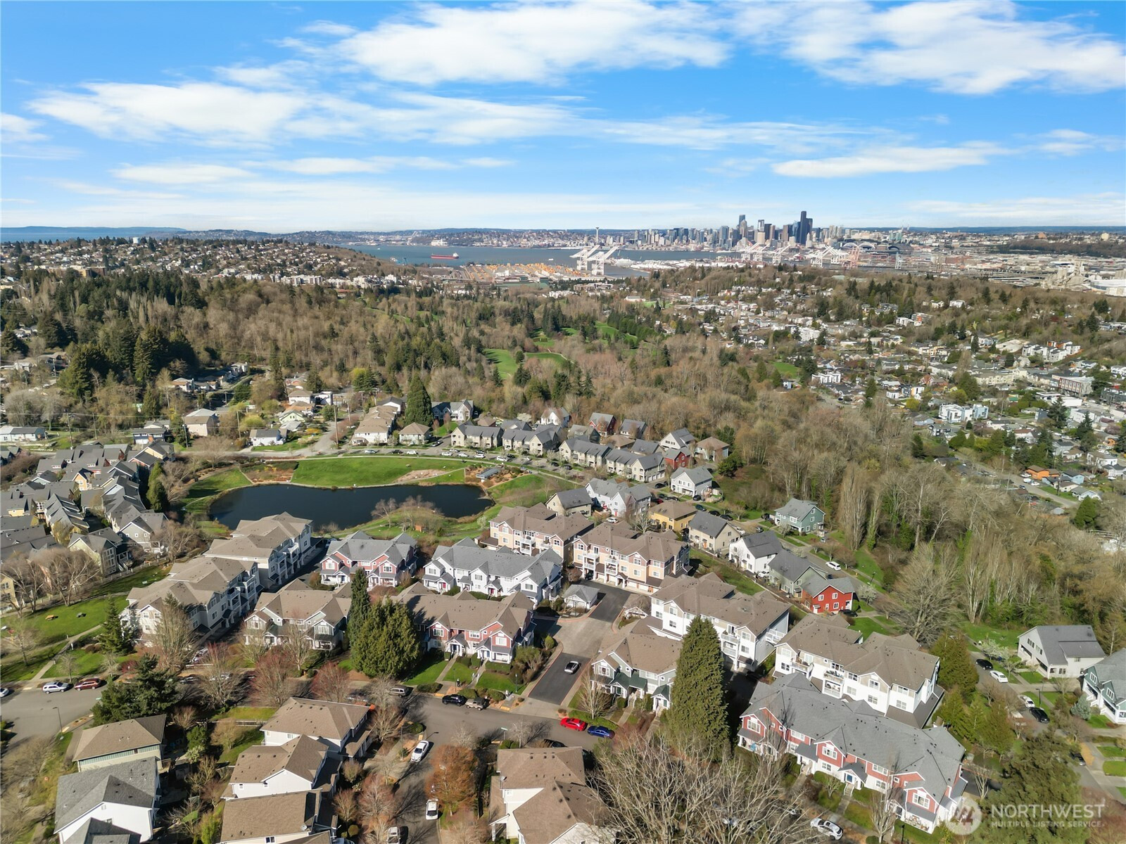 Welcome to High Point—an award-winning, eco-conscious community where thoughtful design meets everyday tranquility. This versatile 2-bedroom townhome offers exceptional privacy along with sweeping Seattle city views from every room, creating a truly elevated living experience. Step into a light-filled main level featuring an open-concept kitchen that flows seamlessly into the dining area and a spacious living room with cozy fireplace. Enjoy nature from your private patio, where you can spot great blue herons and bald eagles during the day, or unwind at night watching fireworks over the Space Needle. Each bedroom is designed for comfort and privacy. One bedroom features an en-suite 3/4 bath and walk-in closet, while the second is adjacent from a full bath—ideal for flexible living arrangements. An in-unit washer and dryer adds convenience, along with a 2 car tandem garage with additional driveway parking. High Point is more than a neighborhood—it’s a lifestyle. Enjoy summer concerts, multiple parks, playgrounds, p-patches, sports courts, outdoor fitness areas, and scenic walking trails. The community’s beautifully designed, environmentally thoughtful landscaping offers year-round charm. Conveniently located to public transportation, minutes from shops, schools, parks, 2 miles from Alaska Junction, 15 minutes from downtown Seattle, 22 minutes to the airport —this home offers the perfect balance of natural beauty, community connection, and urban convenience.