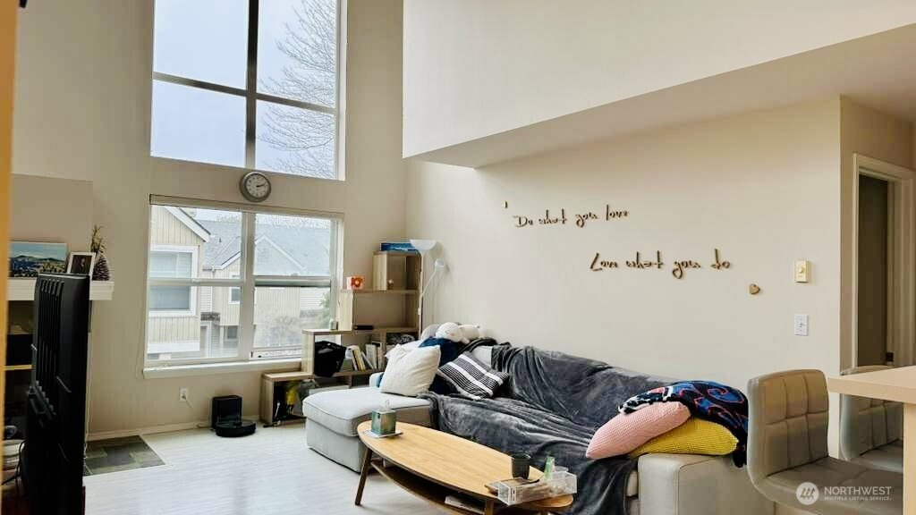 Lovely two bedroom townhome with extensive living room features wall of windows! Open concept Kitchen,main level 2nd bedroom with 3/4 bath. Upper spacious Master bedroom including a huge master suite with full bath & walk-in closet. Large loft next to the Master bedroom. Convenient location, backing to Bellevue College, 2 blocks to the I-90 park & ride & just a few minutes to downtown Seattle/Bellevue. Attached 2 cars fullsize garages with extra storage space, no rental cap!
