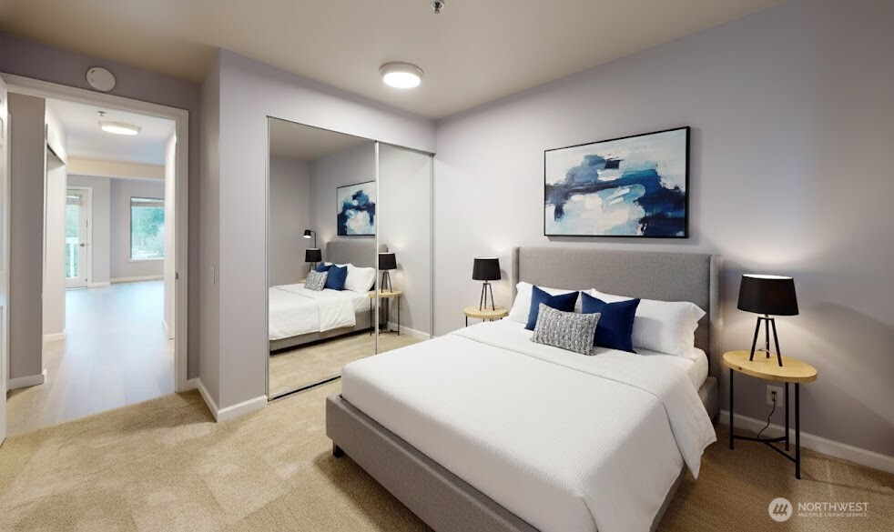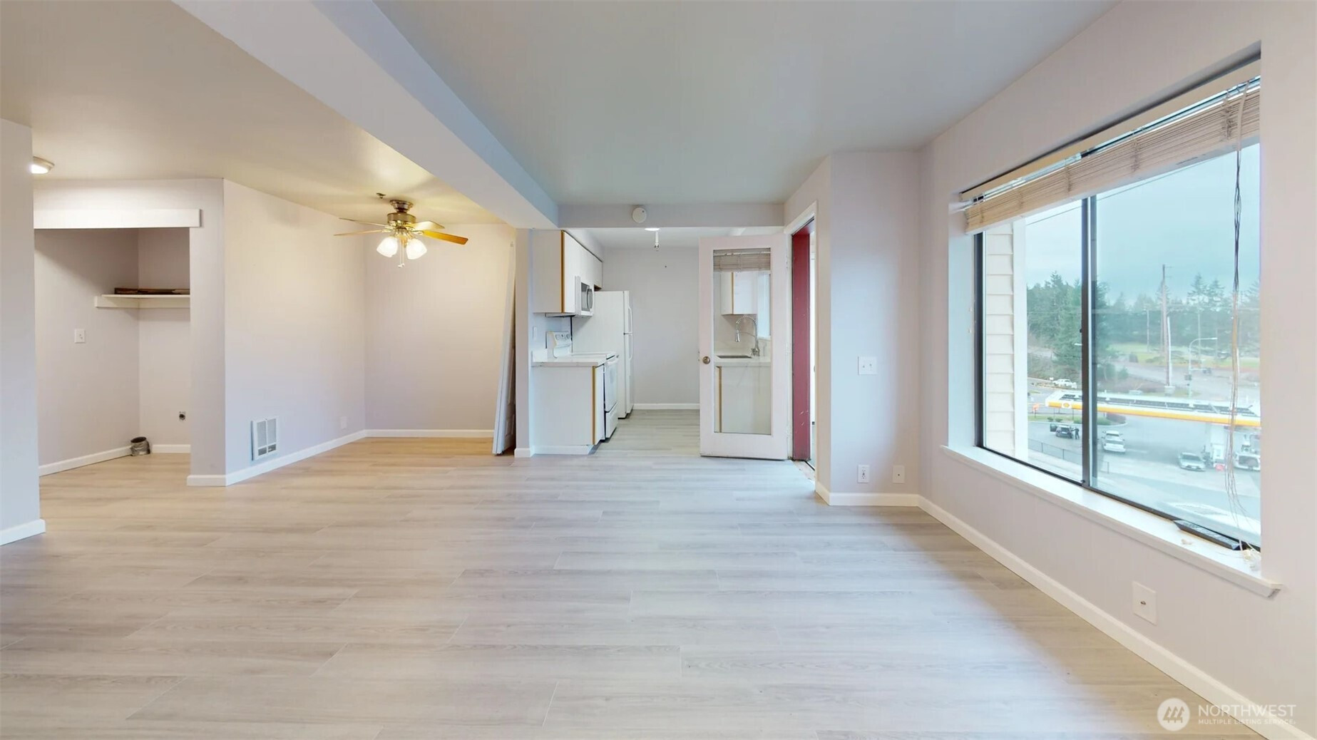 You will appreciate this clean vacant Top Floor 2-bedroom, 2 full bath home with territorial & partial views of the Puget Sound and Olympic Mts. The Living Room has a wood burning fireplace w/Engineered hardwood flooring throughout the living area. The spacious Primary Bedroom features 2 closets and a full bath. The 2nd Bedroom has a double closet, and the bedrooms have wall to wall carpet. The appliances that stay include stove/range, Microwave, Refrigerator and Dishwasher. There is a 2-car tandem assigned Carport. Storage unit is on the deck. HOA covers water, sewer, and garbage. Ideal for investors as there is not a rental cap. You will find parks, a soccer field, schools, shopping, and eateries and public transportation nearby.