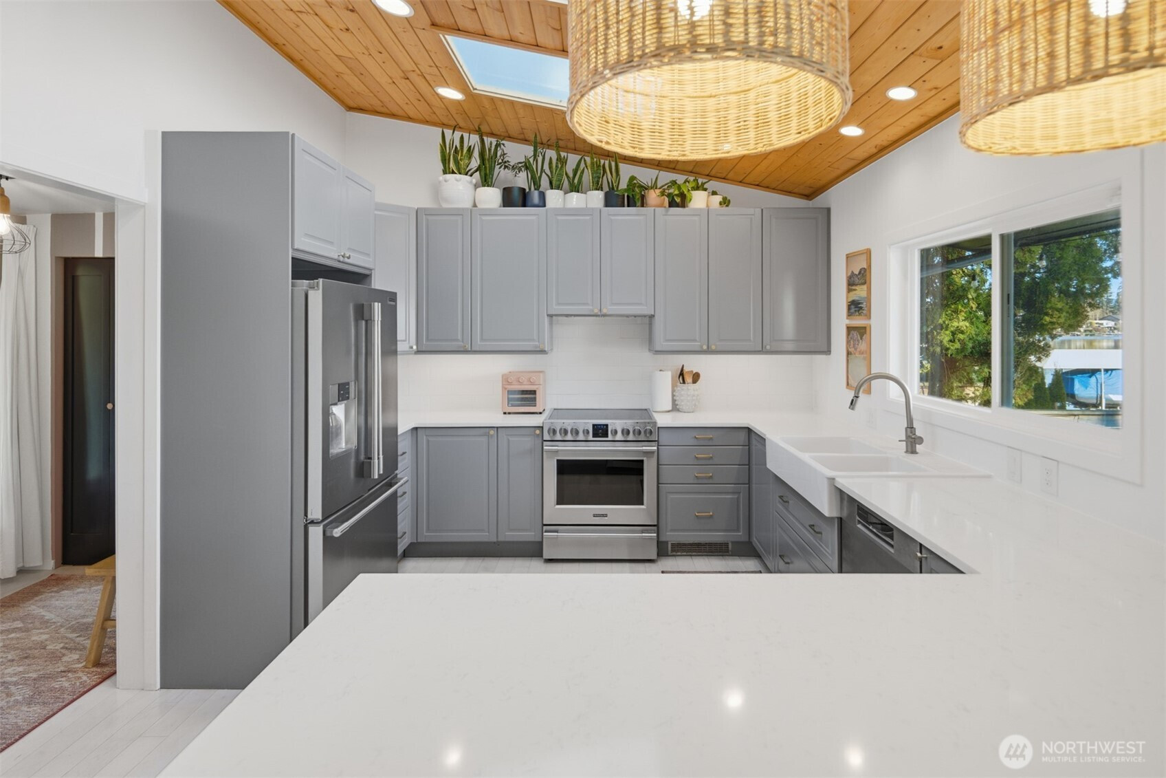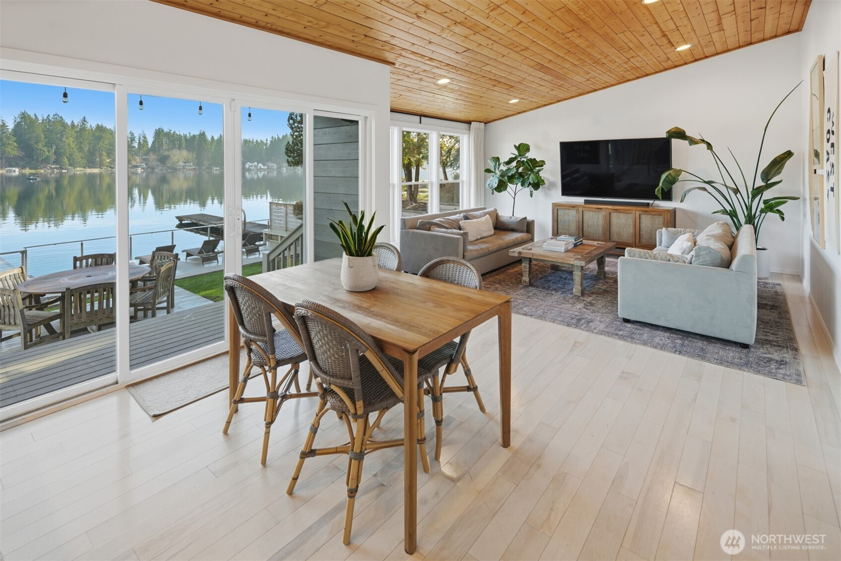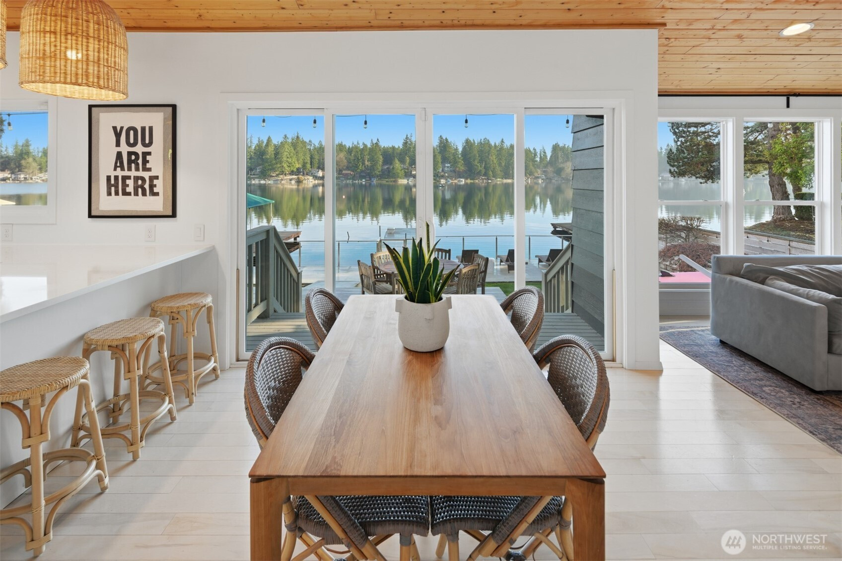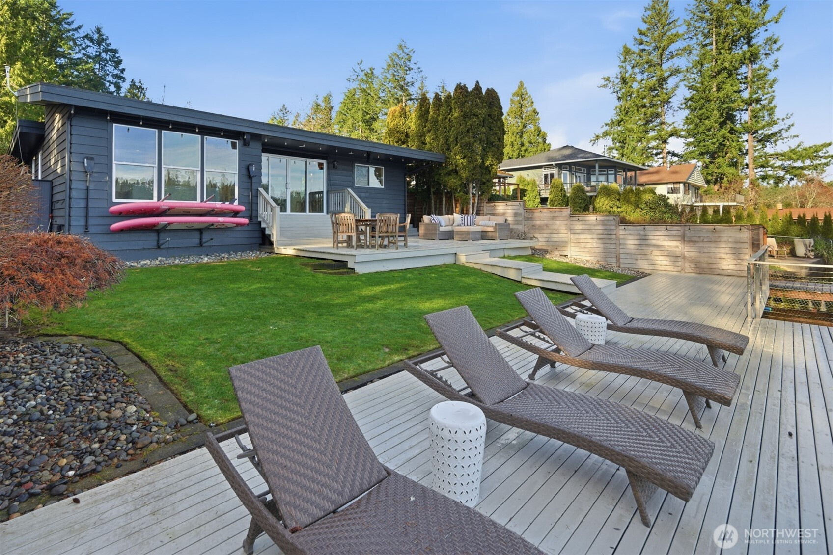 Experience the best of Lake Sawyer on a premier section of the lake with 55' of low-bank waterfront. This perfectly positioned home offers an effortless connection to the water, where the kitchen and living areas flow directly onto the expansive deck and flat backyard for easy lakeside entertaining. The 1,440 SF main house features floor-to-ceiling windows and a private dock with a boat lift. A massive 1,000 SF shop offers 3 bays, 10' doors, and 14' ceilings, ideal for boat or car storage. Included is a 562 SF DADU with a full kitchen, perfect for guests or an office. With two fenced yards and 2,002 SF of total finished space, this Black Diamond compound provides rare accessibility and unmatched utility in a coveted location.