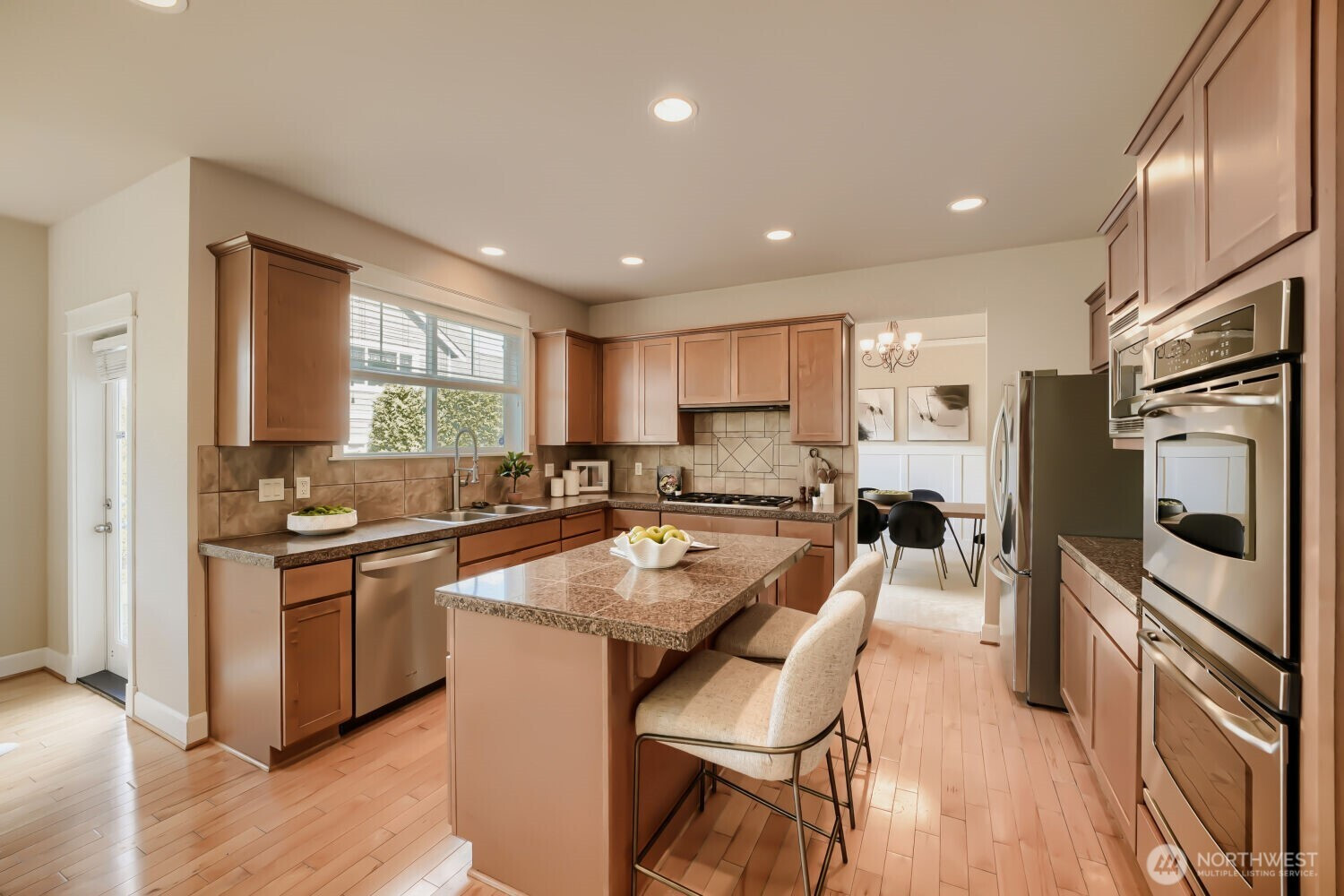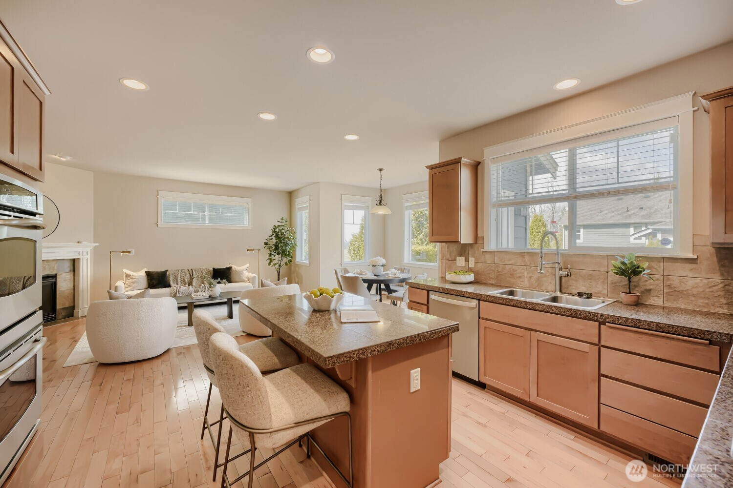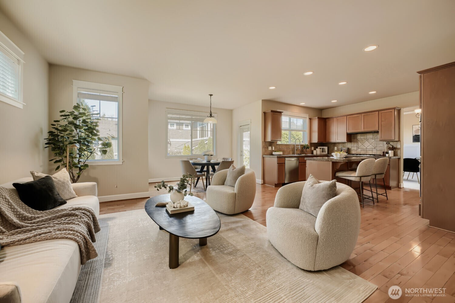 Beautifully maintained home in the highly sought-after Issaquah Highlands, ideally located in Grandview Park. Enjoy a rare park-side backdrop with lush greenery, open space, and easy access to trails right outside your door. This light-filled residence features an ideal layout with a spacious living room, dining area and a versatile den filled with natural light. The well-appointed kitchen opens seamlessly to the main living space, perfect for everyday living and entertaining. Upstairs, a versatile loft provides the ideal bonus space for a media room, office, or play area. Enjoy a generously sized primary suite with walk-in closet and territorial views of the Bellevue skyline. Step outside to your private backyard retreat, featuring dedicated gardening beds, perfect for relaxing and enjoying outdoor living. Located just minutes from shopping, dining, parks and within the highly acclaimed Issaquah School District, this home offers the perfect blend of comfort, convenience, and a premier Grandview Park lifestyle.
