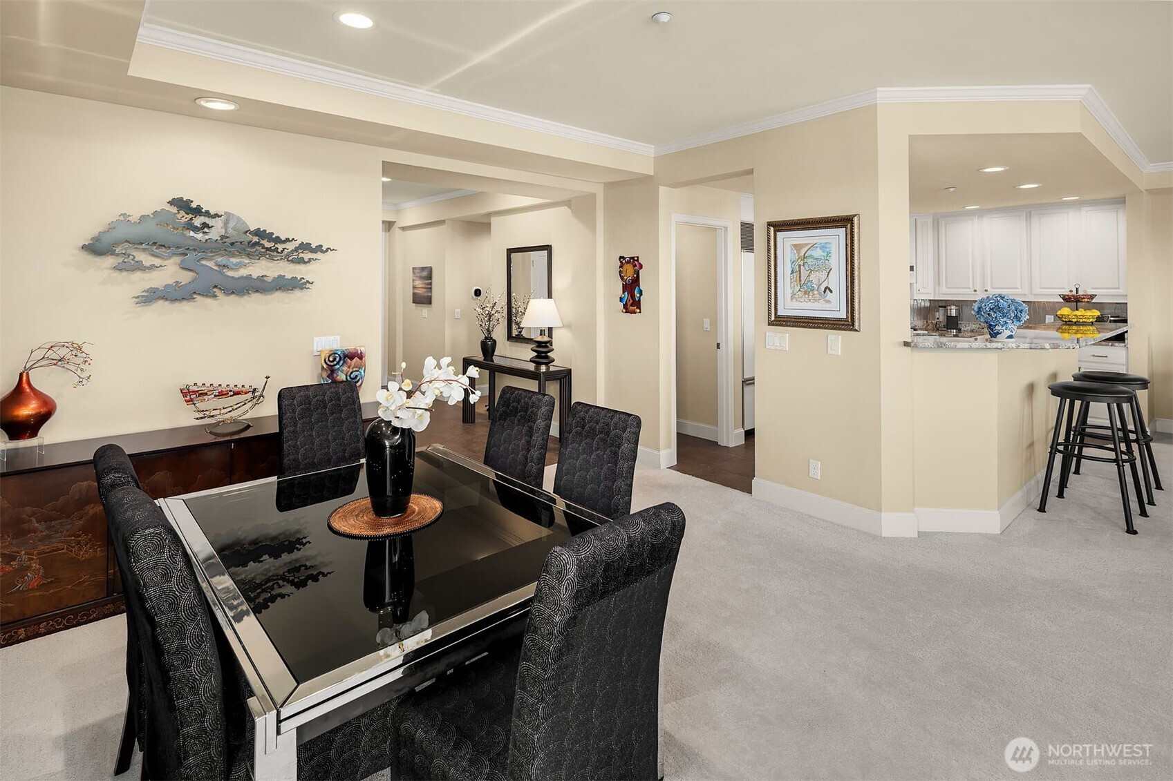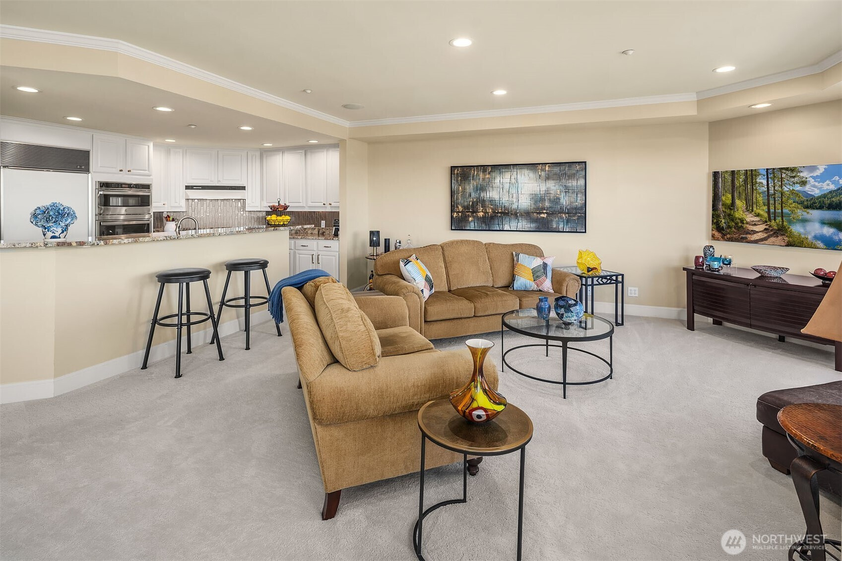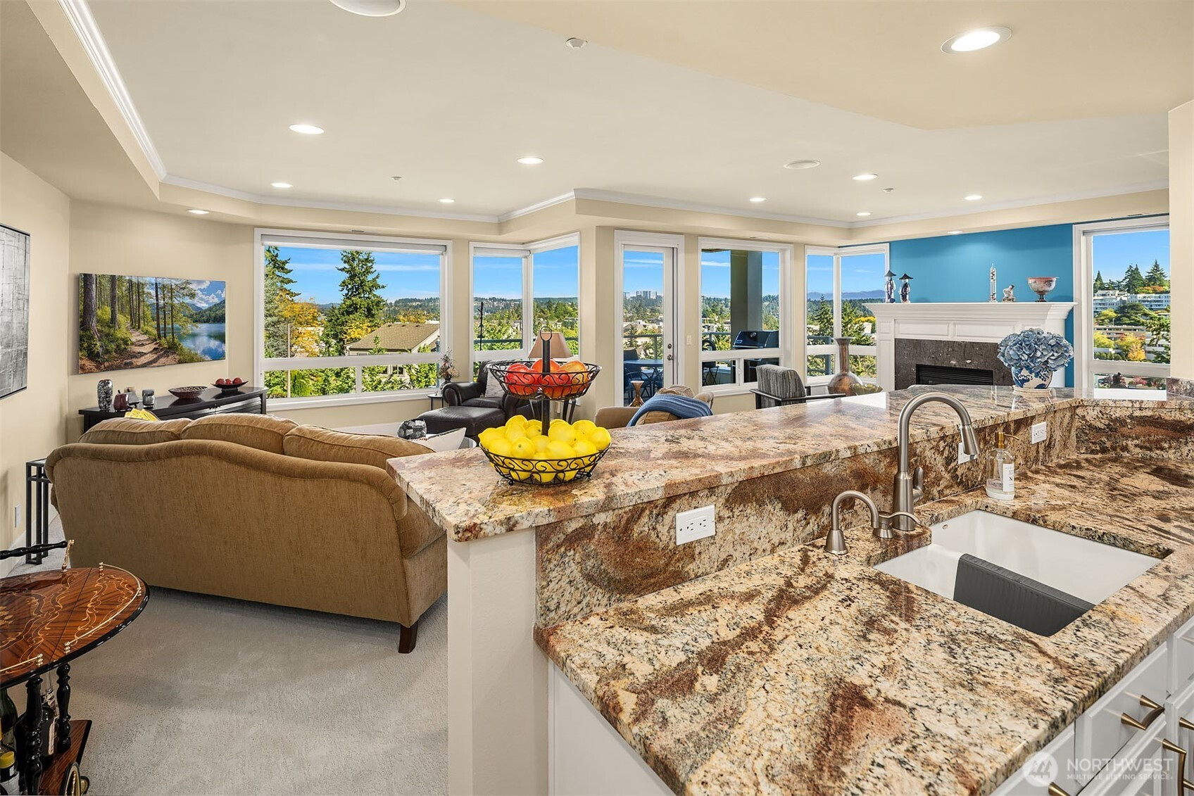 Embrace the lifestyle. Rare offering in Mercerdale Park, a coveted 9-unit boutique community on the North end of Mercer Island. This stylish one-level residence offers 1,991 sq ft of thoughtfully designed living with 2 spacious bedrooms, a versatile den/office, and 1.75 baths. The covered deck frames sweeping views, including the Bellevue skyline-perfect for morning coffee or evening chats. Two secure garage spaces, generous storage, and ample guest parking ensure every day is effortless. Step outside and you are immediately connected to everything: explore downtown shops and dining, easy access to I-90, Park & Ride, and the light rail station. This meticulously maintained condo offers the perfect blend of comfort and ultimate island charm.