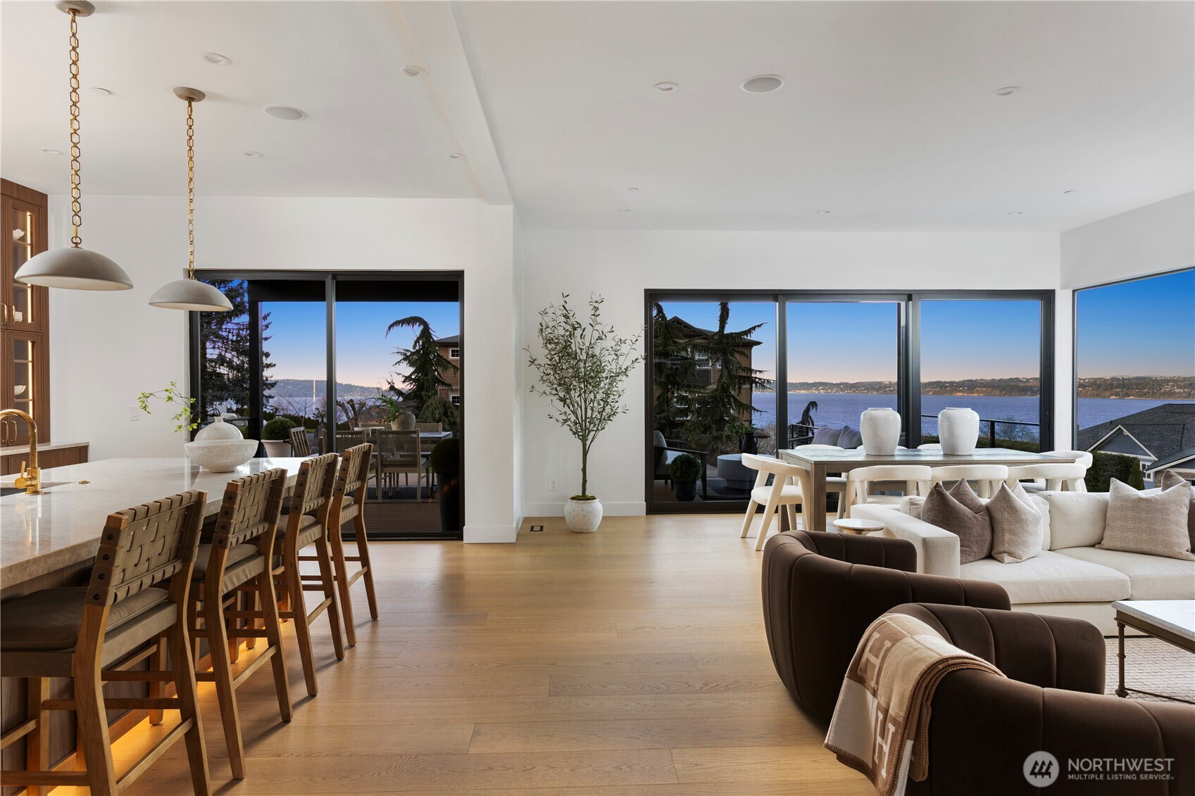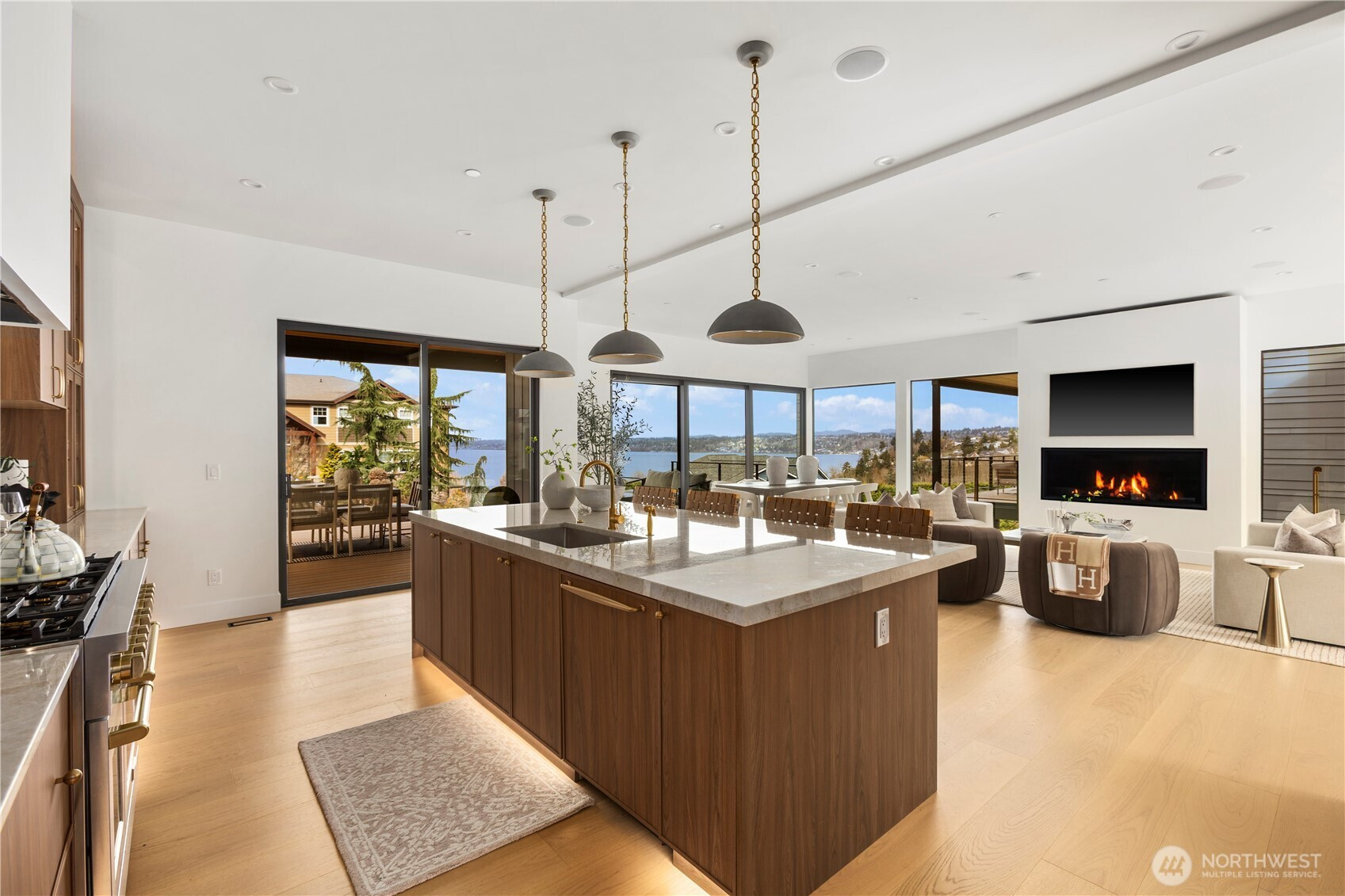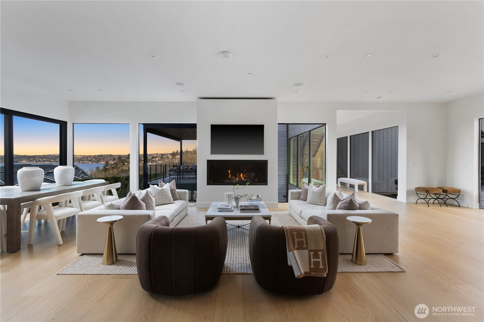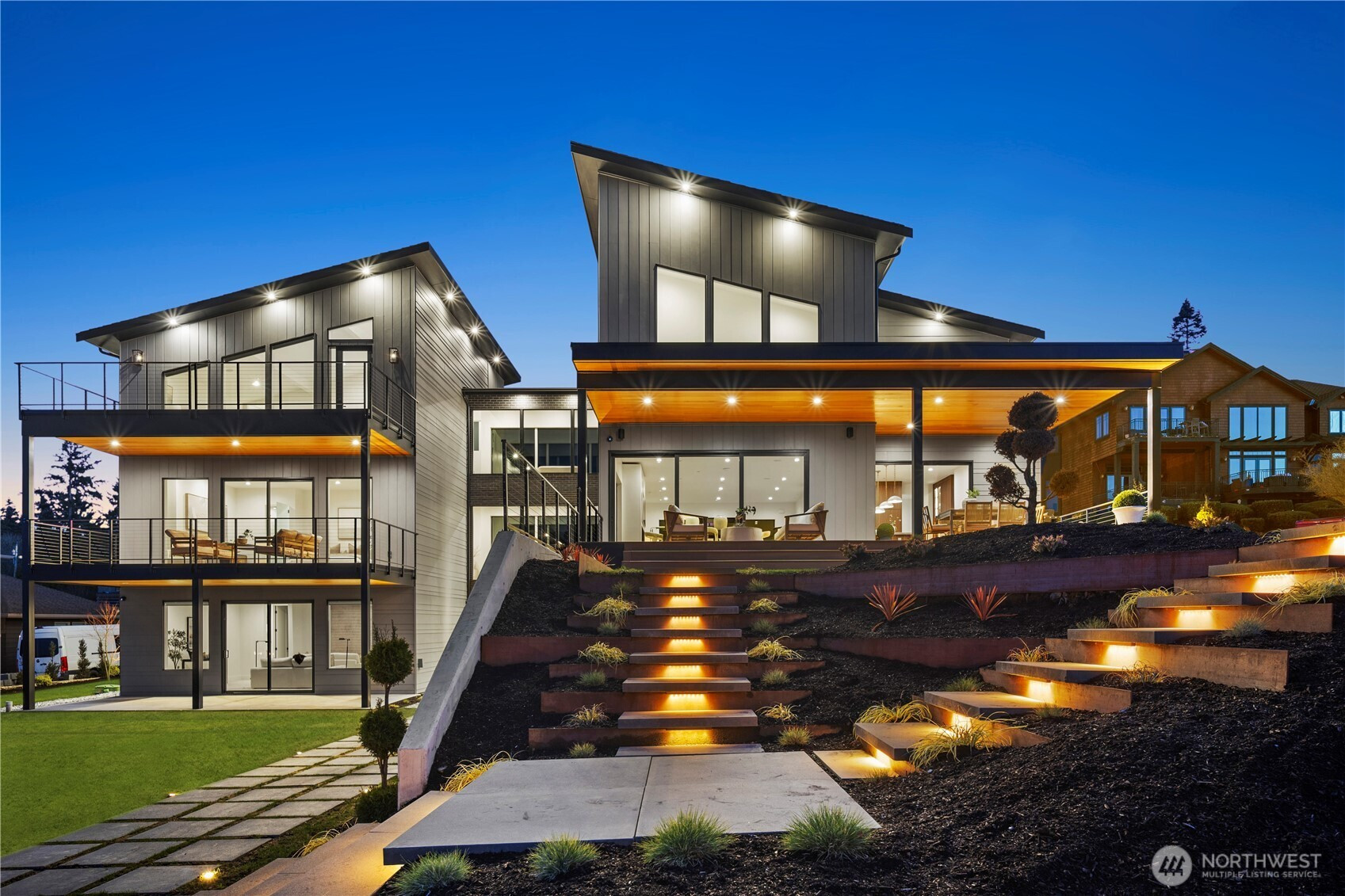 Introducing a once-in-a-lifetime architectural masterpiece in the coveted Adelaide neighborhood of Federal Way. This extraordinary 6,820 sqft custom estate with 5 bedrooms and 5 baths was designed to capture commanding, unobstructed views of the Puget Sound and surrounding mountains through breathtaking walls of floor-to-ceiling glass. A dramatic 5’x8’ pivot entry door welcomes you into soaring 10'+ceilings, a grand floating staircase, European hardwood floors, and 3 custom fireplaces.The chef’s kitchen is nothing short of spectacular, showcasing floor-to-ceiling Tafisa Lumnia cabinetry, stunning Taj Mahal quartzite, Z-Line professional appliances, an oversized statement island, and a fully appointed butler’s pantry. The main-level primary suite is a private sanctuary with its own view deck, spa-caliber 5-piece bath adorned with custom tile, Brassna fixtures, heated floors, and a freestanding soaking tub. 3 bedroom offers en-suite luxury. The lower level is designed for unforgettable entertaining or multi-generational living, featuring a 2nd kitchen, theater or guest suite, and an impressive 10-person steam and sauna retreat. A 950 sqft garage with soaring ceilings, epoxy floors, custom built-ins, and oversized doors elevates the experience even further. Set on a meticulously landscaped half-acre with three expansive view decks and a grand driveway, this residence is the epitome of elegance, craftsmanship, and refined Northwest luxury.