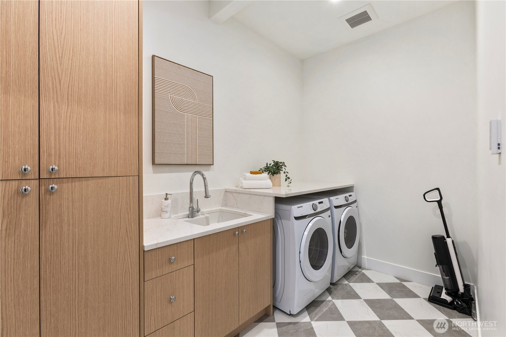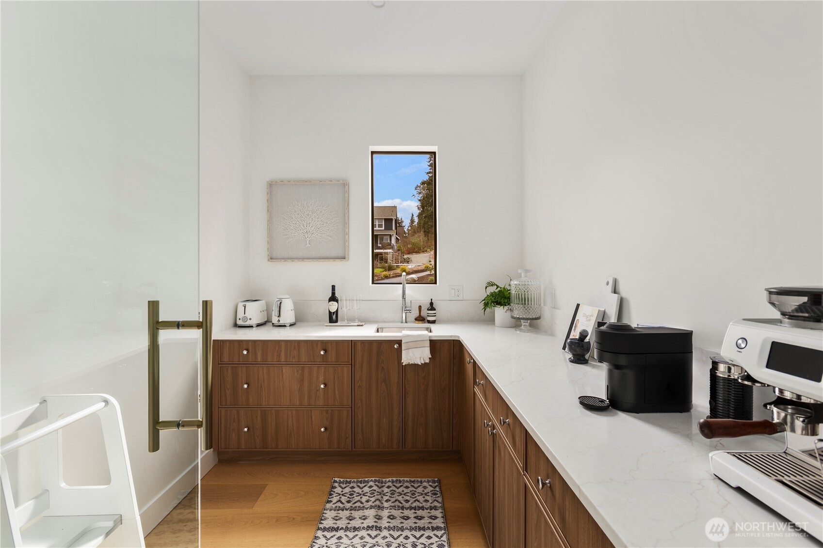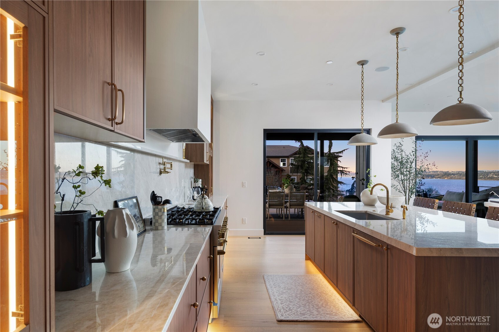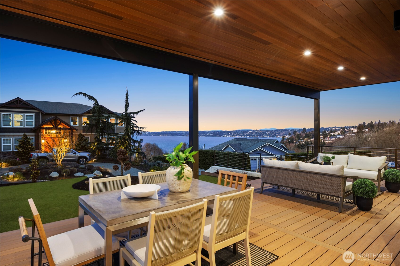 Introducing a once-in-a-lifetime architectural masterpiece in the coveted Adelaide neighborhood of Federal Way. This extraordinary 6,820 sqft custom estate with 5 bedrooms and 5 baths was designed to capture commanding, unobstructed views of the Puget Sound and surrounding mountains through breathtaking walls of floor-to-ceiling glass. A dramatic 5’x8’ pivot entry door welcomes you into soaring 10'+ceilings, a grand floating staircase, European hardwood floors, and 3 custom fireplaces.The chef’s kitchen is nothing short of spectacular, showcasing floor-to-ceiling Tafisa Lumnia cabinetry, stunning Taj Mahal quartzite, Z-Line professional appliances, an oversized statement island, and a fully appointed butler’s pantry. The main-level primary suite is a private sanctuary with its own view deck, spa-caliber 5-piece bath adorned with custom tile, Brassna fixtures, heated floors, and a freestanding soaking tub. 3 bedroom offers en-suite luxury. The lower level is designed for unforgettable entertaining or multi-generational living, featuring a 2nd kitchen, theater or guest suite, and an impressive 10-person steam and sauna retreat. A 950 sqft garage with soaring ceilings, epoxy floors, custom built-ins, and oversized doors elevates the experience even further. Set on a meticulously landscaped half-acre with three expansive view decks and a grand driveway, this residence is the epitome of elegance, craftsmanship, and refined Northwest luxury.