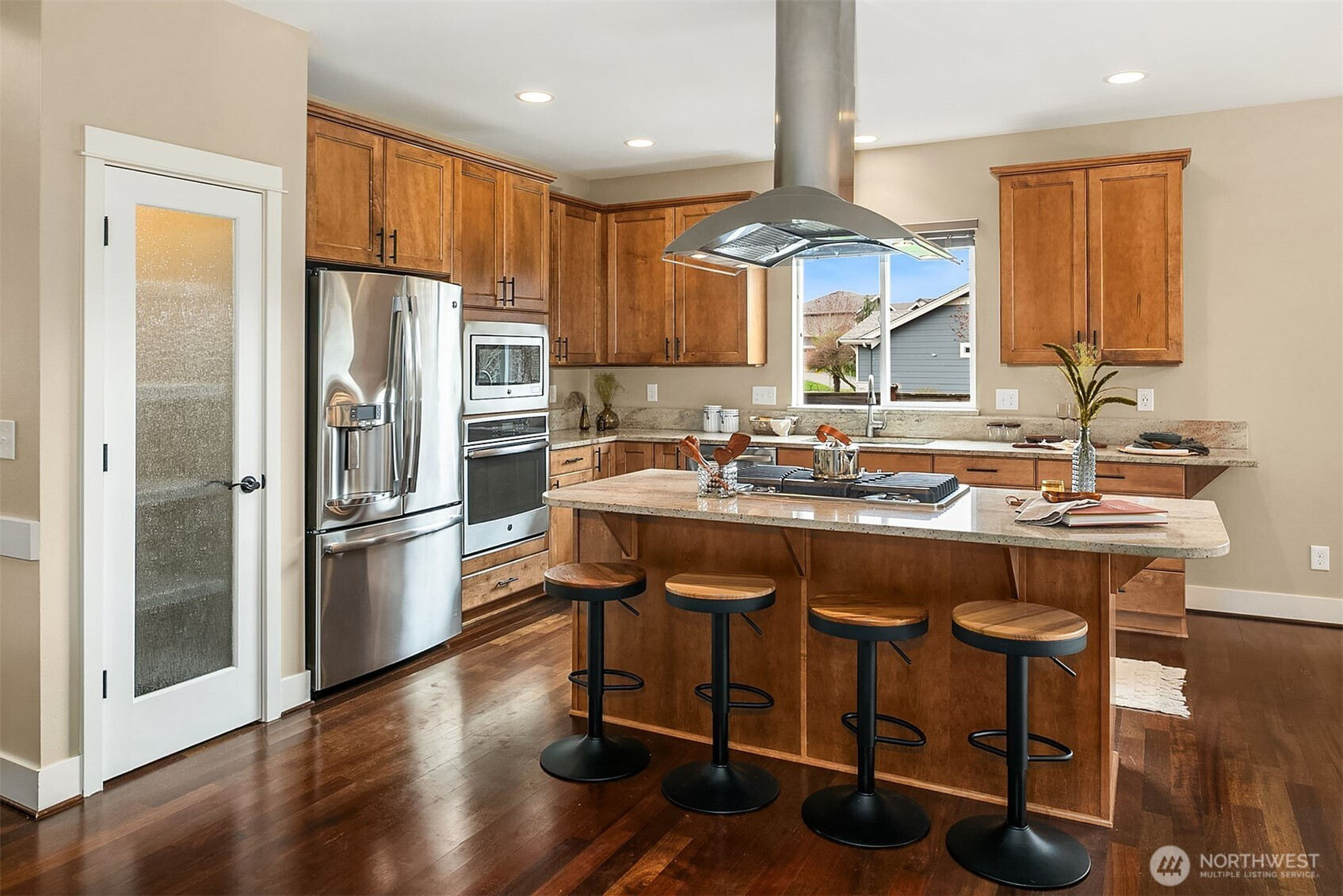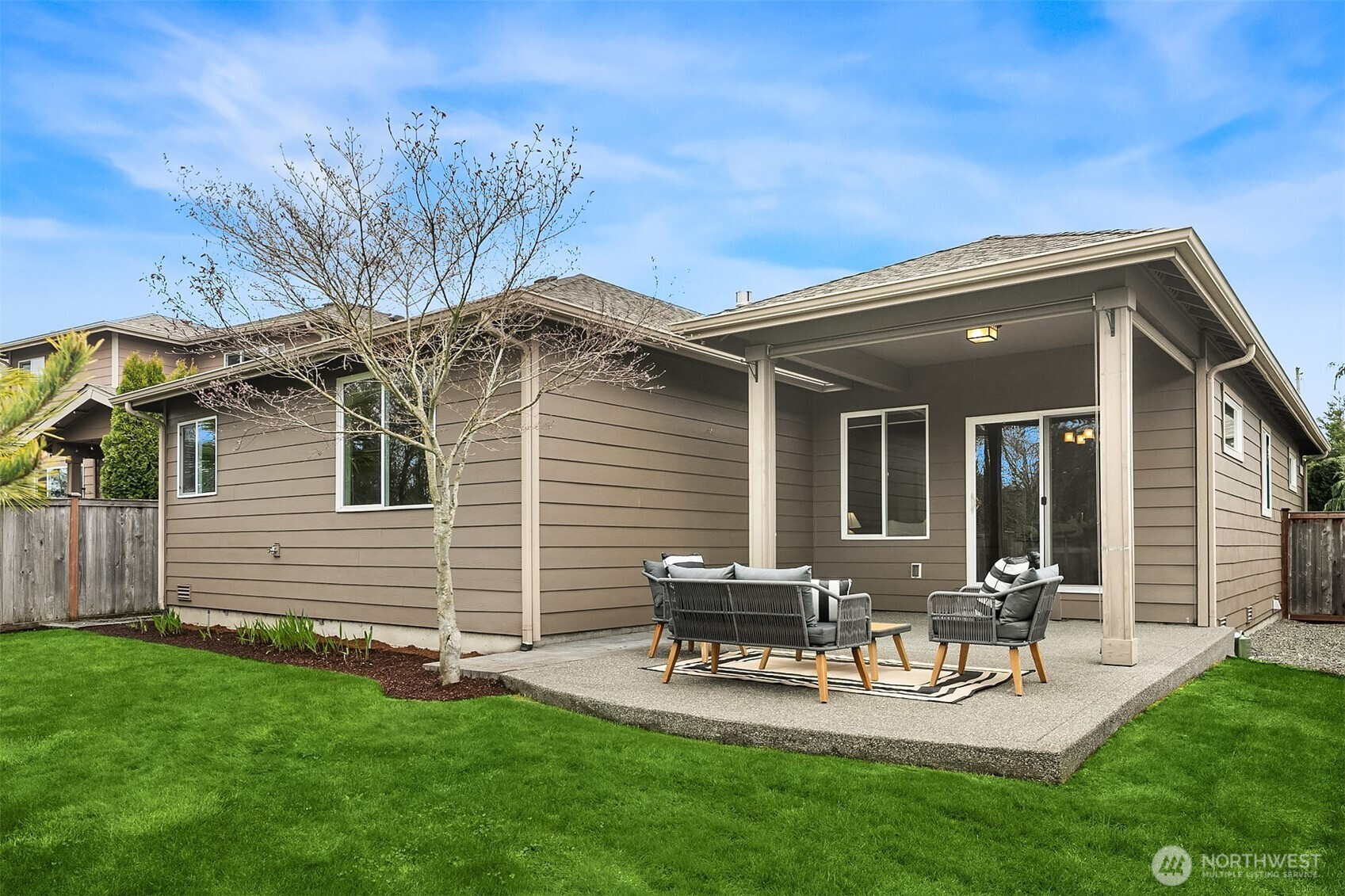 Stunning single-level home with 3+ bedrooms in the sought after Wyncrest community on Auburn’s West Hill. Built in 2015, the home sits on a large corner lot with beautiful landscaping and southern exposure. High ceilings and an open-concept layout create a warm, spacious feel, making the home live larger than expected. Designed with entertaining in mind, the kitchen centers around an oversized island and has generous counter space and pantry storage. Brazilian hardwood flooring runs through the main living areas, with new carpet installed in March 2026. The primary bedroom is perfect for relaxing with a luxurious en suite bath. Enjoy the private fully fenced backyard and covered patio; great in all seasons. Other features include a gas fireplace, tankless hot water, heat pump/AC, an in-ground sprinkler system and oversized garage. In a walkable community with wide streets, sidewalks and parks. Easy access to commuter routes like 167 and I-5. This home was very lightly lived in and is in pristine condition.
