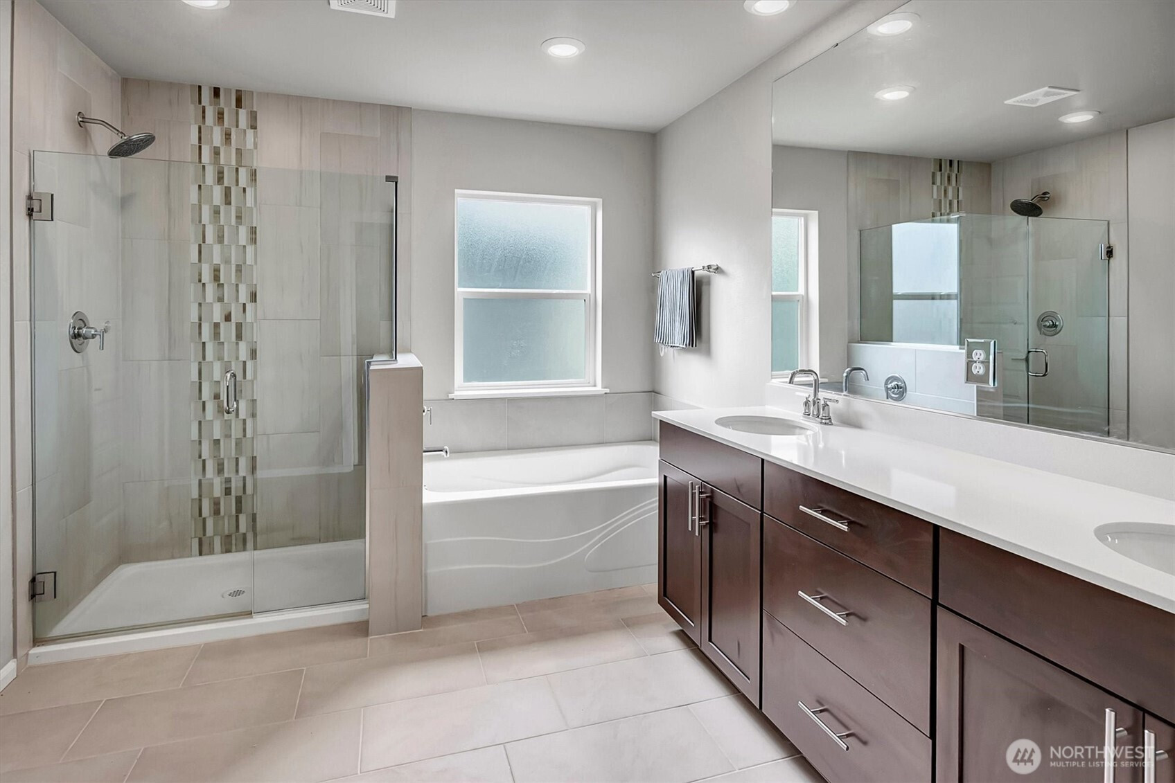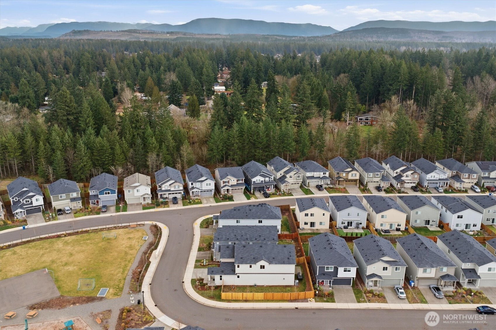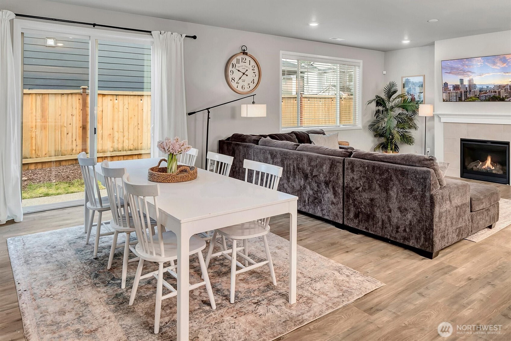 Two story Northwest Craftsman located in the desirable El Dorado Springs neighborhood of Covington. Built in 2022 as part of Lennar’s sought after Platinum Collection, the Sequoia floor plan offers 3,120 sq ft of modern living on a fully fenced 5,509 sq ft corner lot. Inviting entry with luxury vinyl plank flooring leads into the open concept great room designed for everyday living and entertaining. Gourmet kitchen features quartz countertops, double ovens, 5 burner gas cooktop, dedicated vent hood, French door refrigerator, stainless steel appliances, soft close cabinetry and walk in pantry. Expansive island with bar seating overlooks the dining area and living room with cozy tile surround gas fireplace. Sliding glass door opens to backyard patio ideal for BBQ gatherings and outdoor dining. Main level also includes a private bedroom with ensuite 3/4 bath, perfect for guests, multigenerational living or home office, plus nearby powder room. Upstairs landing offers a versatile sitting area surrounded by four additional bedrooms. Owner’s suite features spa inspired bath with dual sinks, soaking tub, walk in shower and large walk in closet. Laundry room with built in shelving. Two car garage with storage. Ideally located across from community park with basketball court, playfield and playground, near schools, golf course, Lake Sawyer and Covington Community Park.