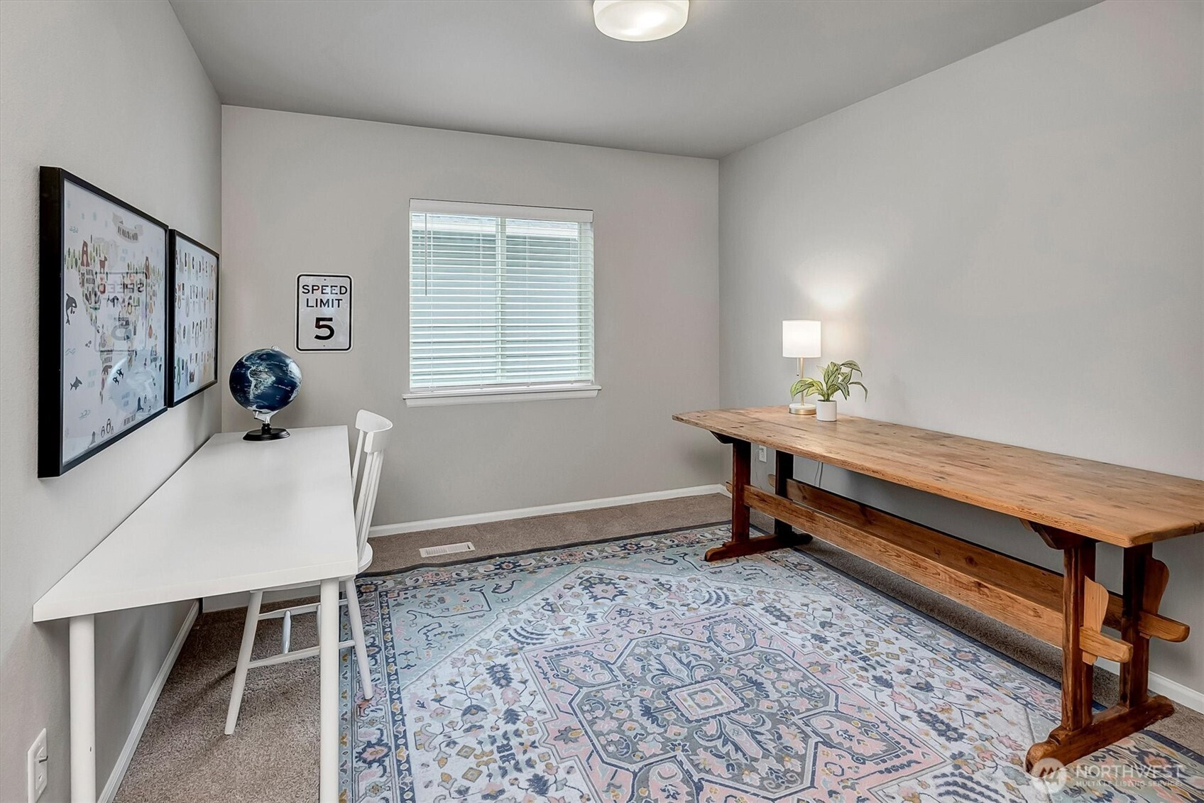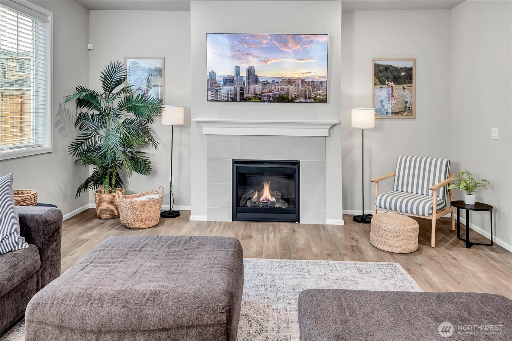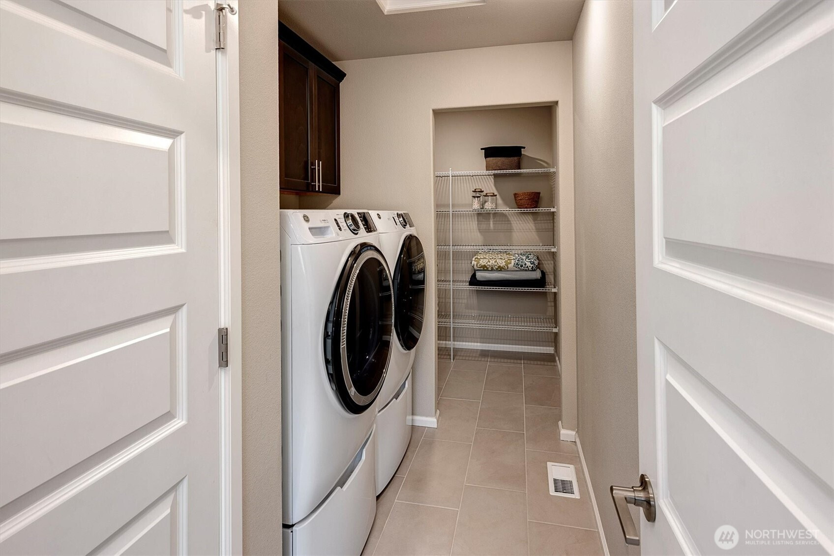 Two story Northwest Craftsman located in the desirable El Dorado Springs neighborhood of Covington. Built in 2022 as part of Lennar’s sought after Platinum Collection, the Sequoia floor plan offers 3,120 sq ft of modern living on a fully fenced 5,509 sq ft corner lot. Inviting entry with luxury vinyl plank flooring leads into the open concept great room designed for everyday living and entertaining. Gourmet kitchen features quartz countertops, double ovens, 5 burner gas cooktop, dedicated vent hood, French door refrigerator, stainless steel appliances, soft close cabinetry and walk in pantry. Expansive island with bar seating overlooks the dining area and living room with cozy tile surround gas fireplace. Sliding glass door opens to backyard patio ideal for BBQ gatherings and outdoor dining. Main level also includes a private bedroom with ensuite 3/4 bath, perfect for guests, multigenerational living or home office, plus nearby powder room. Upstairs landing offers a versatile sitting area surrounded by four additional bedrooms. Owner’s suite features spa inspired bath with dual sinks, soaking tub, walk in shower and large walk in closet. Laundry room with built in shelving. Two car garage with storage. Ideally located across from community park with basketball court, playfield and playground, near schools, golf course, Lake Sawyer and Covington Community Park.