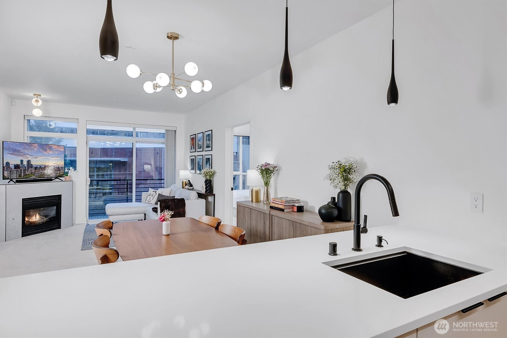 Rare true 3-bedroom, 3-bath condo in the heart of Downtown Bellevue, offering a quiet and private corner-unit setting with exceptional upgrades throughout. The show-stopping kitchen was custom designed by Swede and features Caesarstone countertops + Dekton Arga backsplash, a large walk-in pantry, and premium Wi-Fi–enabled appliances including a Bosch 800 Series induction cooktop and dishwasher, Liebherr custom-panel integrated refrigerator, GE touchscreen wall oven, and Faber Inca integrated range hood. All bathrooms have been fully remodeled with new flooring, quartz countertops, vanities, toilets, mirrors, and fixtures. Additional updates include new luxury vinyl wood flooring, new carpet, fresh interior paint, updated lighting, new trim and millwork, custom closet systems, new fireplace tile, and new window shades and blinds. A Miele washer and dryer add everyday convenience. This rare floor plan includes TWO SPACIOUS PRIMARY SUITES, a private balcony, and secured building access for added peace of mind. Two parking spaces are included—one assigned and one unassigned—in the parking garage, plus ample guest parking. No rental cap.Unbeatable location just moments from Downtown Bellevue Park, the waterfront, Amazon, Bellevue Square, and top dining and shopping. Located in highly sought-after Bellevue schools. A truly special opportunity for refined urban Bellevue living.