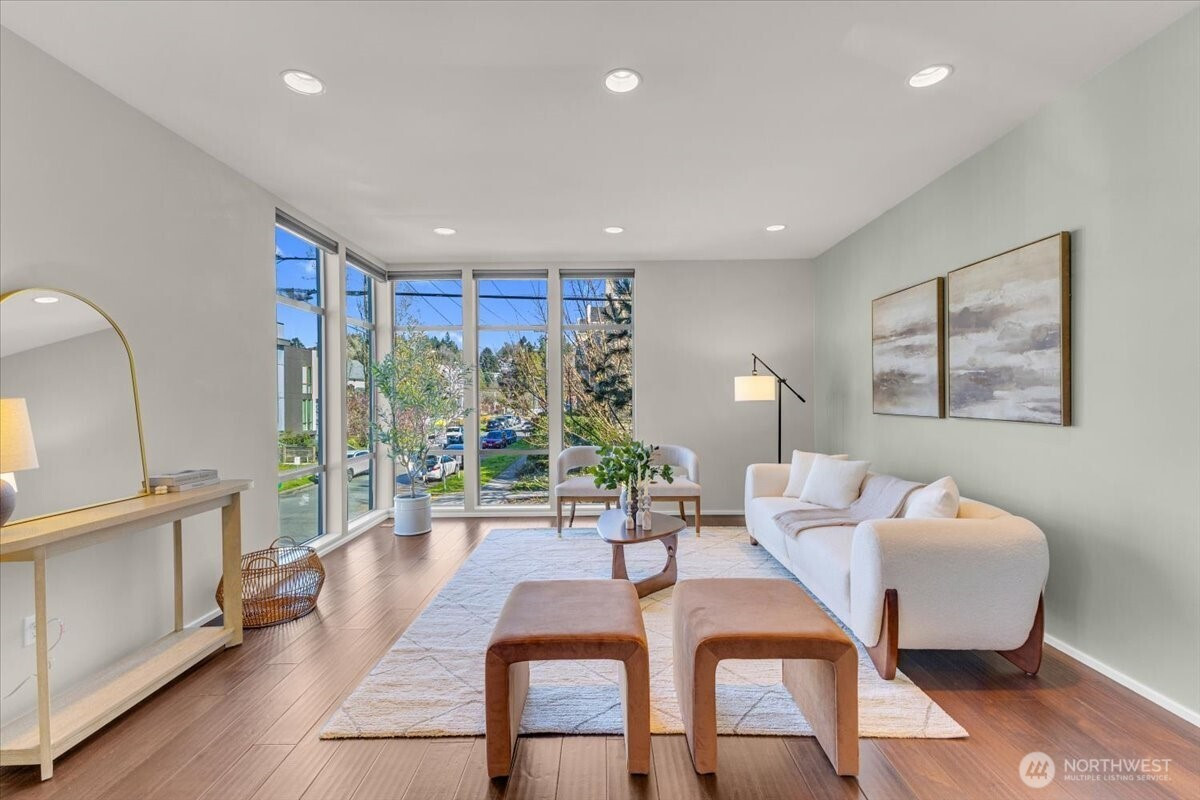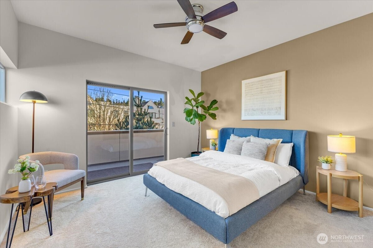 Modern corner-unit townhome just one block from Alki Beach, perfectly blending beachside living with urban convenience. Bright interiors feature high ceilings, expansive windows, and an open-concept main floor ideal for entertaining. The stylish kitchen offers quartz countertops and Whirlpool appliances, while engineered hardwood floors run throughout. Enjoy generous bedrooms, a walk-in closet, and a spa-like steam and rain shower. The highlight is a newly refinished Ipe rooftop deck with water and mountain views. Covered parking with EV charger, mini-split A/C, abundant storage, and no HOA—steps to restaurants, parks, transit, and the waterfront path to Downtown Seattle.