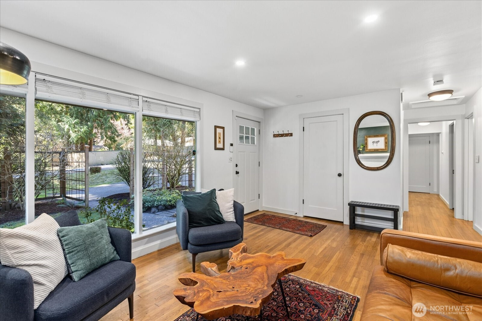 Escape from urban life to this 4-bedroom, one-level, with Northwest contemporary feel. Lovingly updated with thoughtful intention & pride of ownership. Lake Forest Park’s magnificent sweeps of forest green inspired the natural interior finishes, and an exterior landscape design that harmonizes home to setting. Significant investments in the home’s core systems & structural integrity included new: roof ’18, ducted heat pump for heat & A/C ’19, crawlspace insulation & vinyl windows ’20, PEX plumbing ’21, electrical panel & exterior paint ’22, chimney repointing ’23, cedar fence ’25, and attic ventilation system coming soon. The remodeled kitchen charms with the rich hues of walnut butcher block counters & beautiful, soft-close cabinetry set against gleaming subway tile. Plenty of room to entertain on the adjoining sunny deck or in the large, fully fenced backyard. Discover the appeal of LFP’s small town vibes, along the shores of Lake Washington. Deeded rights to join LFP Civic Club, providing access to beach, club house & boat launch only 1 mile away! Exceptional location, close to numerous parks, I-5, 522, LFP Town Center, Burke-Gilman Trail and public transportation; including the Link Line 1 & 2 trains a mere 5 min drive from home! Highly-regarded Shoreline Schools, incl. Brookside Elem just 1 min downhill. Prepare to fall in love with the location, updates & calm of this home.