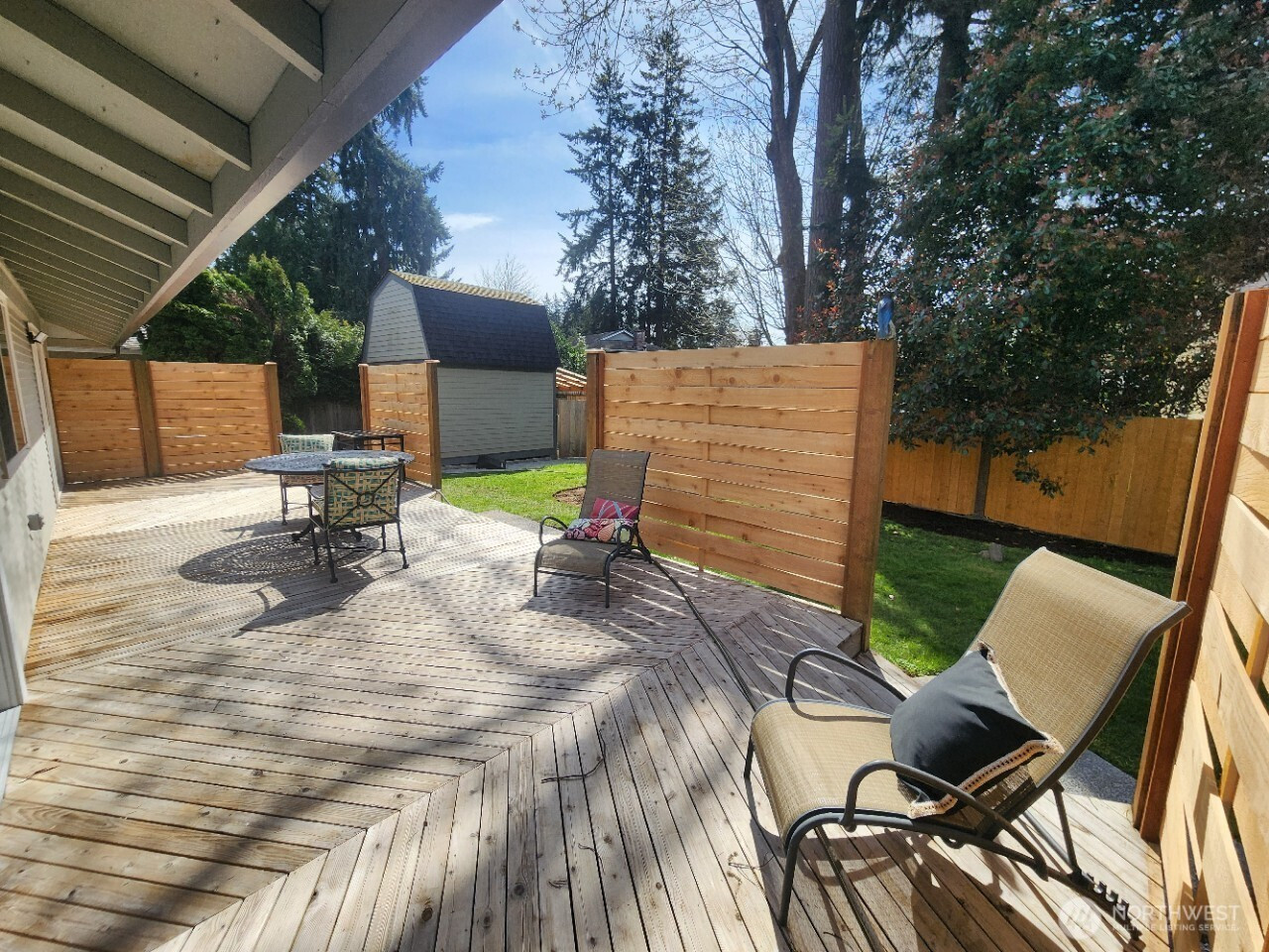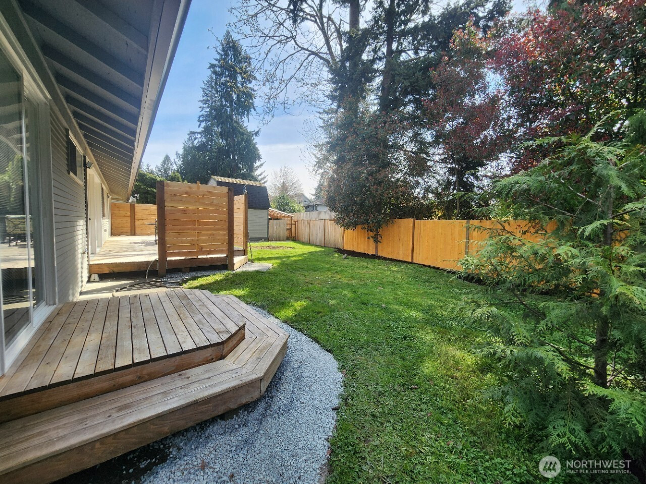 Nicely modernized one level home, no more stairs with improved accessibility and easier maintenance. Modern updates make this home looking almost like new with stylish kitchen cabinets, quartz countertops, smart appliances, bath with walk-in shower, jetted tub, LVP waterproof flooring, paint, windows, roof, vaulted ceilings, double french doors, primary bedroom with sliding doors out to a deck. Garage with work bench, RV/boat parking on the side of the house, large shed with power great for storage or hobby room, private deck. Conveniently located near a major freeways and shopping centers, this home provides both peace and easy access to city living and Game Farm Park’s.