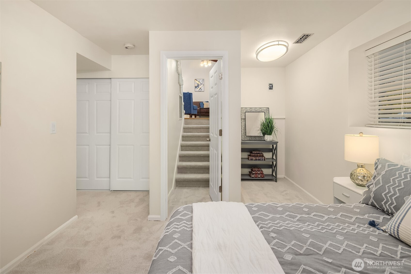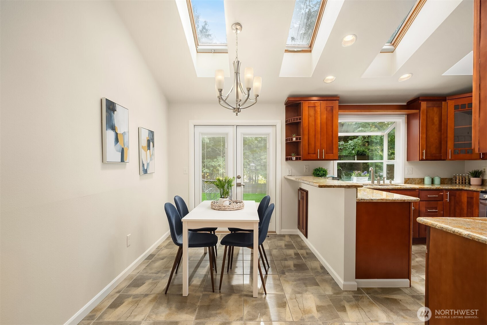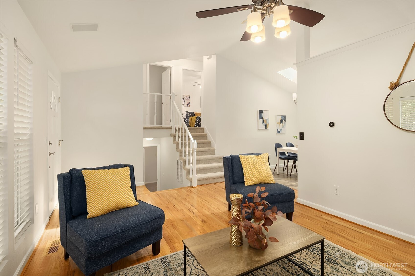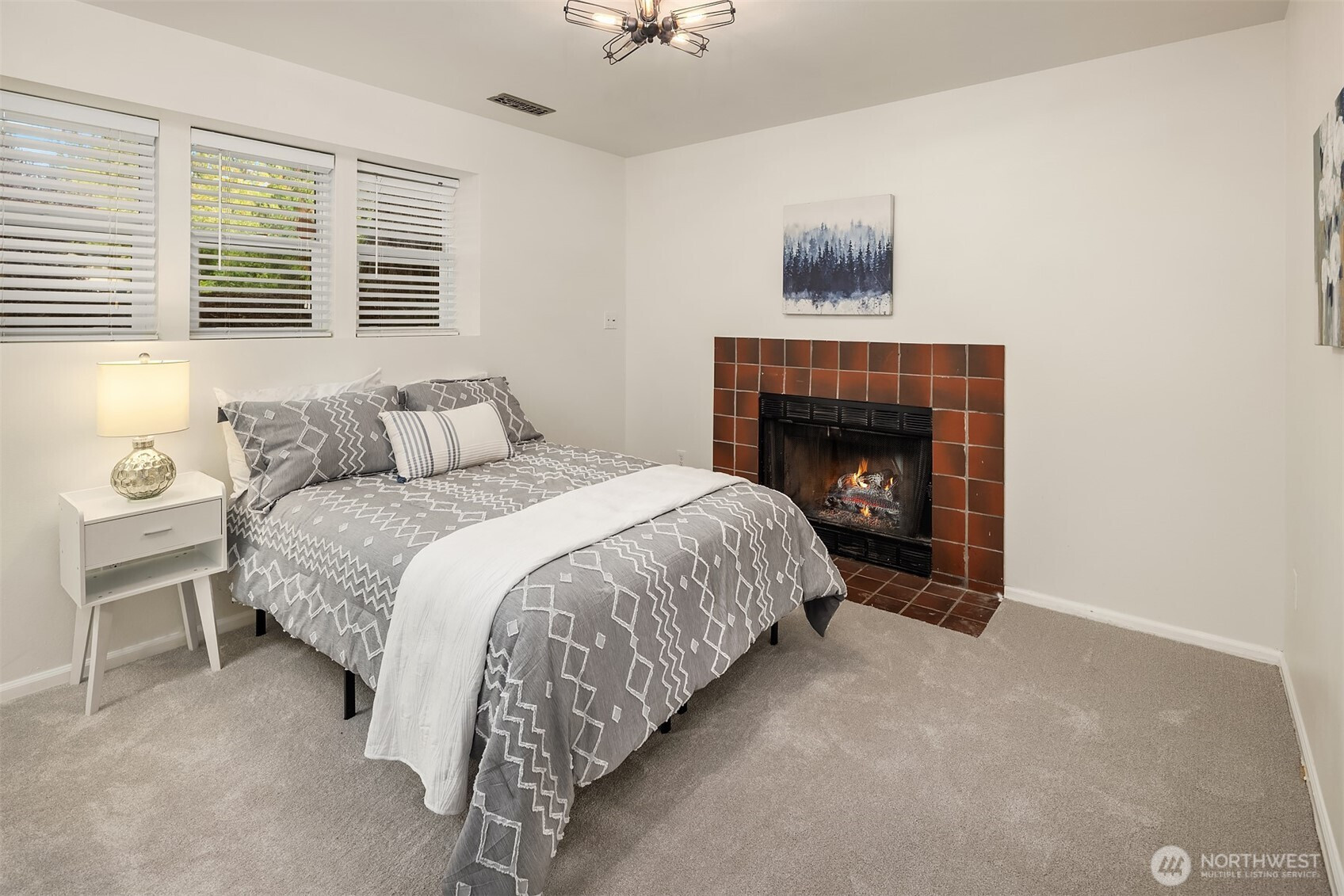 Beautifully updated 3-bedroom, 2-bath home on a quiet street with a large, level ¼-acre lot. A spacious front yard and inviting porch lead into a bright, open living area featuring vaulted ceilings & newly refinished hardwoods. The remodeled kitchen offers stainless steel appliances & a sunlit dining area with four skylights. Enjoy modernized baths & custom closets in the primary suite. The fenced backyard boasts a low-maintenance Trex deck—perfect for entertaining. Save on energy with 26 solar panels with microinverters designed for efficient performance year-round. Includes a 200 sq. ft. shop or studio (not in sq. ft.), new paint and carpet, a heat pump for cooling & award-winning Lake WA schools. No HOA. Pre-inspected and move-in ready!