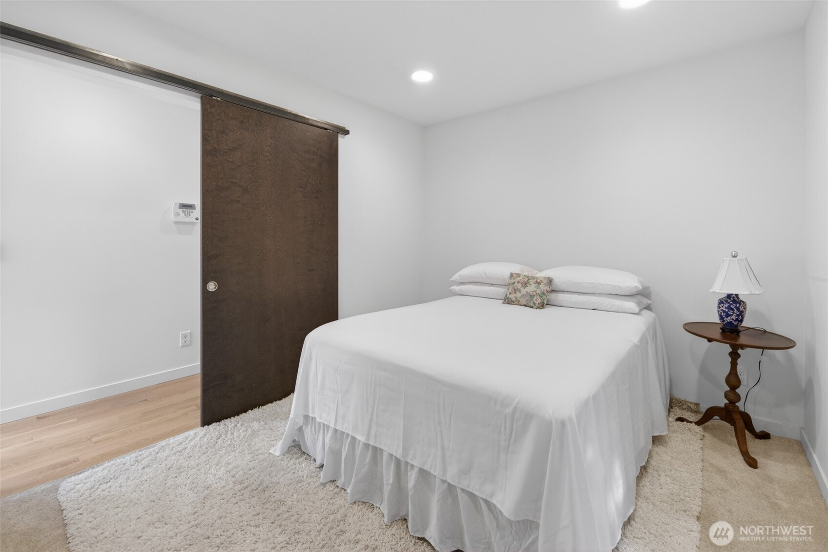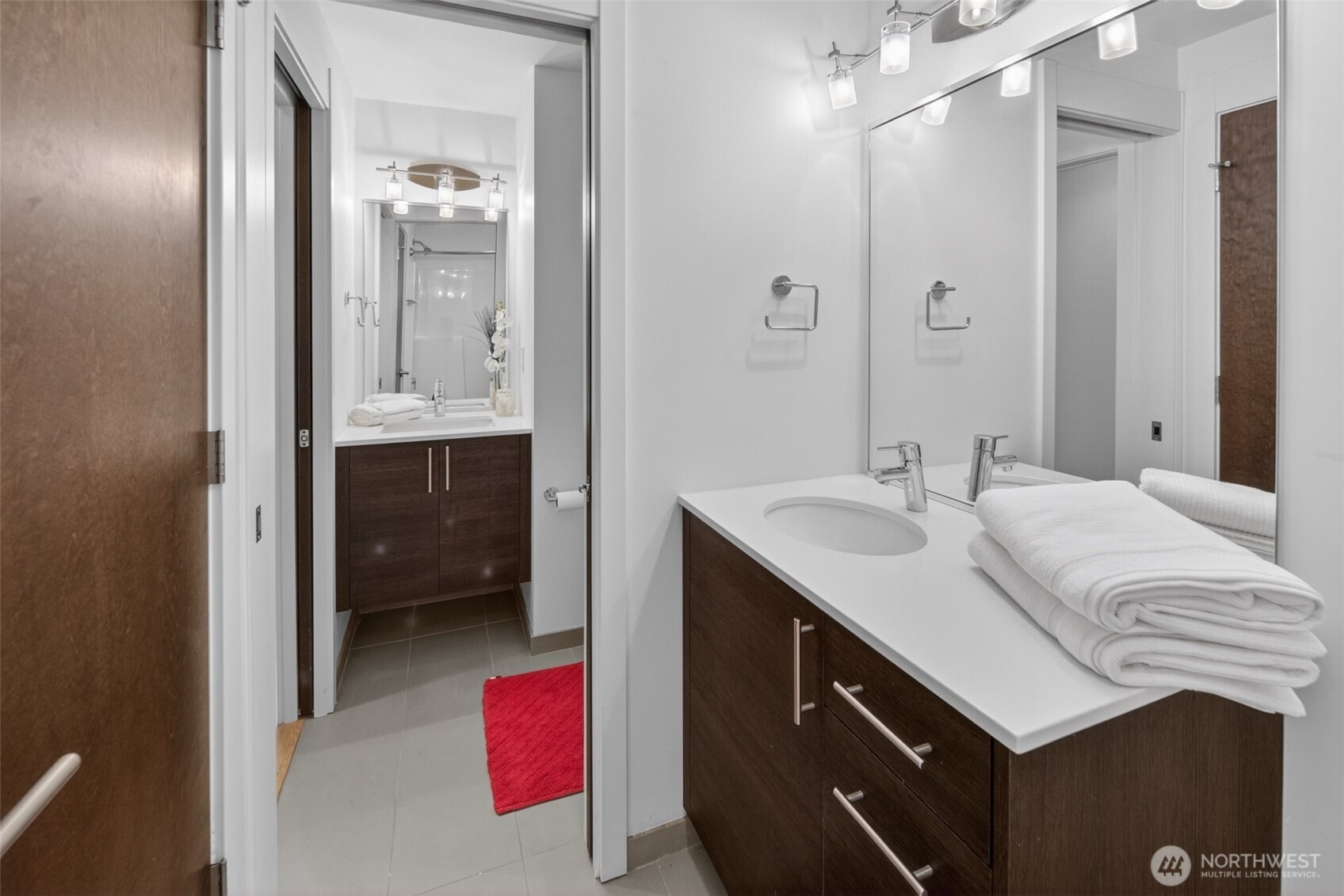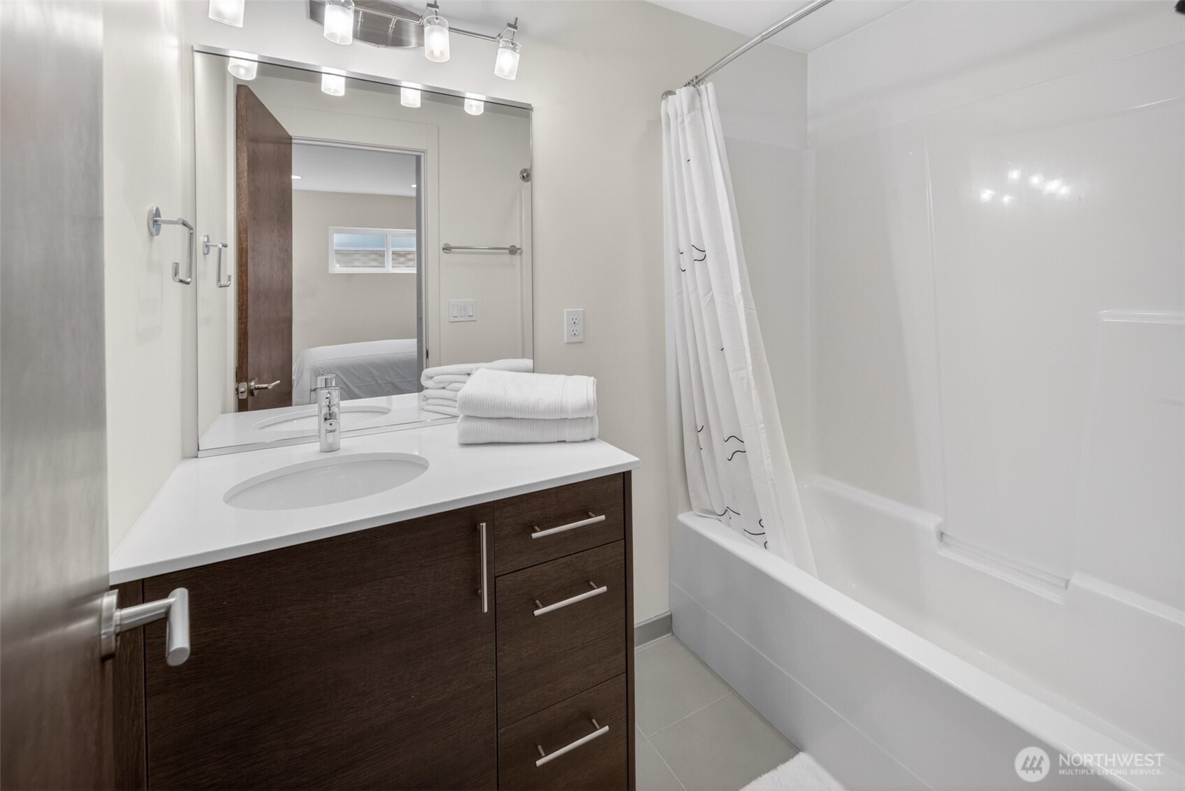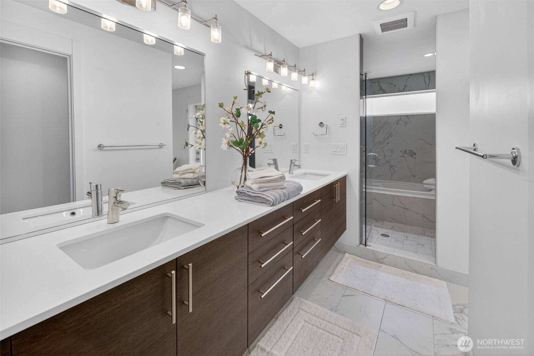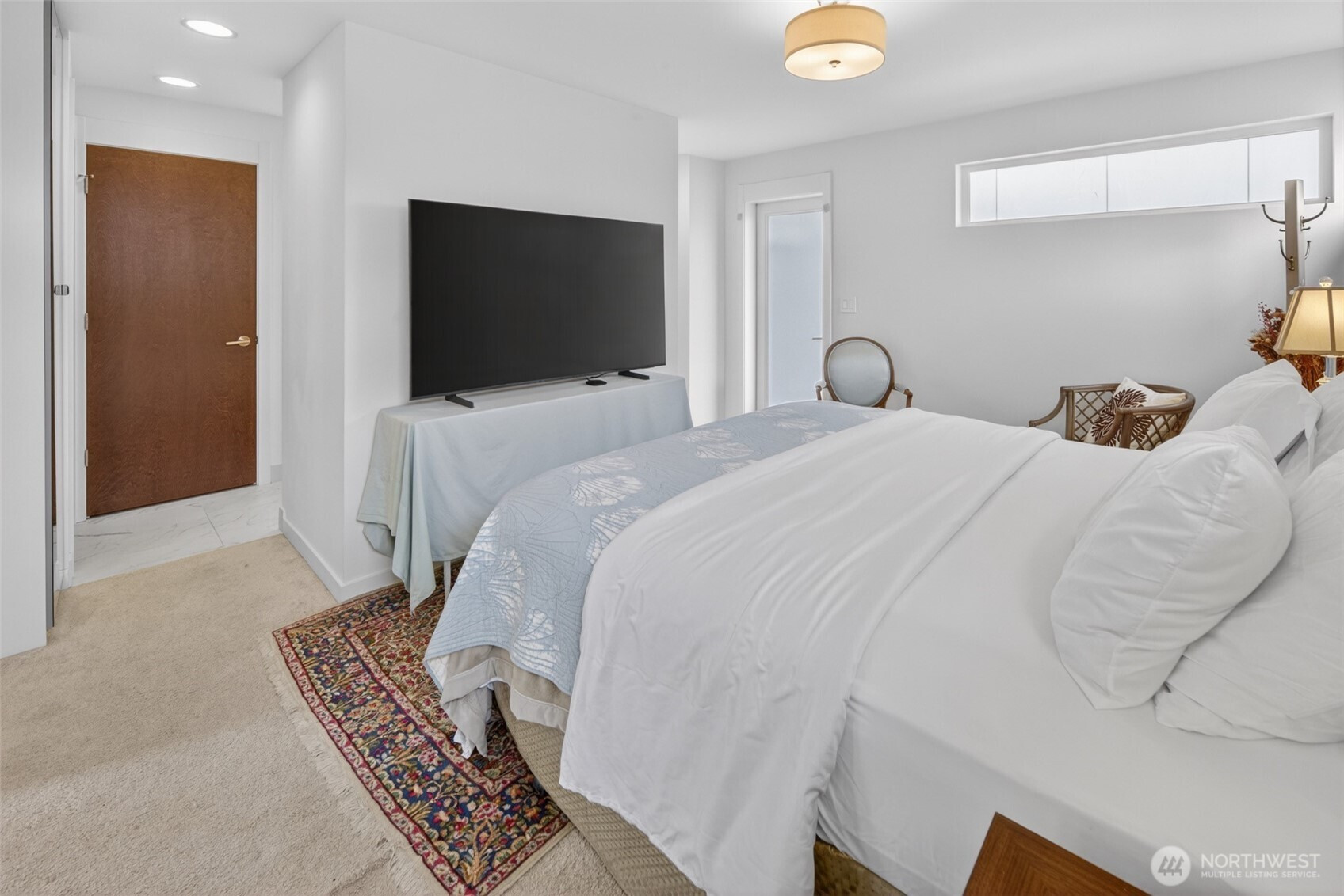 Discover Southeast Magnolia living from this architecturally distinctive 2015 townhome, where a soaring atrium rises the full height of the building, connecting all three levels through open steel-cable railings and tall windows that pull natural light deep into every floor. The entry level holds two bedrooms alongside a laundry room, keeping the main living level open for what it does best. Up one floor, the open plan is anything but generic. Corner windows facing east pour morning light across a main level designed with intention, a proper dining space alongside a distinct living area, anchored by a gas fireplace. Dark flat-panel cabinetry runs against white quartz counters and a clean island with bar seating. GE appliances and a Zephyr range hood complete a kitchen that is suited for weeknight dinners and weekend hosting. This is not your everyday townhome floor plan. The primary suite occupies the top floor with its own private balcony. The en-suite bath has a dual vanity, dark cabinetry, and a glass-enclosed shower and soaking tub. Above that, the rooftop deck delivers territorial and water views with real privacy from neighboring units. Step outside and you are choosing between a morning at Discovery Park, an afternoon at Chittenden Locks watching boats work through to Lake Union, or dinner at Chinook's with a view across the marina. Dedicated off-alley parking. This is the Magnolia lifestyle at its best. Come experience it.