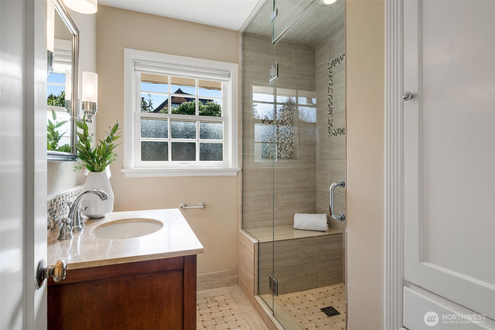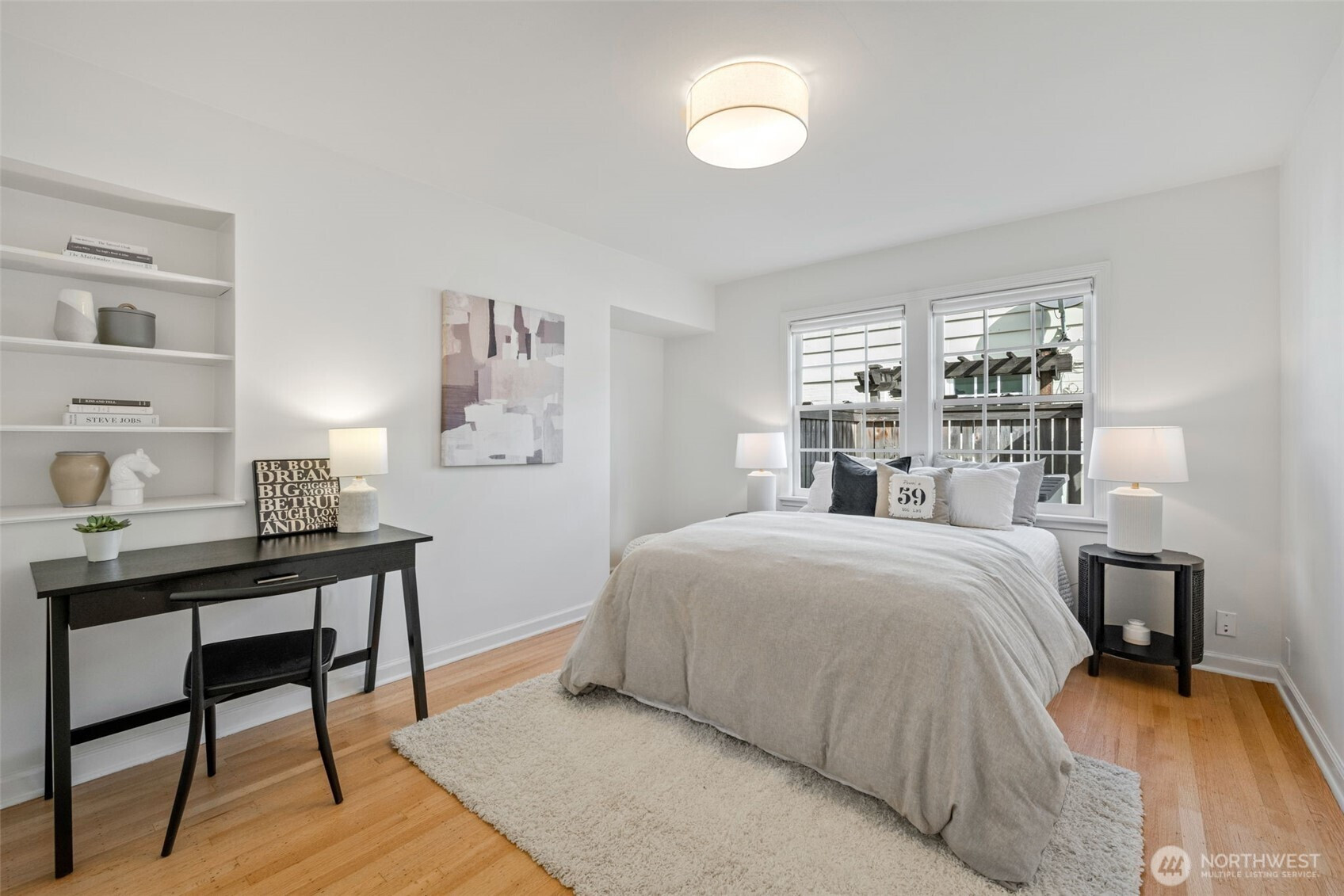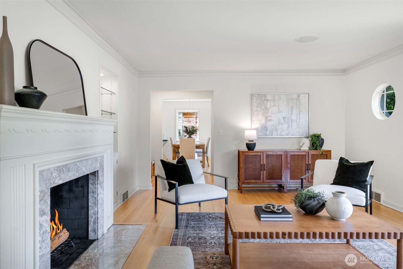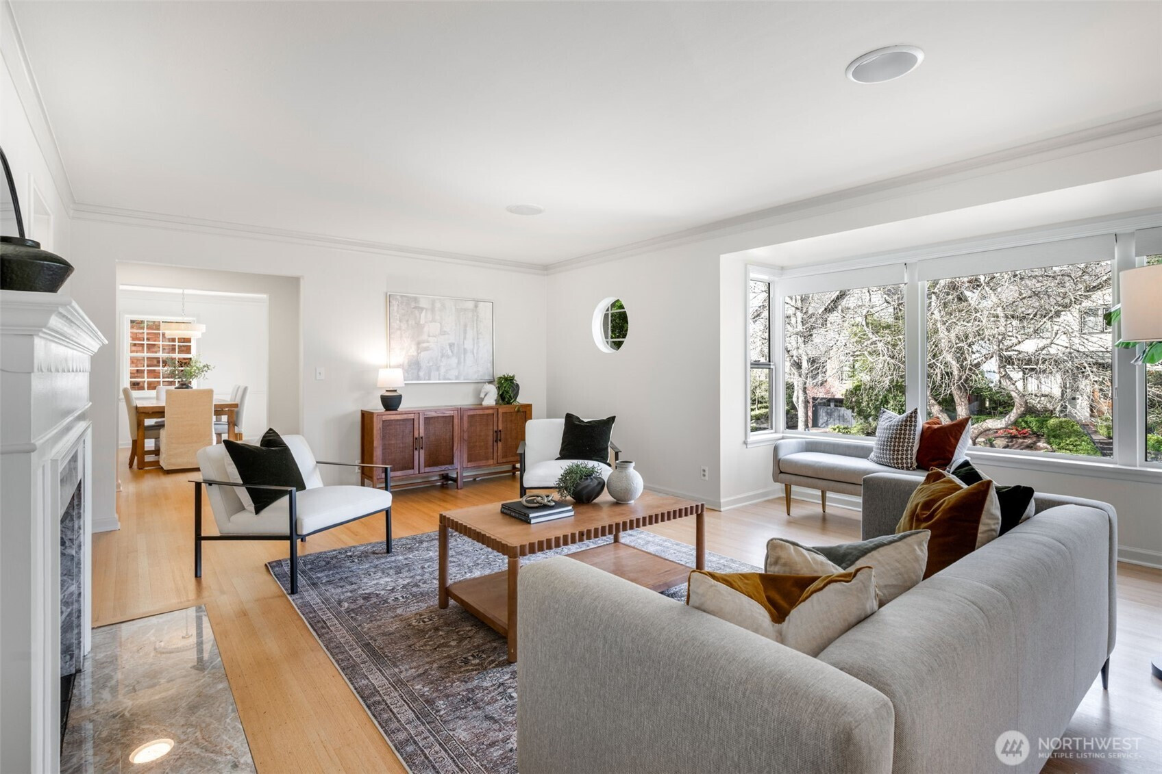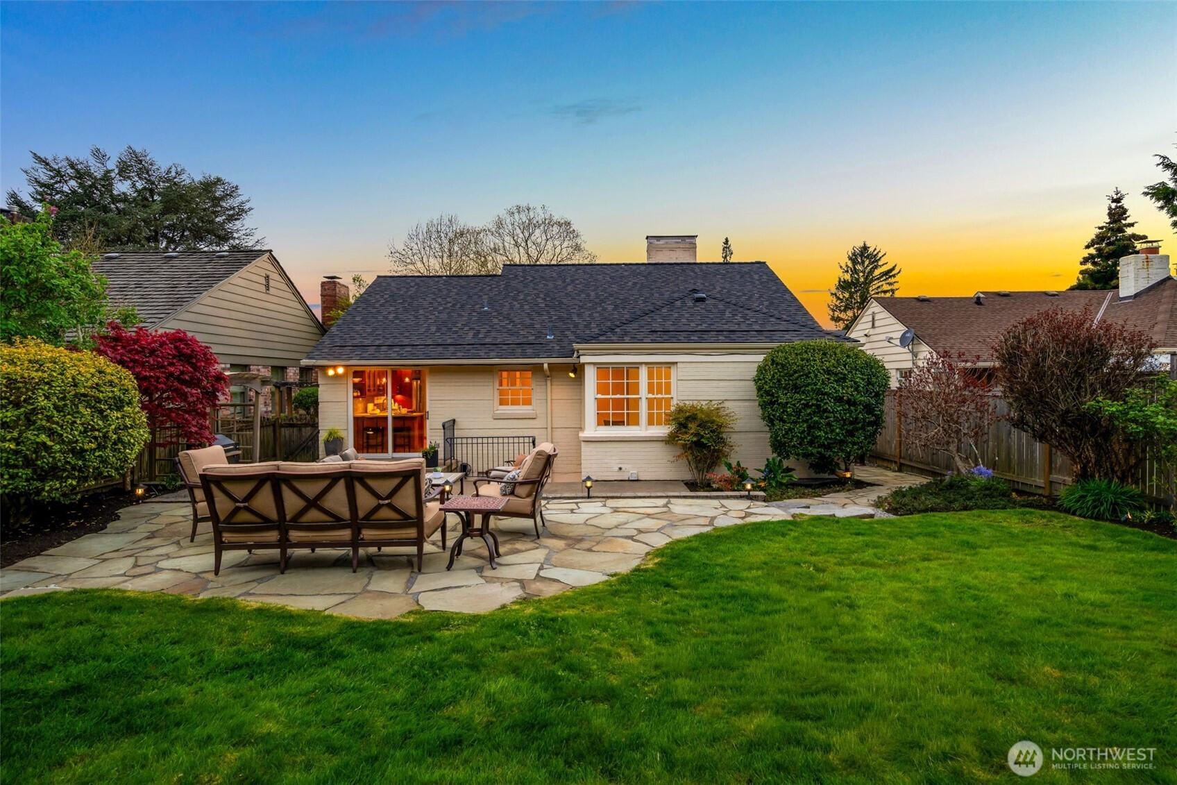 It's not often you find this sense of calm while still being in the city. Set on one of Magnolia’s quietest streets, this west-facing early Northwest traditional home blends timeless character with thoughtful modern upgrades. From the moment you step inside, you’ll feel at ease as sunlight pours through upgraded windows onto classic hardwood floors and plaster walls. The main-level living room, anchored by a wood-burning fireplace, offers an inviting space to gather and entertain, while the lower-level media room with a gas fireplace provides additional room to relax and spread out. The upgraded kitchen is both functional and welcoming, and three generously-sized bedrooms offer comfort and flexibility for everyday living. Thoughtful details elevate the experience throughout, including a steam shower, built-in sound system, and solar window treatments. Step outside to a private, professionally landscaped backyard retreat with flagstone pavers and automated lighting – an ideal setting for summer dinners and effortless entertaining. Additional highlights include abundant storage, a sprinkler system, an attached garage, and a new roof and furnace, offering true turn-key living. All set on a coveted, long-established block with underground power lines, just minutes from Discovery Park, Magnolia Village, and downtown Seattle.