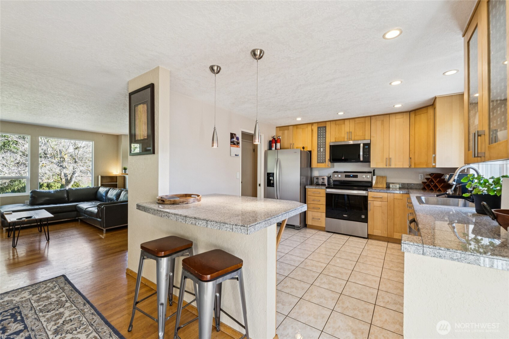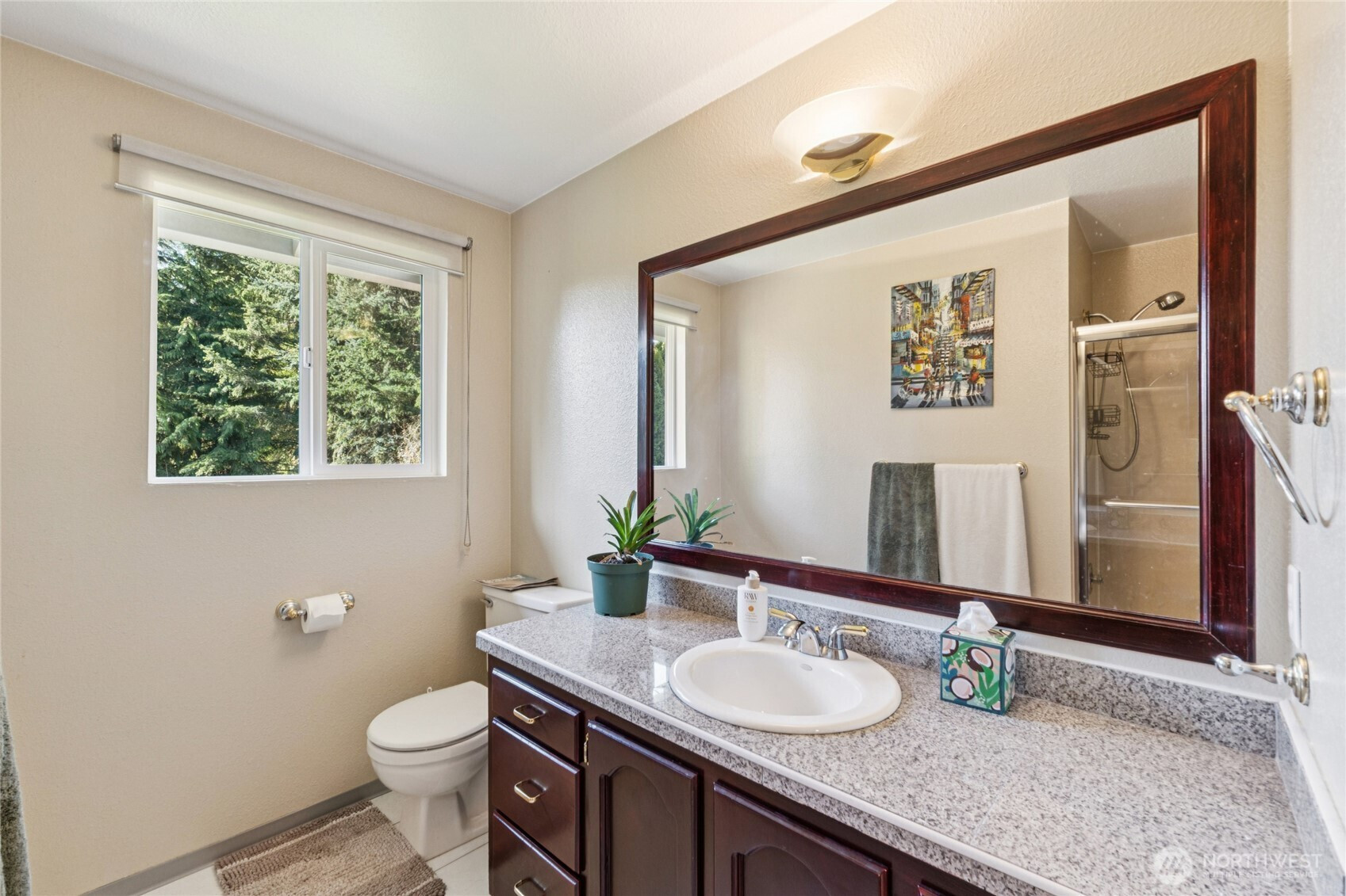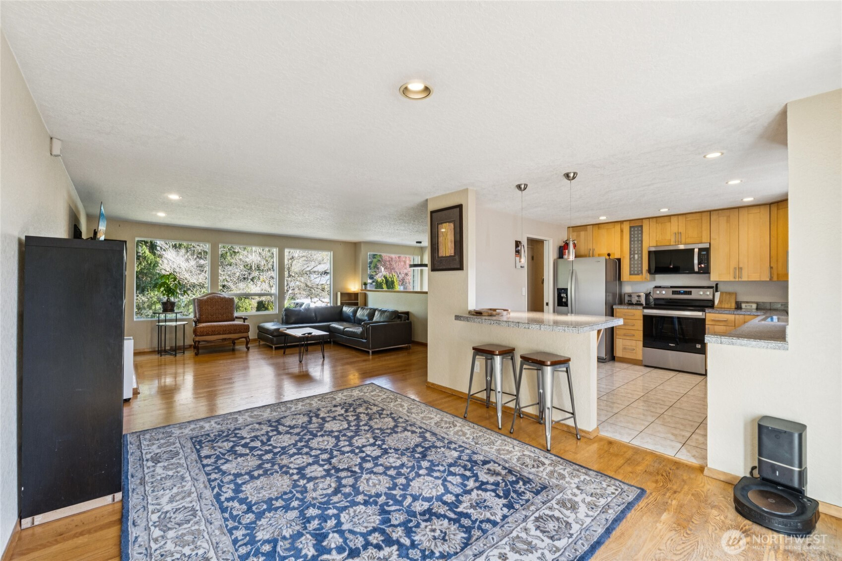 Move-in ready gem on a quiet cul-de-sac in the desirable Shoreline School District! This spacious 2,260 sq. ft. home offers comfortable living with thoughtful updates and excellent flow. The main floor features beautiful hardwood floors throughout the expansive great room, anchored by a cozy gas fireplace. The bright kitchen boasts matching stainless steel appliances, generous cabinetry and counter space, plus a convenient bar eating area. A full formal dining room opens through sliders to a large rear deck—perfect for indoor-outdoor entertaining. Upstairs, the primary suite includes a 3/4 bath, complemented by two additional generously sized bedrooms and 3/4 guest bath. The lower level is an entertainer’s dream with a large rec room featuring a warm wood-burning fireplace, 4th bedroom, a convenient full laundry room, and an additional 3/4 bath. Outside, you’ll love the huge, level .21-acre fully fenced lot—offering with mature privacy landscaping, plenty of room to play, summer BBQs, and gardening. Additional highlights include a 2-car garage and ample driveway parking. Just steps from a highly rated K-8 school and nestled in one of Lake Forest Park’s most sought-after neighborhoods—this home truly has it all!