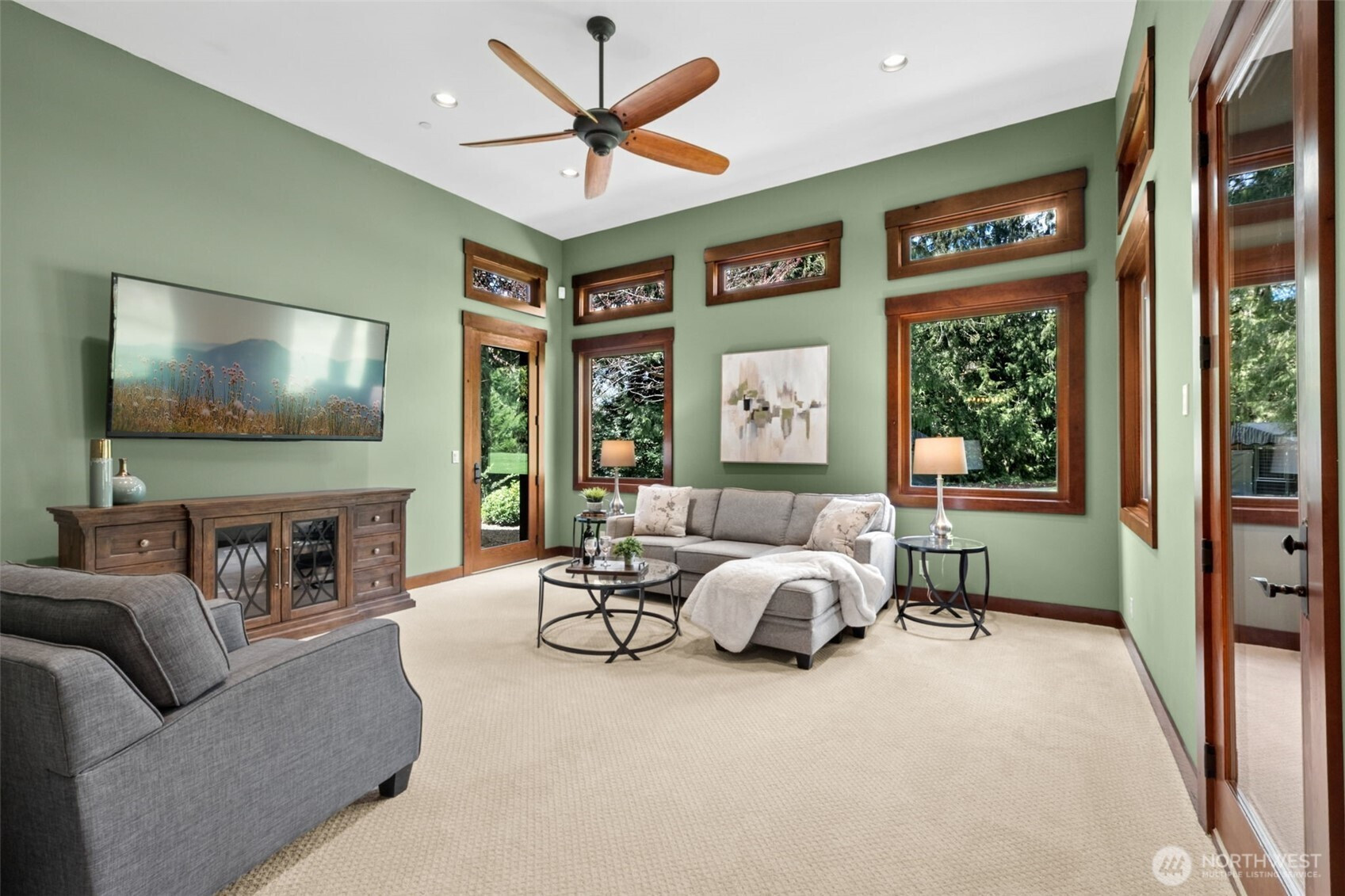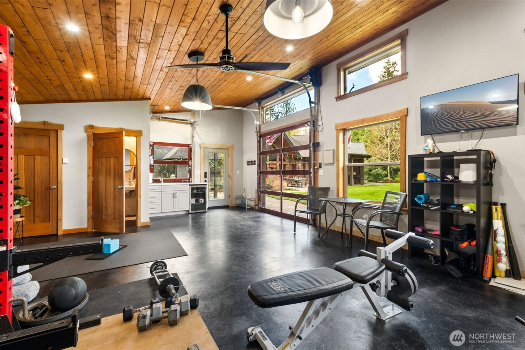 PNW Contemporary design meets timeless Craftsman influence in this beautifully curated custom home on 10 serene acres. An architecturally divine exterior of stone, wood & shingle accents welcomes you to a warm entry with soaring wood ceilings & rich hardwoods. Great room stuns w/vaulted tongue-&-groove ceilings, a dramatic window wall overlooking park-like grounds, floor-to-ceiling stone fireplace with custom built-ins. Expansive chef’s kitchen w/abundant cabinetry, granite surfaces, double ovens, SS appliances & a large island w/seating—flowing to a bright dining nook wrapped in windows w/patio access. A main-level office sits just off the entry. Privately positioned, the primary suite offers a tray ceiling, garden views, and a spa-inspired ensuite w/soaking tub centerpiece, barrel-vaulted wood ceiling, dual vanities, statement lighting, an oversized double walk-in shower, plus a boutique-style closet w/in-suite laundry & coffee/wine bar. Upstairs bonus w/bedroom, bath + kitchenette plumbing creates ideal guest suite or multigenerational living! Outdoor living shines w/a covered patio, wood ceiling, fan, hot tub, fire pit & garden area, greenhouse & shed. Detached cabana/studio w/bath & kitchenette offers DADU potential. Massive 20’x80’ shop w/4 bays, mezzanine, and office. Surrounded by gorgeous Evergreens and endless privacy! W/large level lawns for furry friends & outdoor play & entertaining, there is something for everyone and every activity in this private estate!