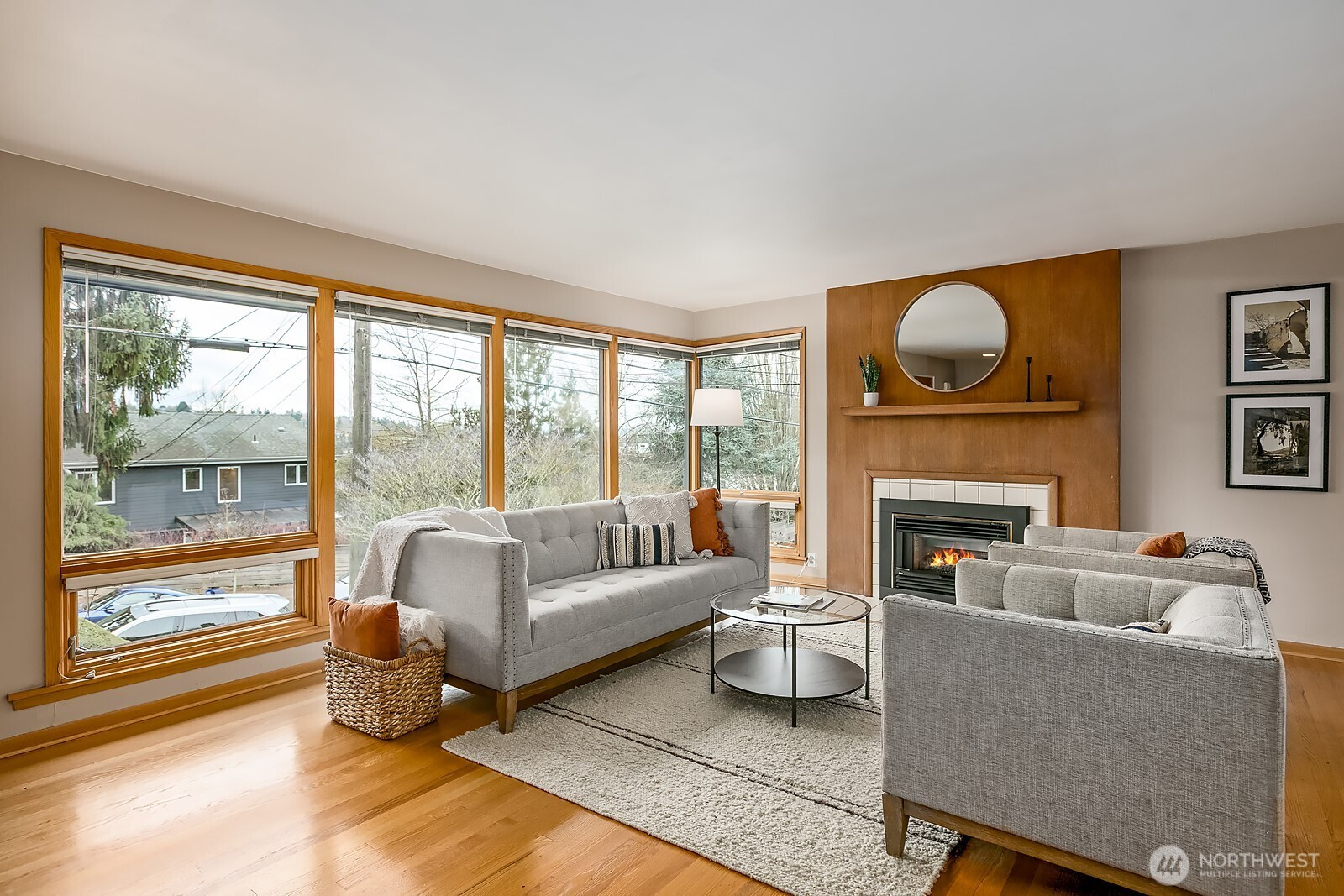 Welcome to this charming 1950's Roman brick daylight rambler, meticulously maintained by the same owner for over 30 years. This delightful home blends timeless mid-century design with modern updates. The spacious living room boasts large windows that flood the space with natural light. Gorgeous hardwood floors along with a cozy gas fireplace add warmth and charm. The updated kitchen features sleek slab granite counters, shaker cabinets, and stainless-steel appliances + gas cooking making it perfect for culinary adventures. The kitchen opens directly to a private backyard oasis with private patio & mature landscaping, ideal for barbecues and entertaining. There are two generous bedrooms on the main level + 1 on the lower level with an en-suite bath. Both bathrooms have been thoughtfully updated. The lower level has an oversized family room and extra large utility room awaiting your personal touches… In addition, there is a garage that is roomy enough to fit a car + storage. A secret room off the garage is perfect for a wine cellar. With its blend of classic charm and modern convenience, this home is truly a gem.