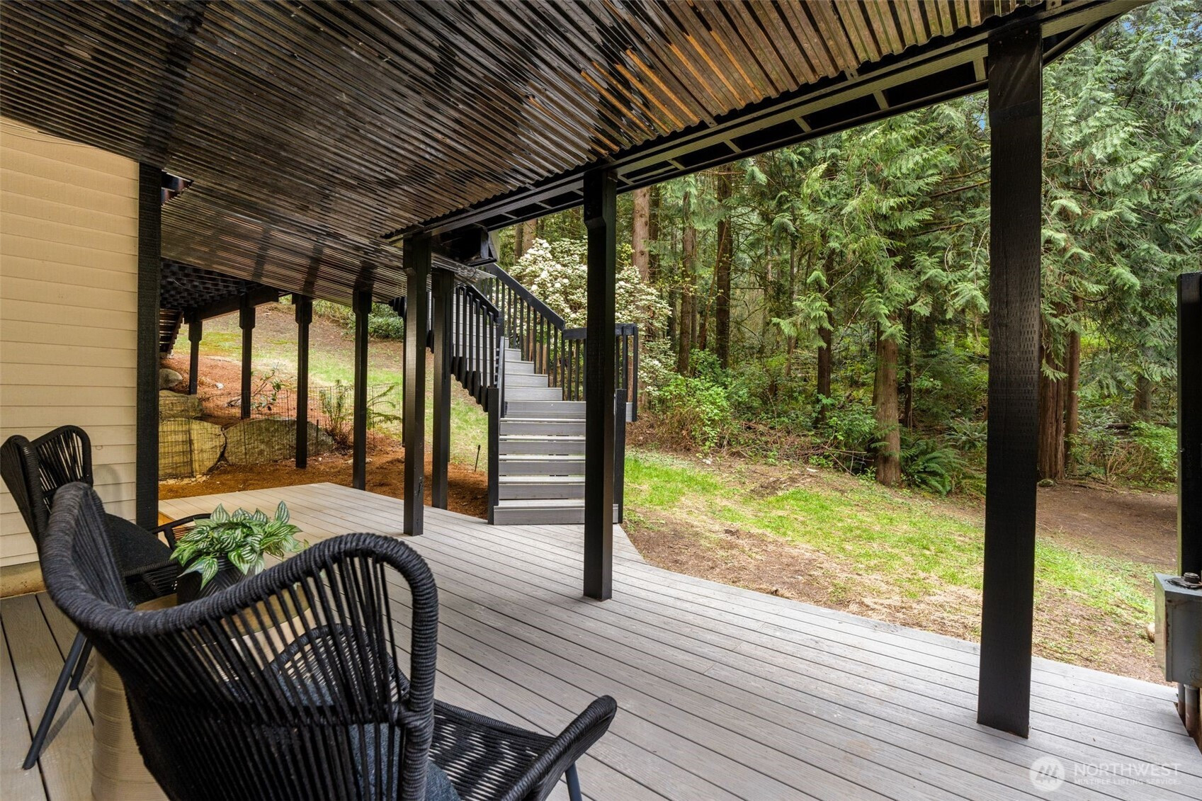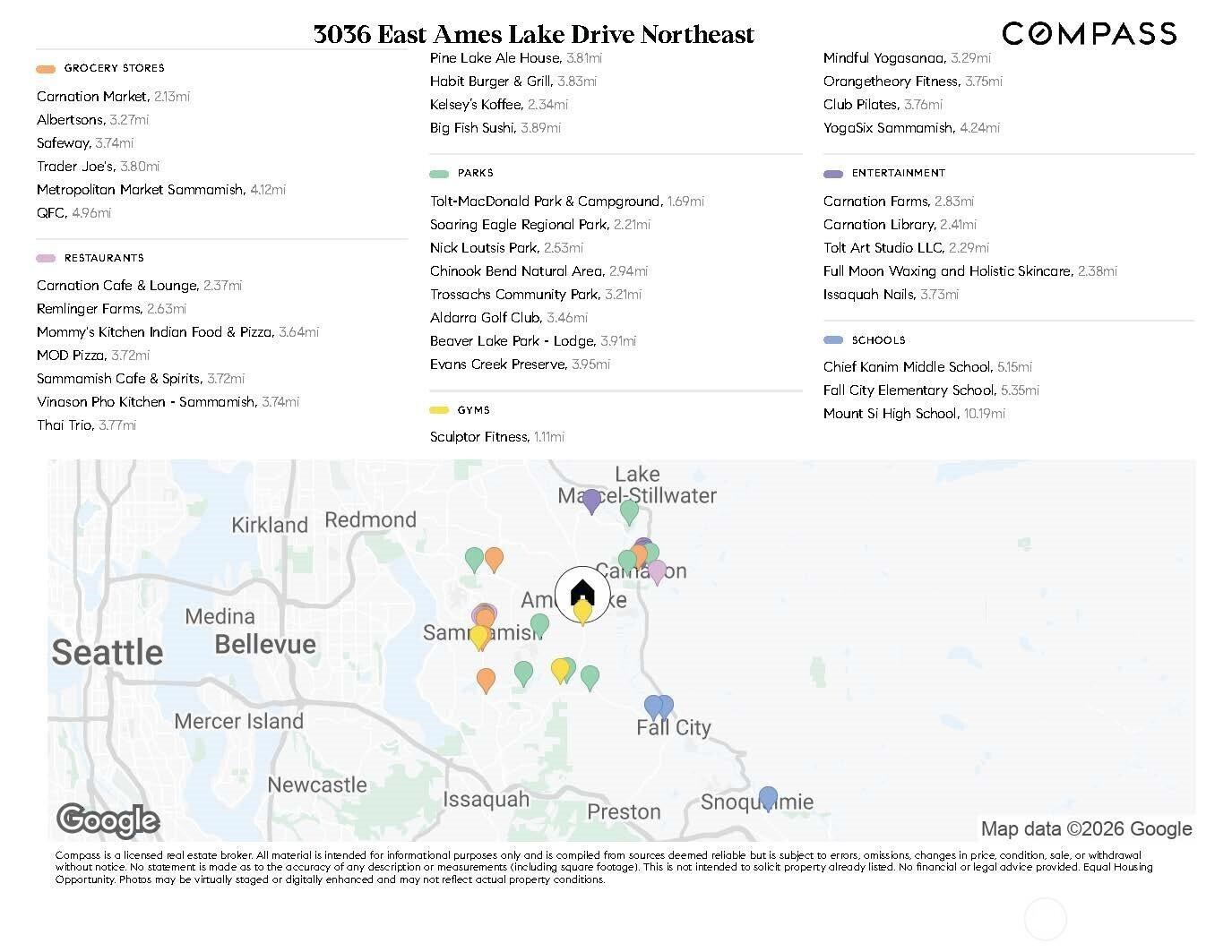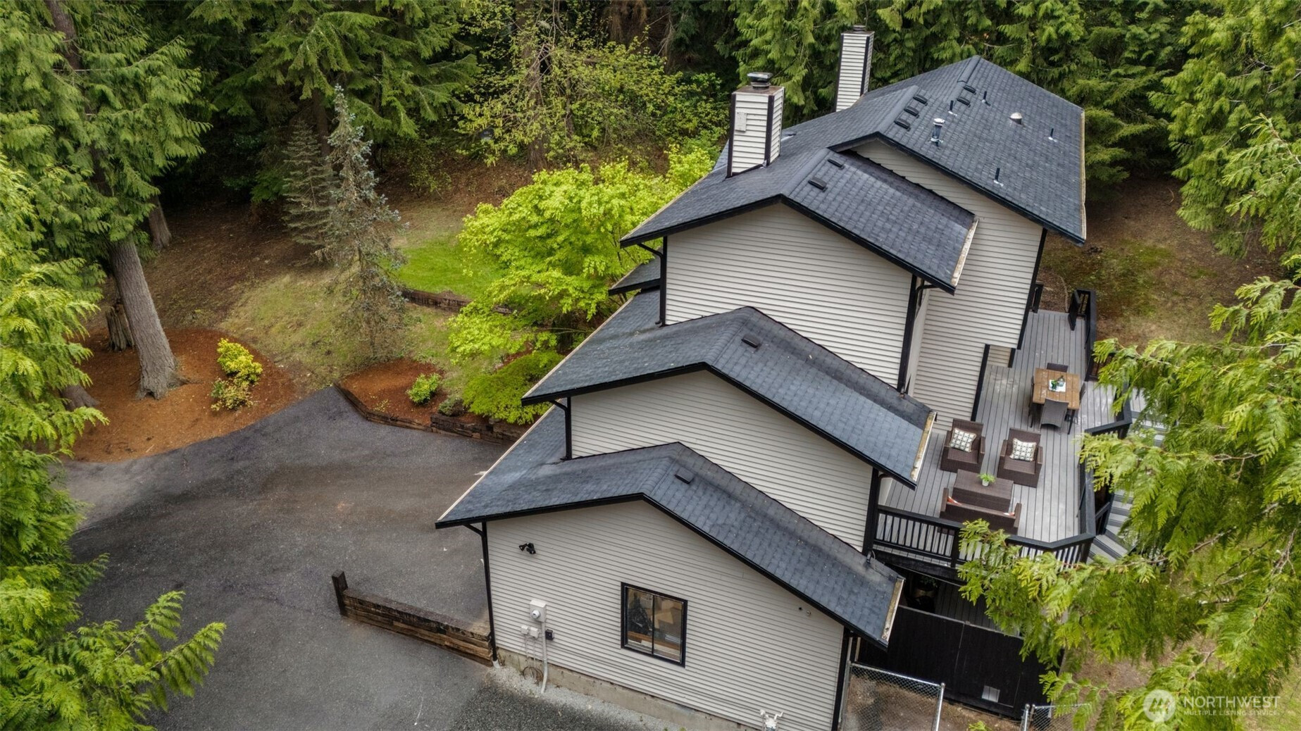 Tucked down a private drive and surrounded by towering evergreens on a 1.1 acre double lot, this reimagined retreat offers rare seclusion just across from Ames Lake—one of Washington’s last private, non-motorized lakes. A full cosmetic renovation elevates the house throughout with all new: roof, furnace, interior & exterior paint, bathrooms, rich oak hardwoods cultivating the cozy modern forest sanctuary. Inside, spaces unfold with a natural, welcoming flow. A formal living and dining room transition seamlessly into an open kitchen and family room with counter seating and a slider to the porch—blurring the line between indoor comfort and outdoor living. An expansive bonus room offers endless versatility for a media lounge, home office, or play space. Upstairs, the serene primary suite is a true retreat, featuring a spacious walk-in closet and a dual vanity bath, complemented by two additional well-appointed bedrooms. The lower level adds a fourth bedroom, dedicated laundry, and direct access to the two-car garage and lower deck. Outside, the property lives like a private sanctuary. RV parking, a generous chicken coop, and a detached studio—ideal for a home office, gym, or creative haven—round out an estate-like setting. Optional 55$/Month HOA grants access to private park with dock. Located within the coveted Snoqualmie Valley School District, this is true seclusion without sacrifice—minutes from Redmond's dining, shopping, and commuter routes, yet an oasis entirely yours.