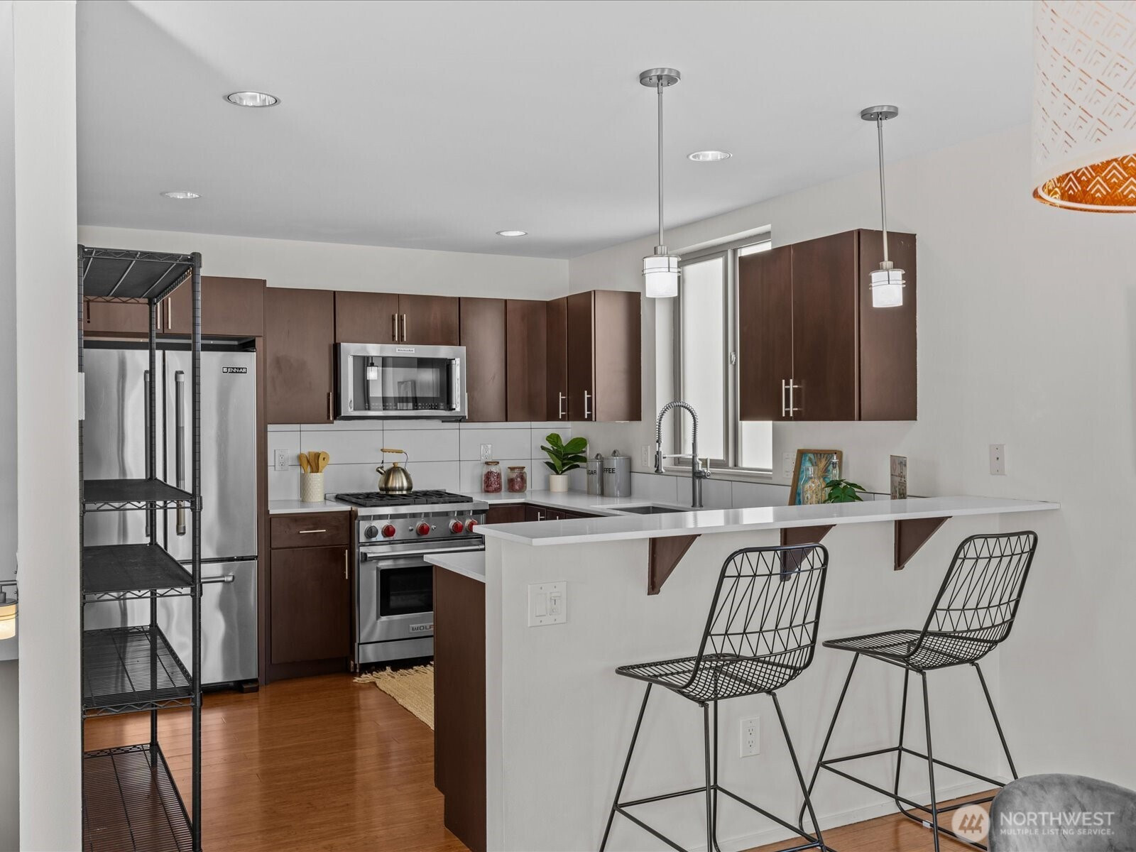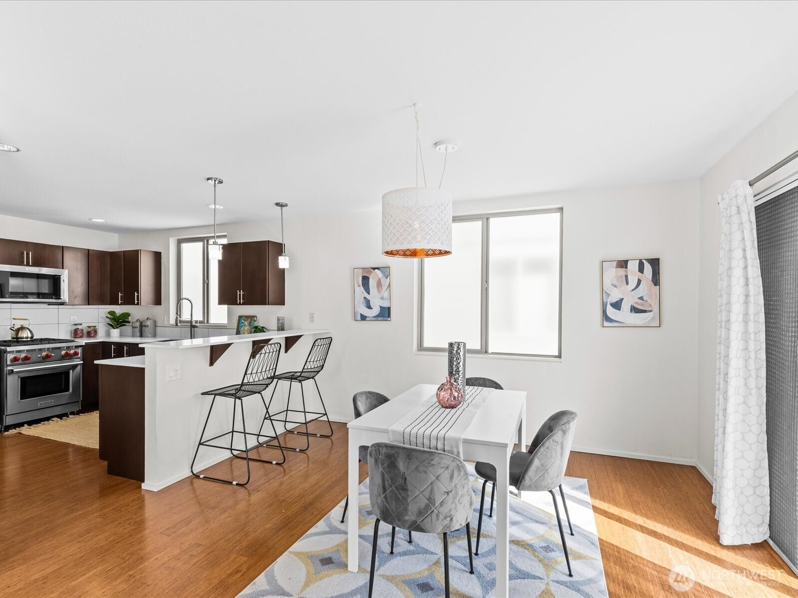 Don't miss this opportunity to purchase a stand alone home in the popular Alki neighborhood of West Seattle. Just blocks from Alki beach, this home has features galore. No shared walls or HOA. Media room with built in projection screen and speakers. Radiant heating for controlled temperature. 1 car garage for secure off-street parking. Fully fenced patio yard space with garden area. Wolf stove for amazing gas cooking in a spacious chefs kitchen. New carpet and dishwasher. Upstairs bedrooms have individual decks. Primary bedroom also has it's own built in vanity. Has smart home capabilities with Vera home monitoring, and Z Wave smartphone controlled lights, locks, and sensors. Nearby restaurants and beach life waiting for you.