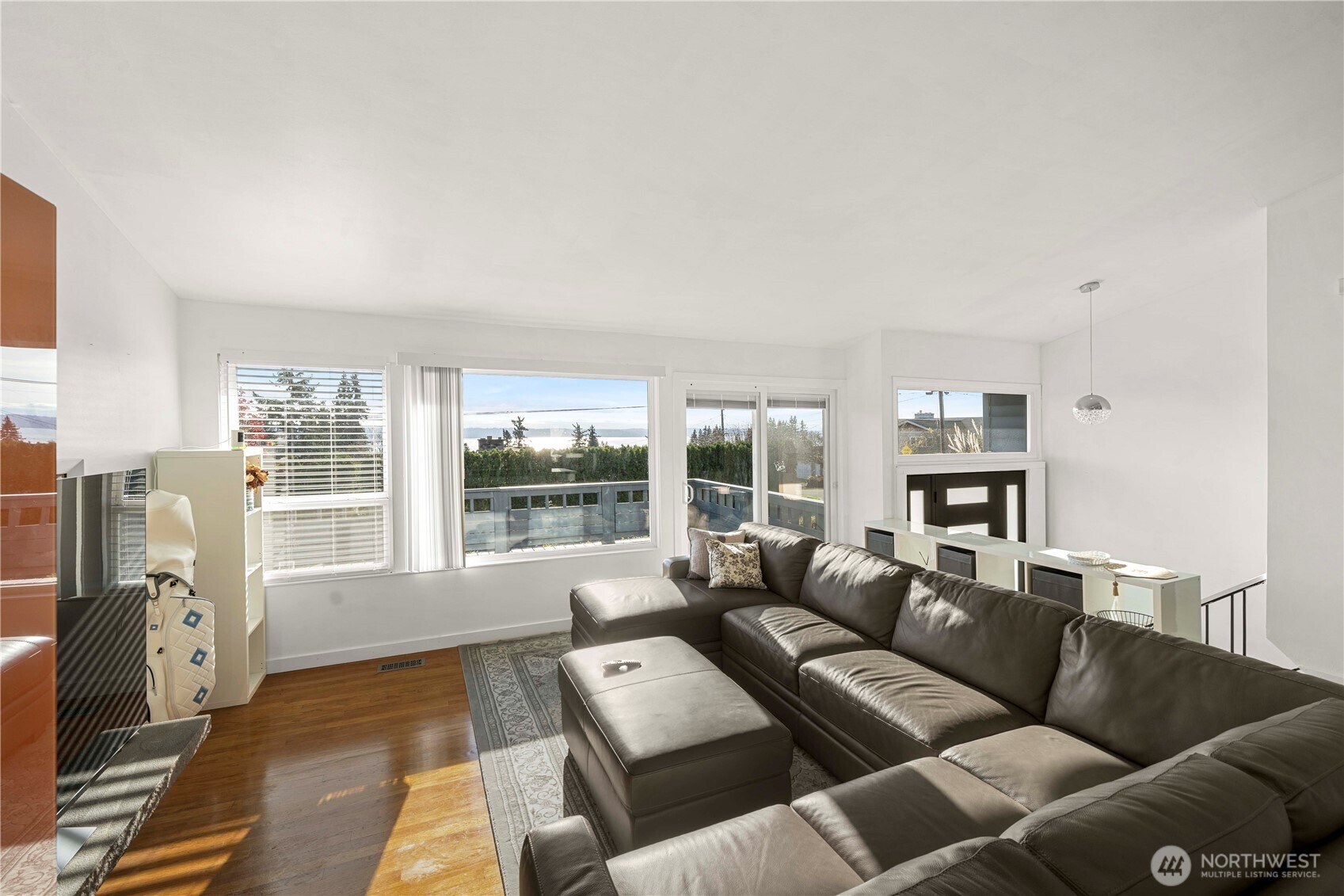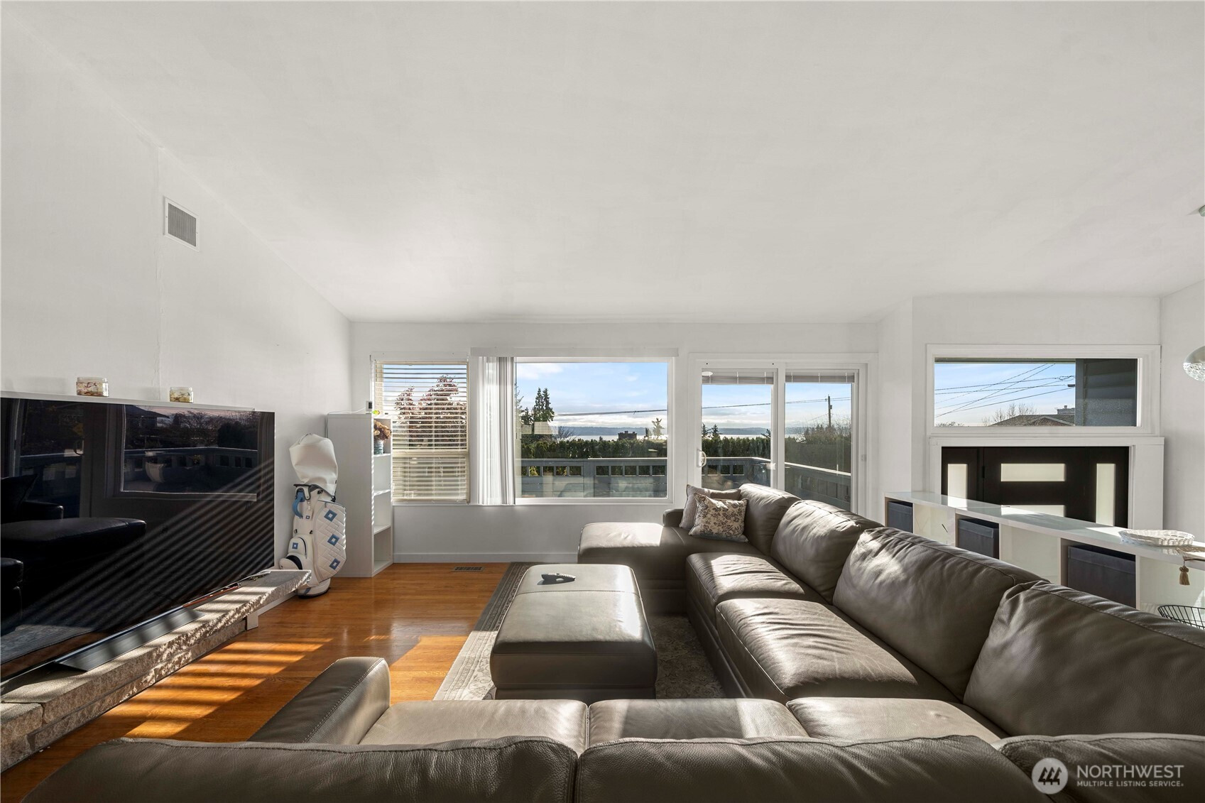 Beautifully updated home on a desirable corner lot offering city lights, territorial, and sparkling water views. The expansive deck is perfect for entertaining and enjoying stunning sunsets. Inside, you’ll find 4 bedrooms, 3.5 baths, and a finished basement—ideal for guests, multigenerational living, or a bonus/media space. The kitchen features quartz countertops, stainless steel appliances, and excellent storage. Warm oak and bamboo flooring add style throughout. A rare 3-car garage plus RV parking provides exceptional flexibility. Located in a prime area close to parks, schools, dining, and commuter routes. Don't forget bomb shelter in the basement.A fantastic value in a highly sought-after neighborhood.