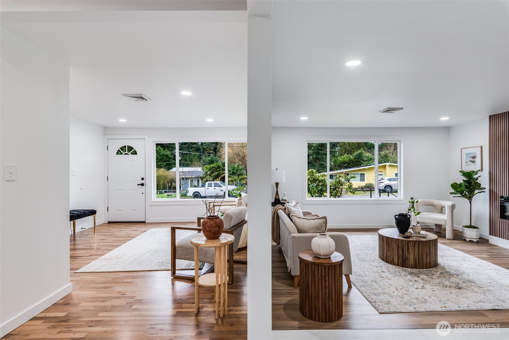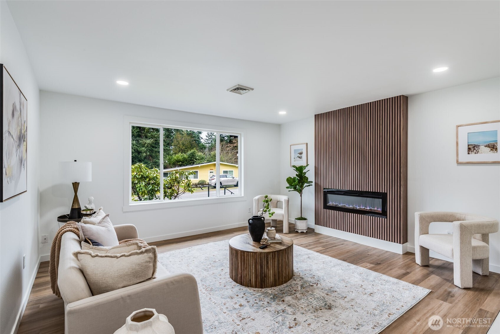 Welcome to this beautifully updated 3-bedroom, 1.5-bath rambler offering 1,200 sq ft of stylish, single-level living. Thoughtfully refreshed with modern accents throughout, this home features a stunning fireplace feature wall that anchors the living space and creates a warm, inviting focal point. Enjoy year-round comfort with both heating and air conditioning. The updated kitchen showcases contemporary cabinetry, clean lines, and a fresh, functional layout perfect for everyday living and entertaining. Move-in ready with tasteful upgrades and timeless appeal, the perfect blend of modern design and cozy charm. Close to restaurants, parks, freeway, shopping and entertainment.
