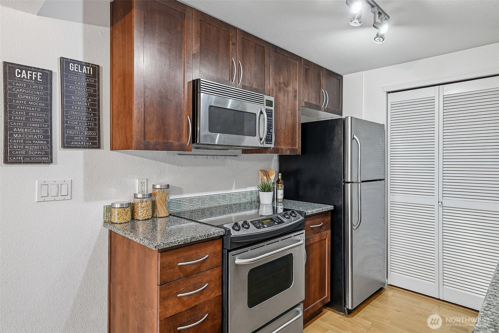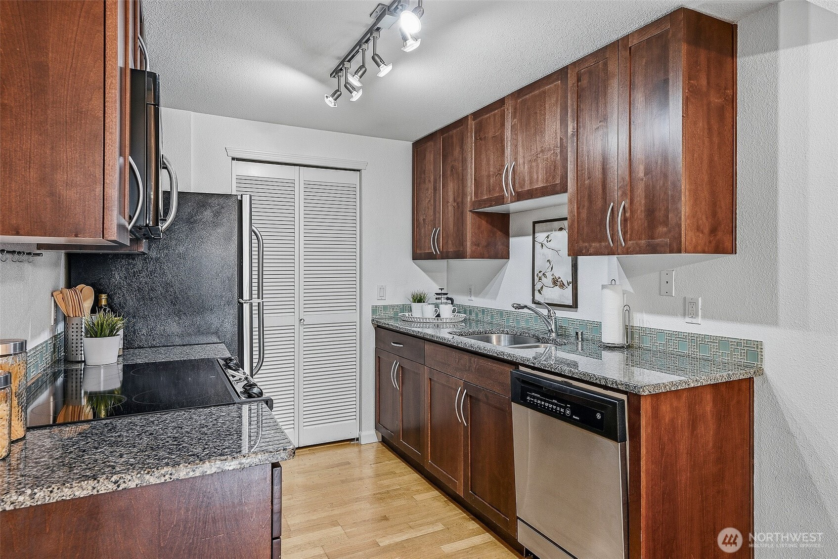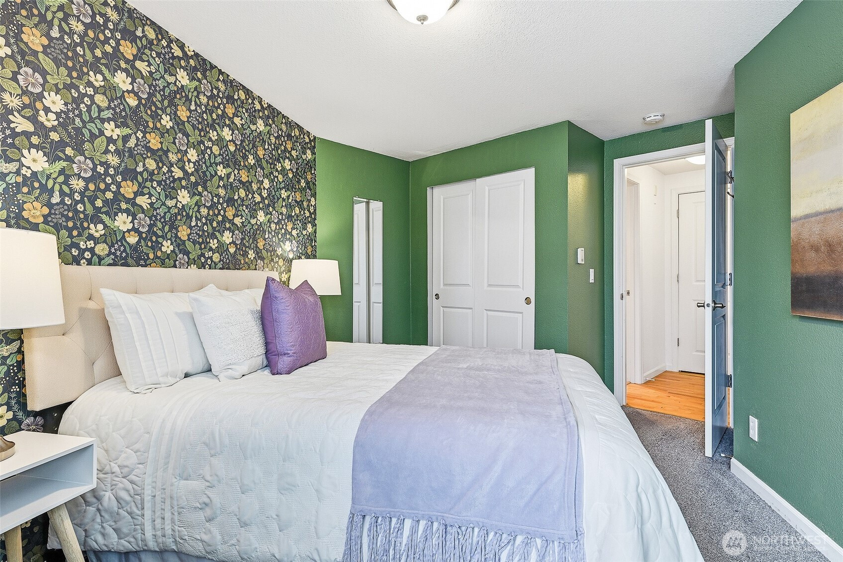 Perched on the top floor, this bright Magnolia condo stands out with charming details and elevated finishes. Enjoy easy living in this well-maintained 1-bedroom, 1-bath home with 584 square feet and no stairs to access in one of Seattle’s most loved neighborhoods. The light-filled living space opens to a private balcony with sunny territorial views, a perfect spot to relax or enjoy your morning coffee. The kitchen features slab granite counters, stainless steel appliances, and clean, timeless finishes. A wood-burning fireplace adds warmth and character, and the in-unit Bosch washer and dryer offer everyday convenience. The bedroom is a standout with stylish wallpaper that adds personality. The well-run HOA has completed major updates including new siding, insulation, windows, and a newer roof. Planned elevator modernization and no upcoming special assessments offer added peace of mind. Amenities include secure entry, Amazon lockers, one covered parking space, bike storage, and ample street parking within a boutique, pet-friendly community. Conveniently located near shopping, coffee, restaurants, pubs, parks, and the Interbay Athletic Complex. Easy commuting with RapidRide stops two blocks away and a protected bike lane across the street connecting to Elliott Bay and the Burke-Gilman Trail. Future light rail planned near Dravus Street. No rental cap and pre-inspected, making this a strong option for both homeowners and investors.