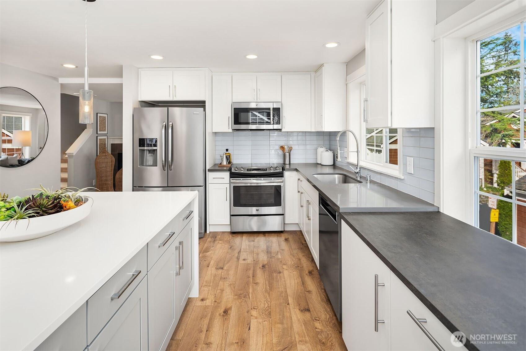 This charming Cape Cod-style townhome in desirable Woodridge has everything. With no shared walls, abundant windows, and an expansive nearly 2,000sf plan, this home lives like a house, but with the lock and leave convenience of a condo. The main floor features a chef’s kitchen with stainless steel appliances, quartz counters and island; living room with fireplace, large family/bonus room and half bath. Upstairs includes a primary suite with ensuite bath and walk-in closet, flex/office space, plus 2 more beds and a shared bath. And you won’t find a home like this with 2 garages (fits 4 cars) anywhere else! Close to downtown Bellevue, top schools and parks, with convenient freeway access, this location simply cannot be beat. No rental cap, pets welcome.
