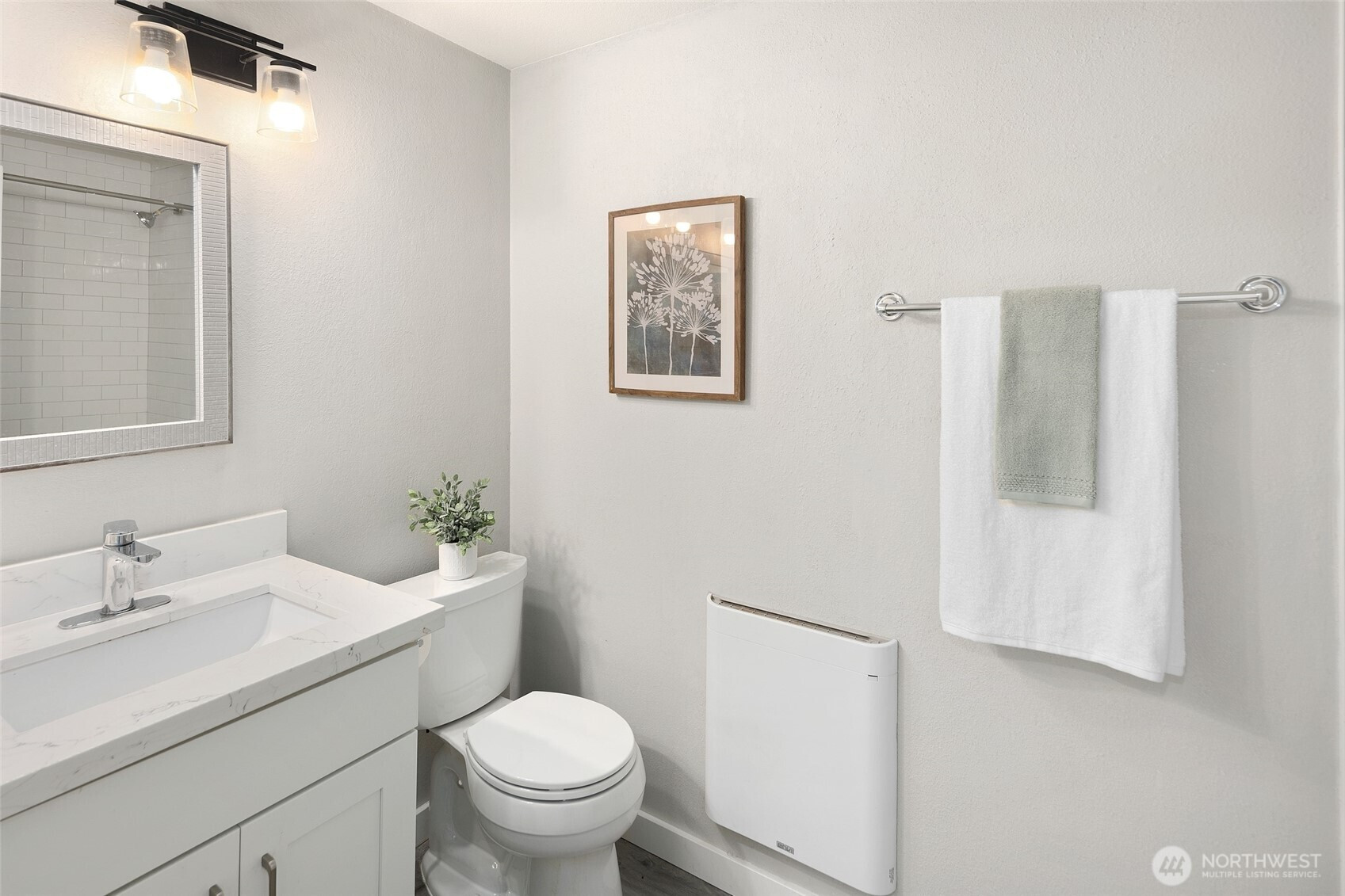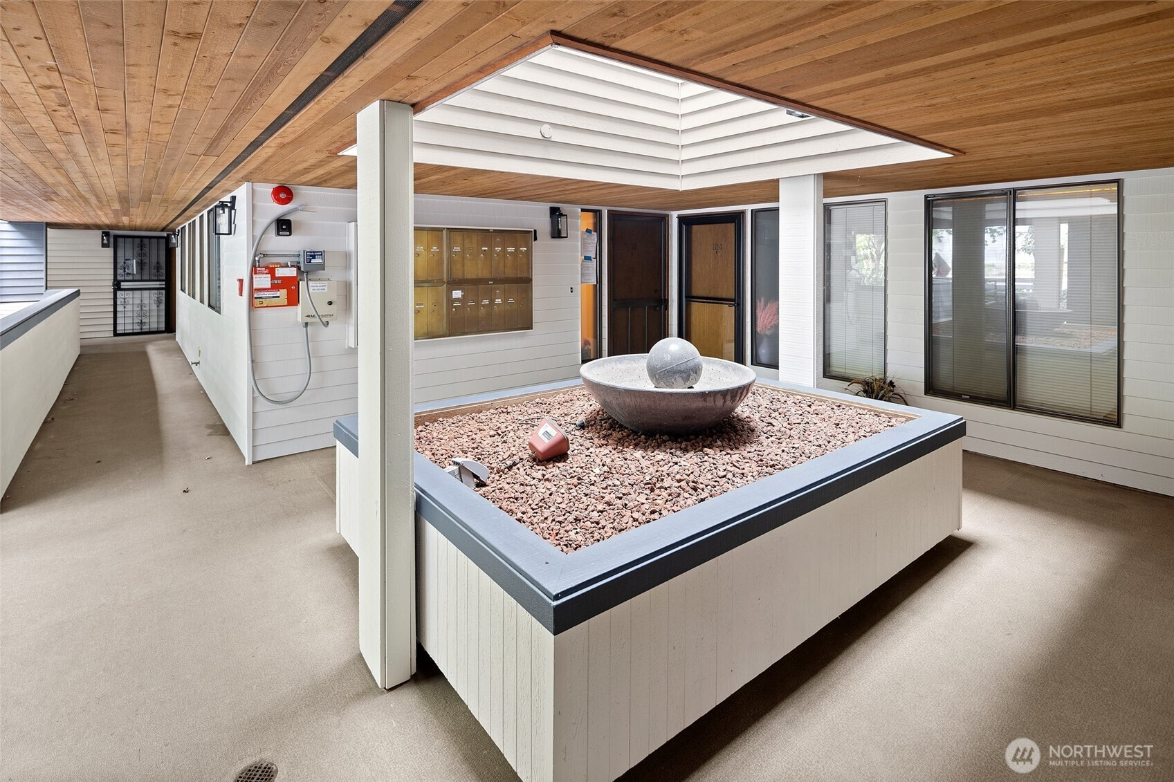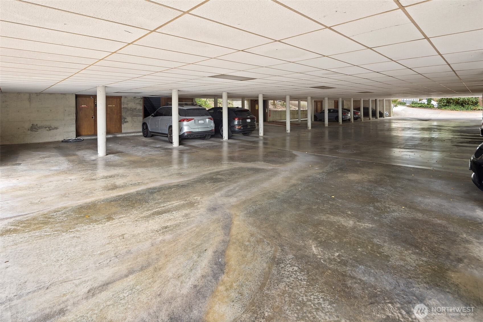 This ground-floor end-unit condo is light, bright, and ready to call home. The updated kitchen—quartz counters, stainless appliances—flows into a cozy family room with a wood-burning fireplace and sliding doors to a private patio. New LVP floors run throughout, leading to two bedrooms with custom closets and oversized windows. An updated bath, full-size in-unit laundry, two storage rooms, and a covered garage space add everyday ease. The building has an elevator and strong curb appeal. Walkable to Starbucks, Metropolitan Market, and local parks—and with Sound Transit's Light Rail Line 2 now crossing Lake Washington, Seattle and Bellevue are each just one stop away.