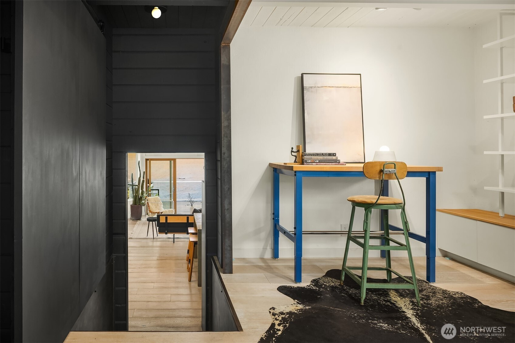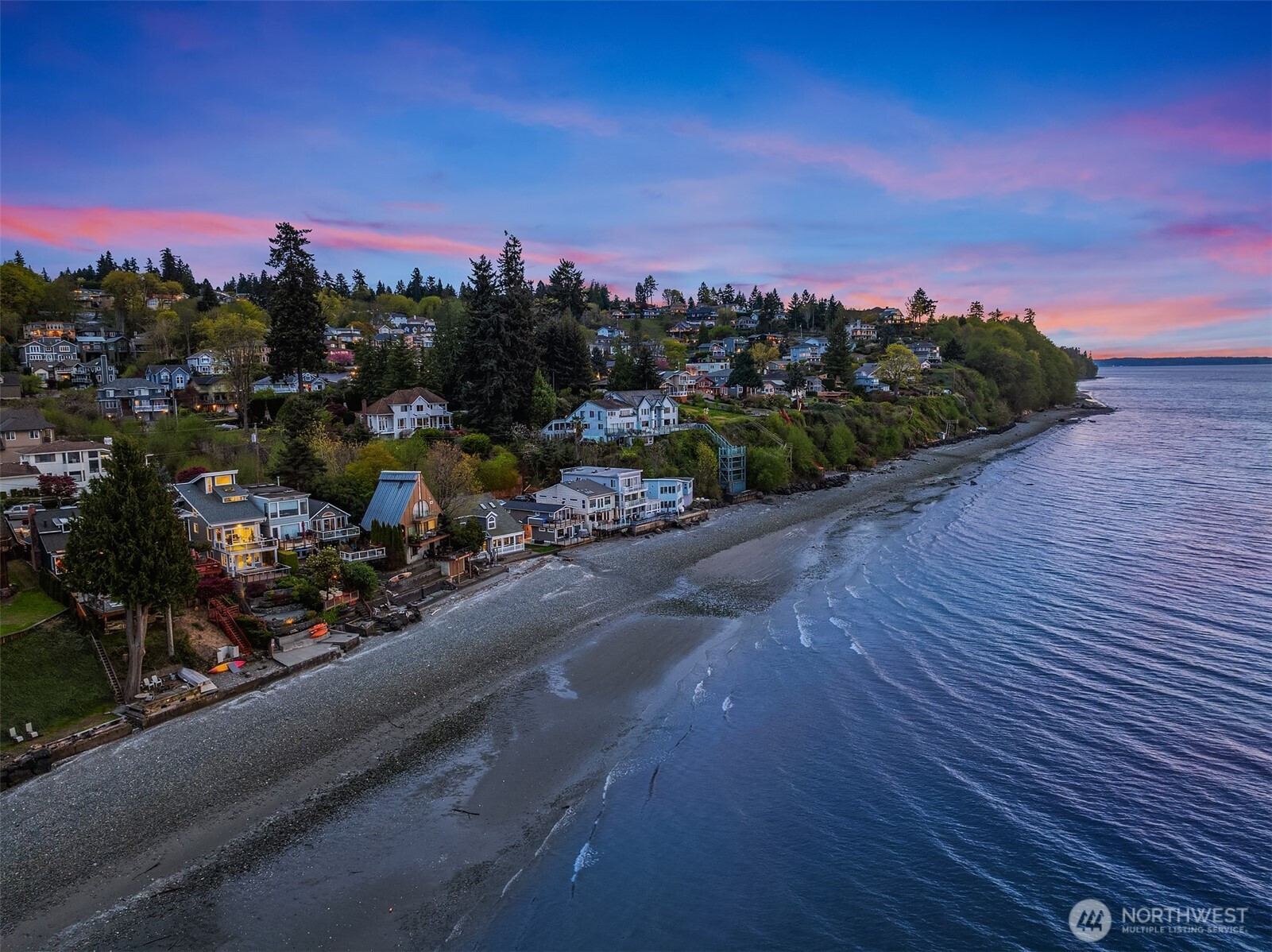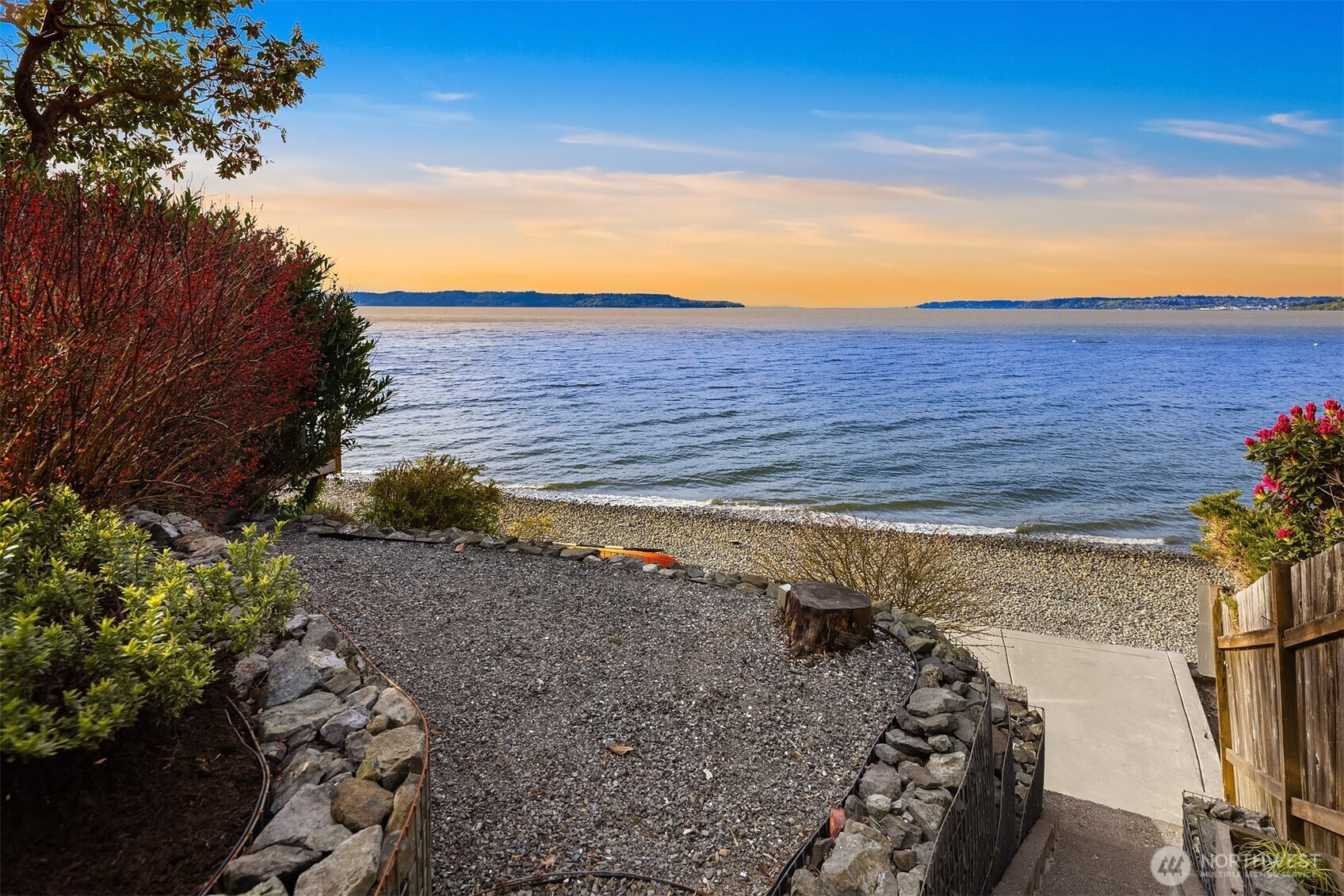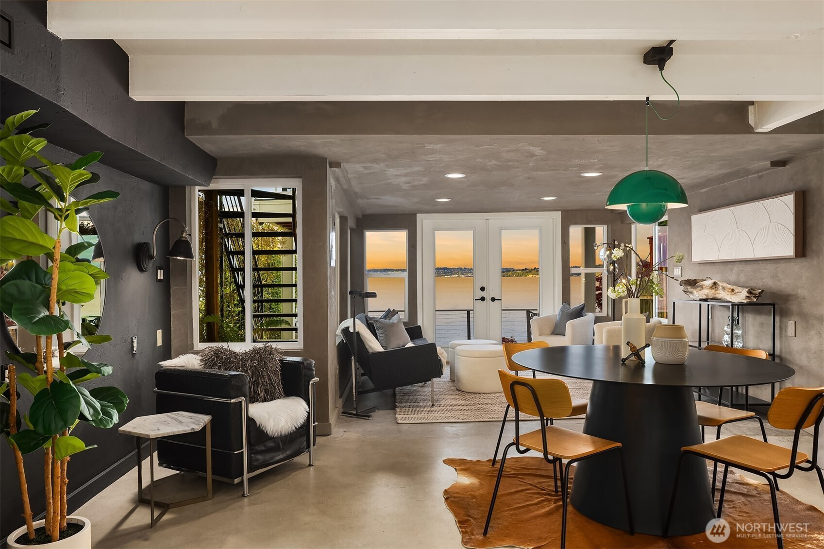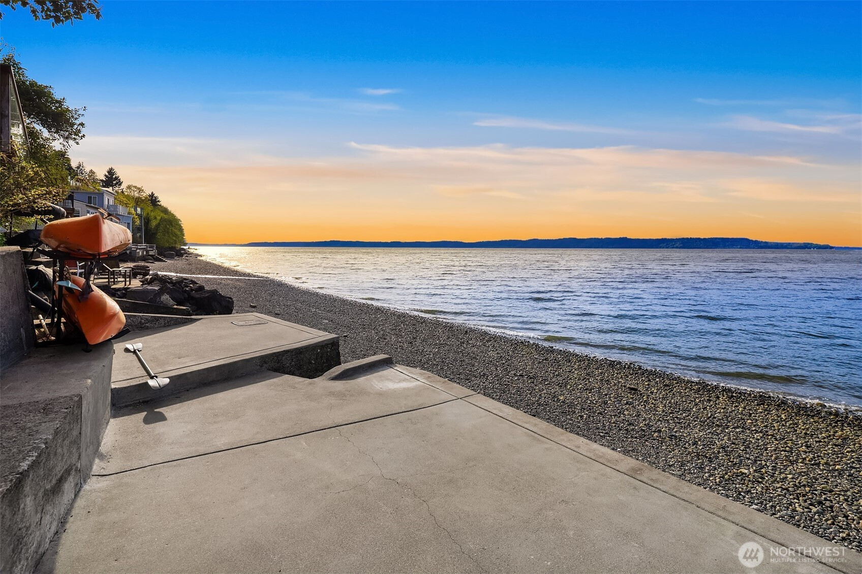 Industrial sophistication meets California–coastal ease w/ this striking low-bank Redondo waterfront home. Architecturally reimagined for clean aesthetics & everyday practicality, the interior—evocative of Olson Kundig—pairs steel, concrete, wood & glass to blend quiet drama w/ relaxed comfort: a true Pacific Northwest retreat. Generously scaled, open rooms, vaulted ceilings, & a custom staircase create an ideal fusion of urban edge & sea rejuvenation. Step out to layered decks & patios to breathe in the salt air & listen to gentle waves roll across your private shoreline—a seamless indoor–outdoor connection. The upper level unfolds as a playful, private primary loft suite, offering treehouse-like serenity & comfort. Exceptionally versatile, the home can live as one residence or two, w/ the lower-level functioning as separate MIL quarters & potential short-term/income-producing rental. Outside, the grounds cascade to the water’s edge in layered gardens & intimate sanctuaries. A concrete pad at the shoreline is perfect for launching kayaks & paddleboards; anchor your boat before you & explore the islands across the bay. From beach walks to sunset paddles, Puget Sound is truly your backyard playground. Conveniently located, the property offers easy access to Light Rail, public transit to downtown Seattle, major freeways, & Sea-Tac International Airport. Whether a weekend pied-à-terre or primary residence, this home delivers a rare blend of design, lifestyle, & flexibility.