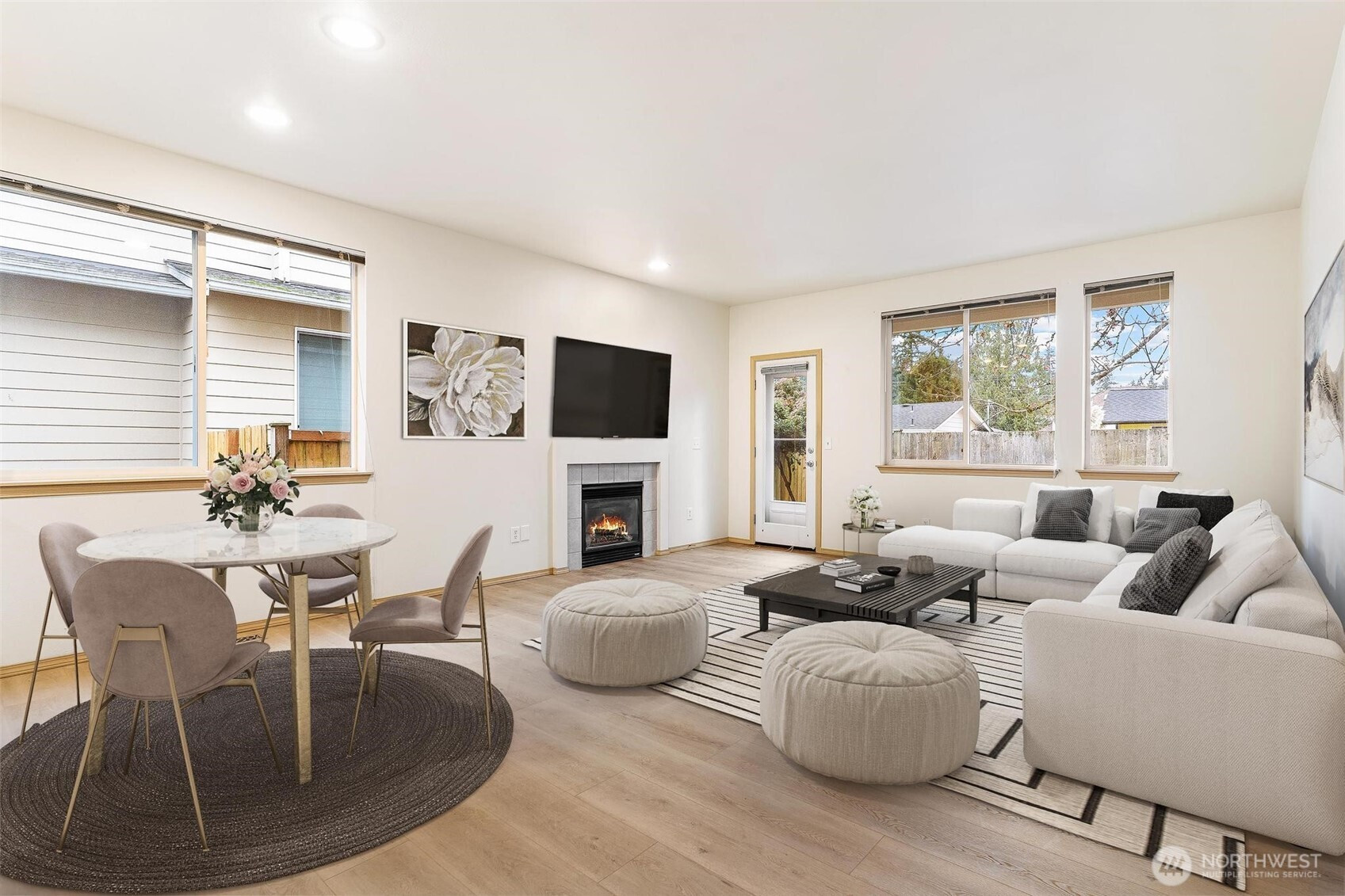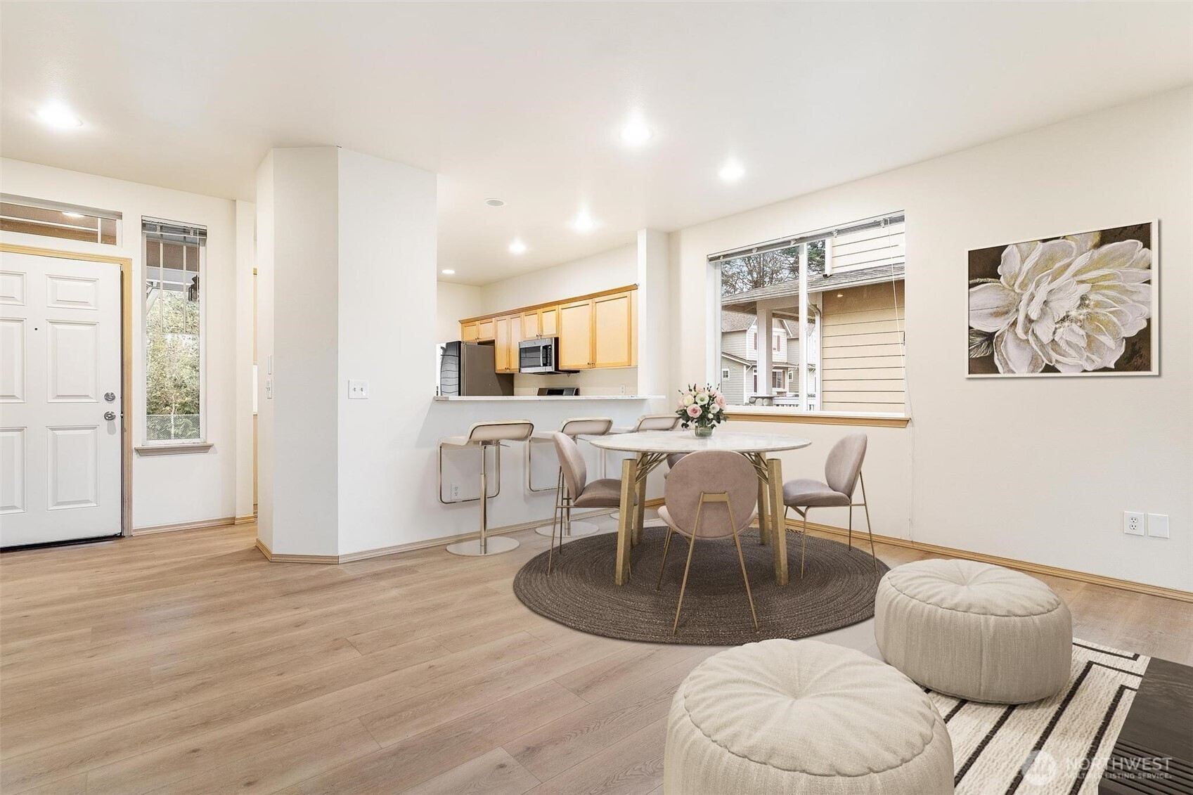 Easy one-level living awaits in this beautifully updated two-bedroom condo featuring an open-concept layout and immense natural light throughout. Enjoy brand-new luxury vinyl plank flooring, fresh interior paint, and a modernized kitchen with quartz countertops and stainless-steel appliances. The grand primary suite includes an updated ensuite bathroom and a roomy walk-in closet. Step outside to a covered front porch or relax on the private patio overlooking the freshly landscaped backyard. With an incredible location near freeway access, commuting is a breeze—move in and enjoy!