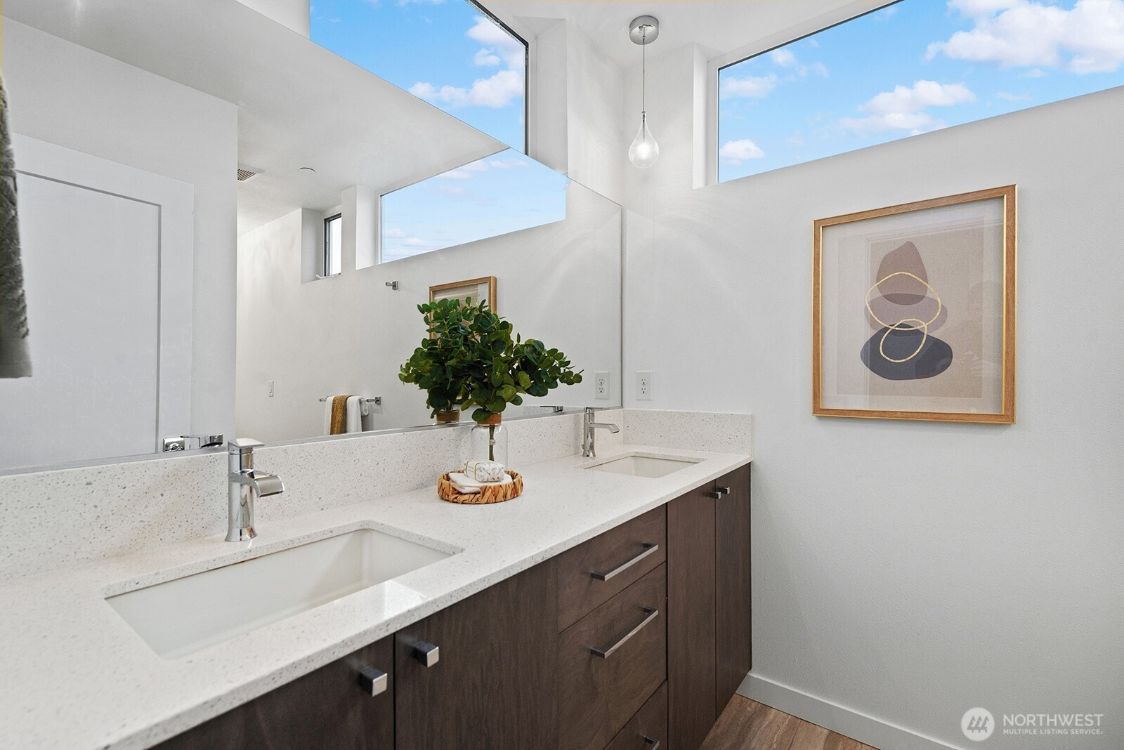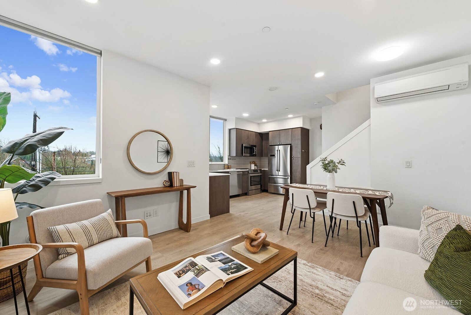 Live luxuriously in this modern, like-new urban retreat designed to maximize light, views, and functional living. Enjoy seamless entertaining in the open-concept kitchen/living/dining room boasting sleek lines, high-end finishes and Bosch stainless appliances (including an induction stovetop!). Sleep well in your king-sized primary suite with walk-in closet, dual sink en-suite, mini-split heat/ac, and a washer/dryer outside your door. The second spacious bedroom has a large closet, room for a desk, and full bathroom right outside. Relax in the top-level bonus room with vaulted ceilings, walls of windows, and a large deck for taking in city and mountain views. Use it as an office, a lounge area or third bedroom! Convenient minibar and beverage fridge! One designated EV ready parking space! Easy commute downtown with the C-line, water taxi shuttle and quick highway access nearby. Ideally located in the heart of West Seattle just steps away from local restaurants, boutiques, and cafes and minutes from Alki Beach, Lincoln Park, and more!