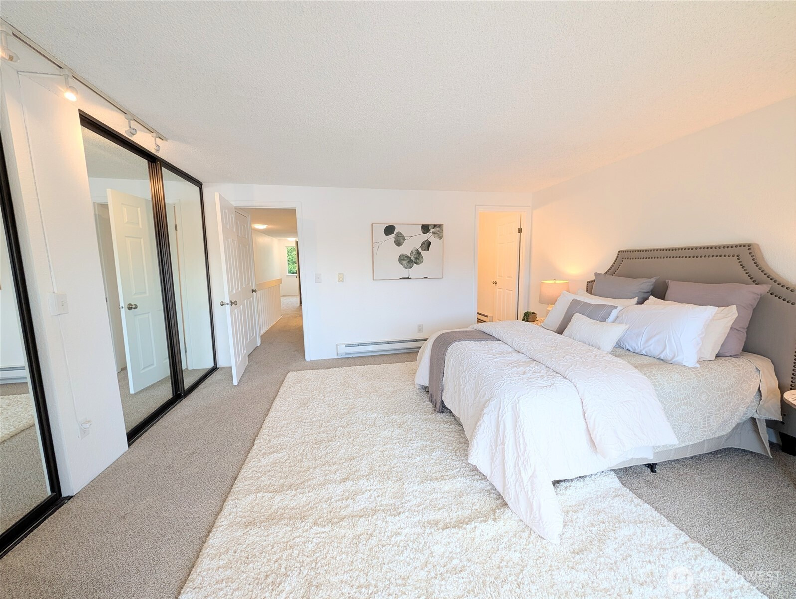 Discover your dream home on Easter Lake! Hard-to-find, special 3BR townhome, like a SFH@1674SF. Bright & beautifully updated 2story w/stunning lake views, new LVP flrs, lighting, carpet, fresh paint, fully Renovated Kitchen w/quartz slab, bkfst bar, new LG SS appliances. Open dining/living rm w/cozy wood FP flows to spacious lakefront deck-perfect for BBQs, yoga & bird-watching. Entertain & Relax! Upstairs: retreat to serene lake views from primary BR w/3pc ensuite, lrg closet, covered balcony; plus 2 generous BRs & full BA -room for all! Attached garage, ½BA, full-sz WD & ample storage add convenience. Perks: lakeside pool, low HOA, Under Cap. Quiet yet Close to shops, dining, parks, schools & easy commuter routes. Claim your lakeside gem!