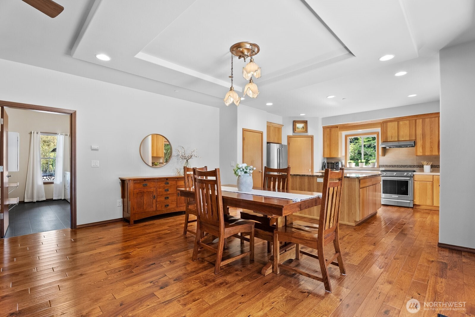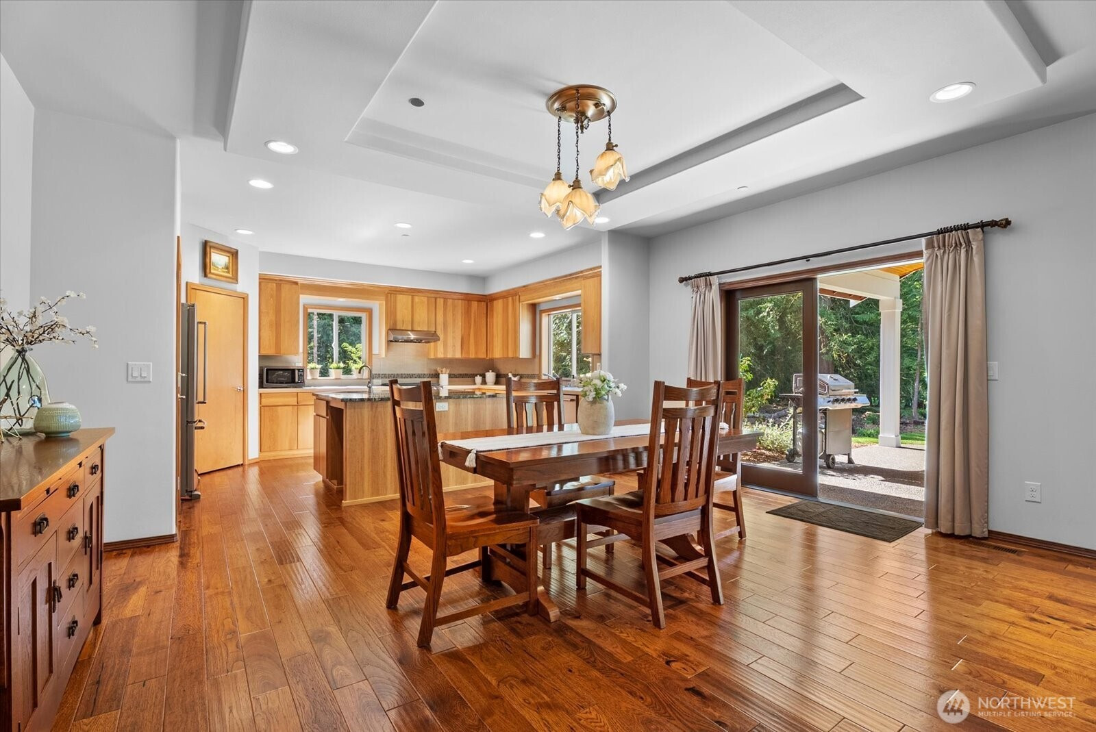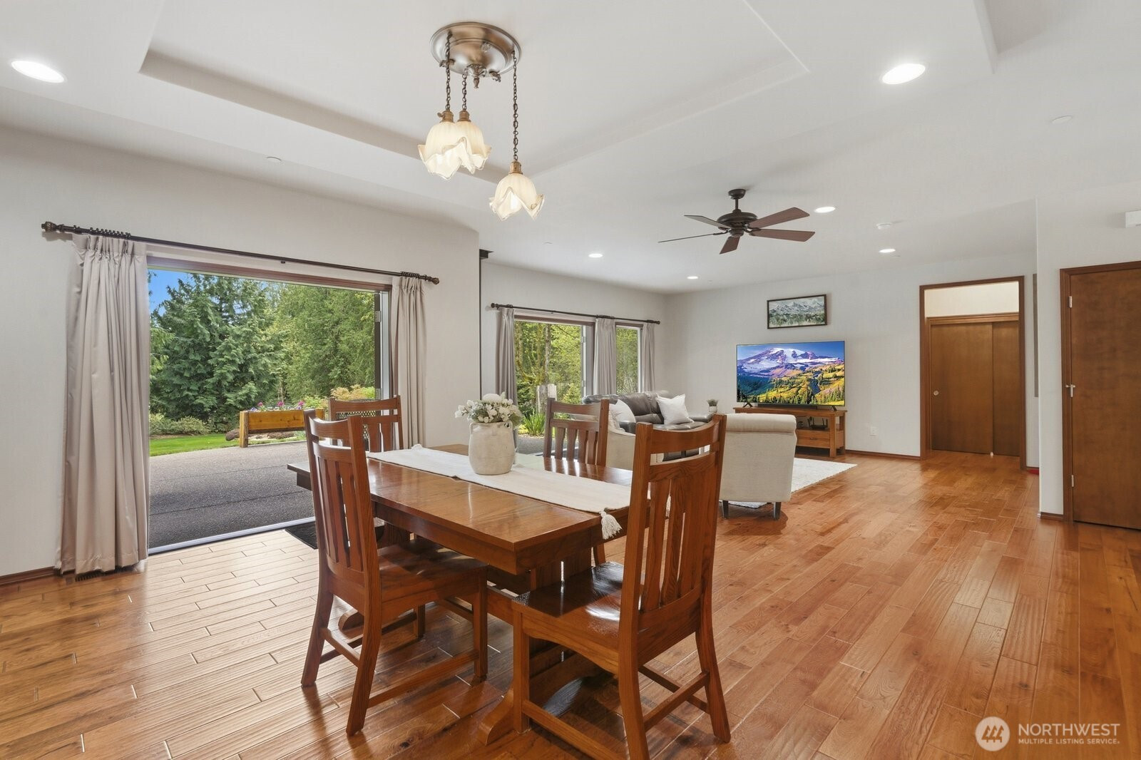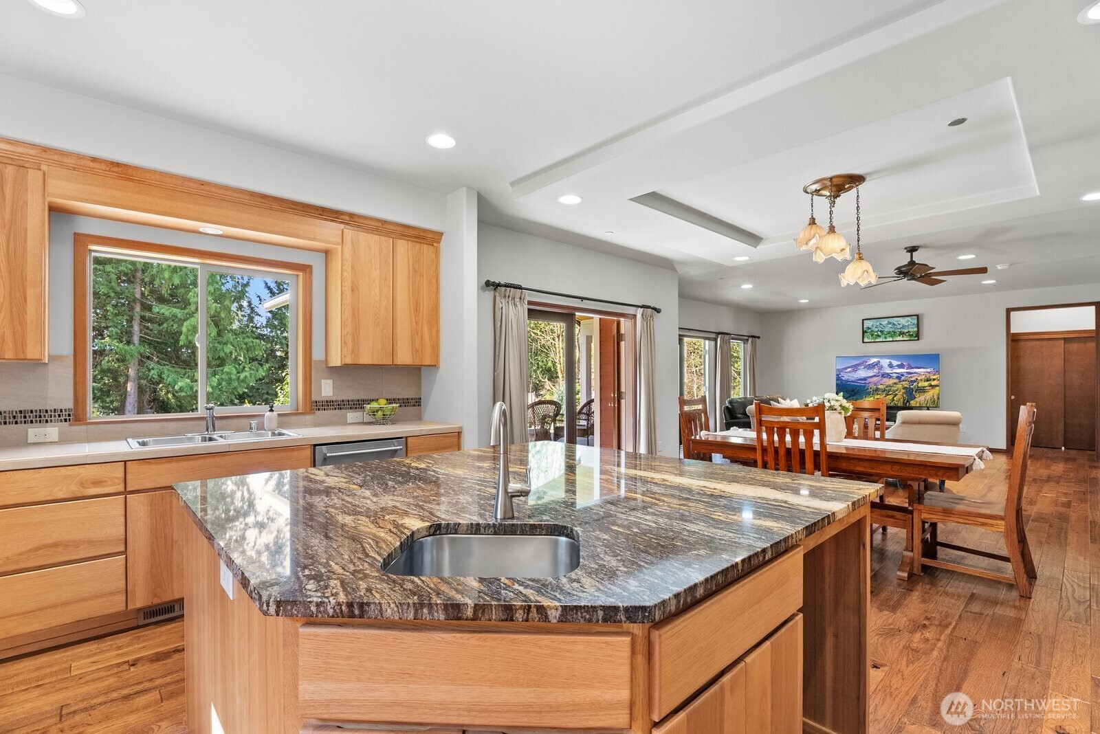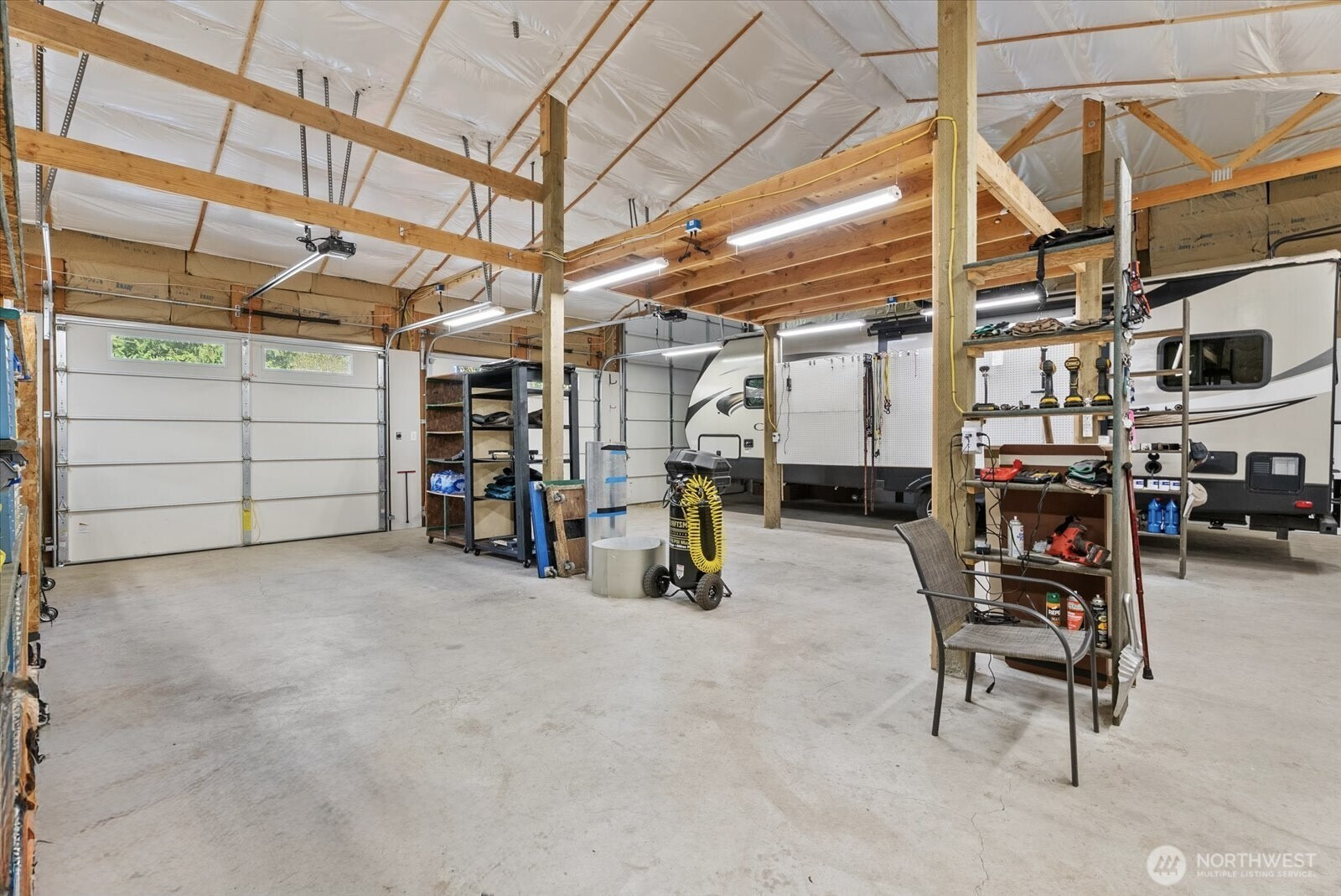 If you’ve been searching for a property that combines comfort, function, and space to live your dream lifestyle, this is it. This thoughtfully designed custom one story home offers easy living with 3 bedrooms, 2 bathrooms, and an open floorplan. The heart of the home features real hand scraped hickory floors, a warm wood burning stove, and 9ft ceilings throughout. The chef’s kitchen includes custom cabinets, granite counters, an island with second sink, and double pantries, perfect for everyday living and hosting. The primary suite offers a quiet retreat with a walk-in shower, double sinks, and walk-in closet. This home has many ADA features. Double French doors open to a large, covered patio with Lake Morton views and overlooking the properties sprawling fruit orchard. Enjoy peaceful walks along private trails or nearby lake access with a boat launch a couple blocks away. The 1,800 sqft heated shop (50x36) features four bays, including an extra wide, extra tall RV stall, plus a ¾ bath, ideal for a future ADU or MIL. Equipped with 125 amp service with 220/110 power. Additional, covered RV parking includes septic, water, and power hookups. A 10x20 greenhouse supports year-round gardening. This custom home was built with intention and practicality in mind.