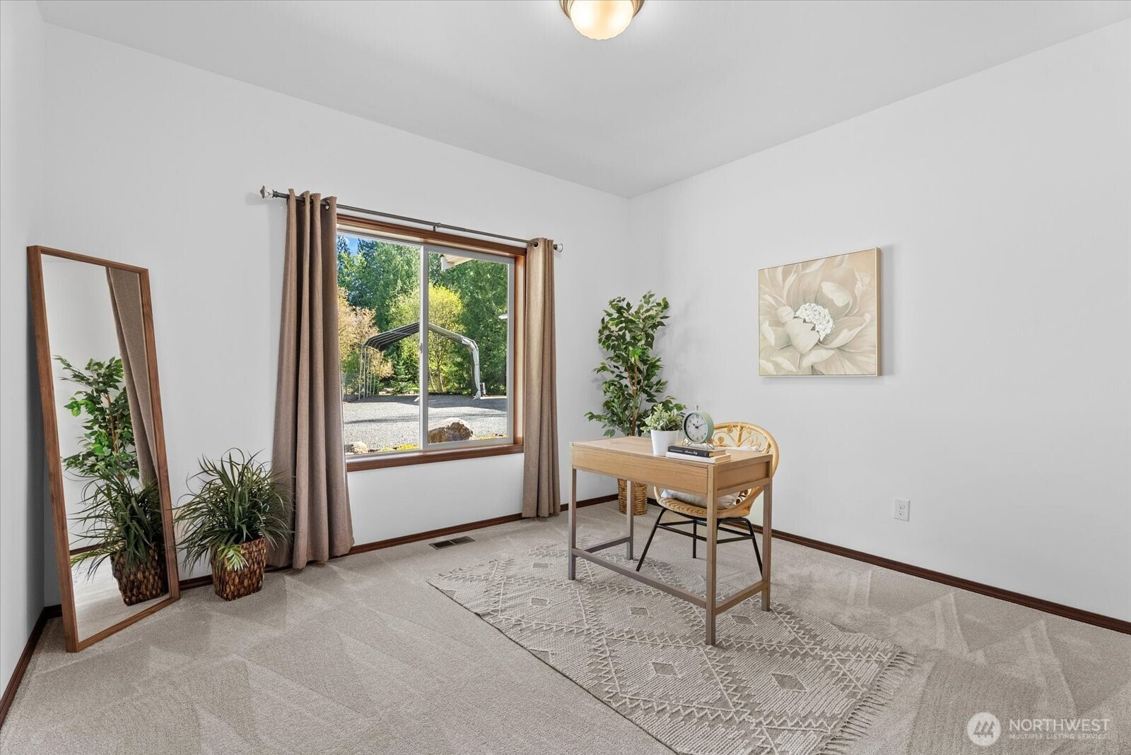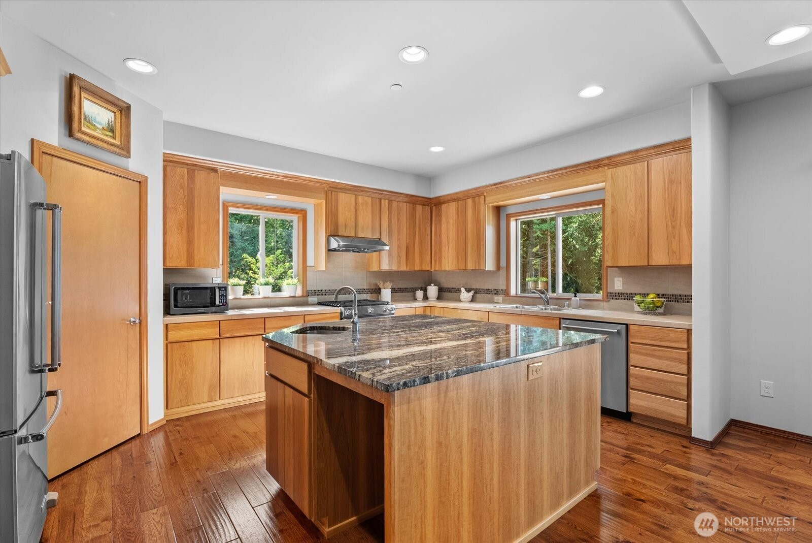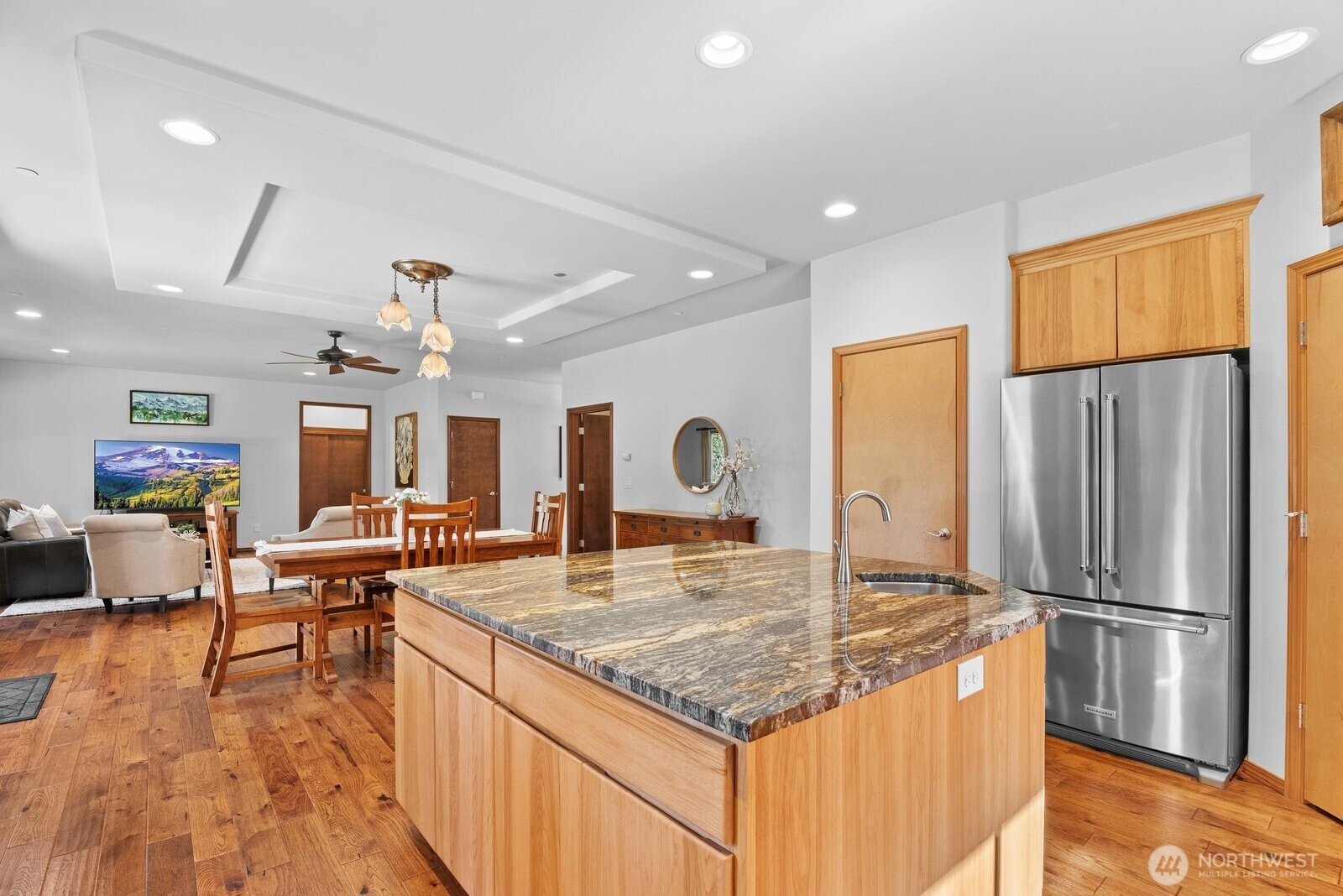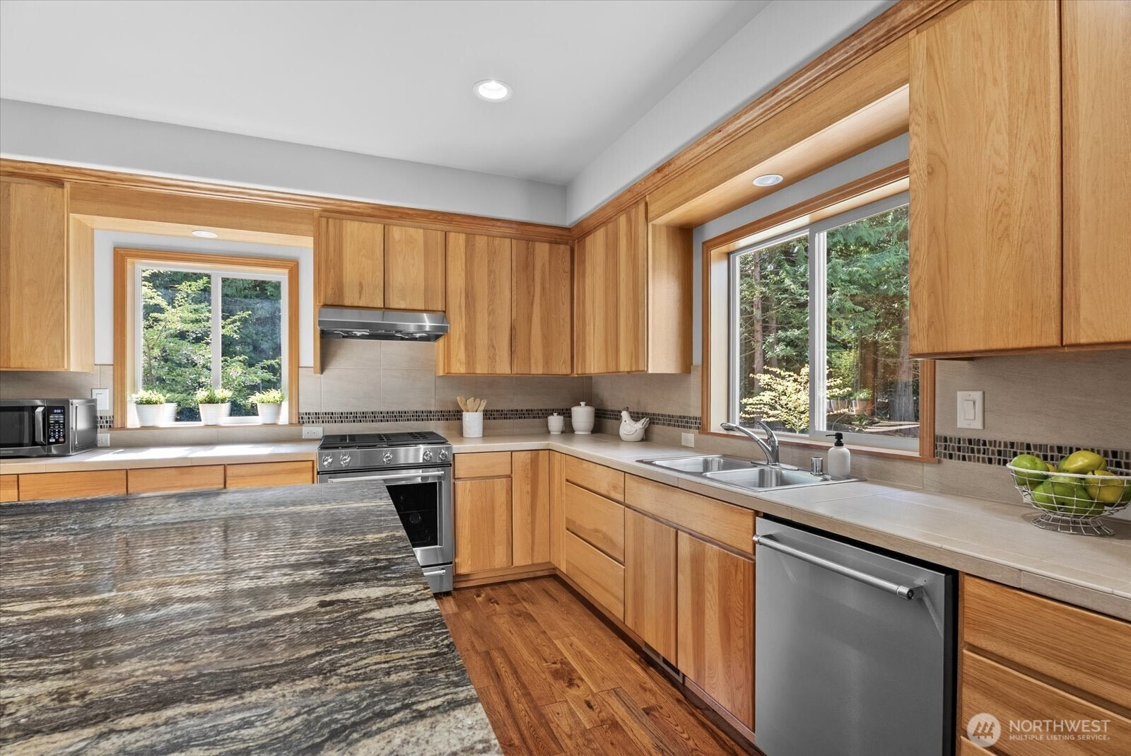 If you’ve been searching for a property that combines comfort, function, and space to live your dream lifestyle, this is it. This thoughtfully designed custom one story home offers easy living with 3 bedrooms, 2 bathrooms, and an open floorplan. The heart of the home features real hand scraped hickory floors, a warm wood burning stove, and 9ft ceilings throughout. The chef’s kitchen includes custom cabinets, granite counters, an island with second sink, and double pantries, perfect for everyday living and hosting. The primary suite offers a quiet retreat with a walk-in shower, double sinks, and walk-in closet. This home has many ADA features. Double French doors open to a large, covered patio with Lake Morton views and overlooking the properties sprawling fruit orchard. Enjoy peaceful walks along private trails or nearby lake access with a boat launch a couple blocks away. The 1,800 sqft heated shop (50x36) features four bays, including an extra wide, extra tall RV stall, plus a ¾ bath, ideal for a future ADU or MIL. Equipped with 125 amp service with 220/110 power. Additional, covered RV parking includes septic, water, and power hookups. A 10x20 greenhouse supports year-round gardening. This custom home was built with intention and practicality in mind.