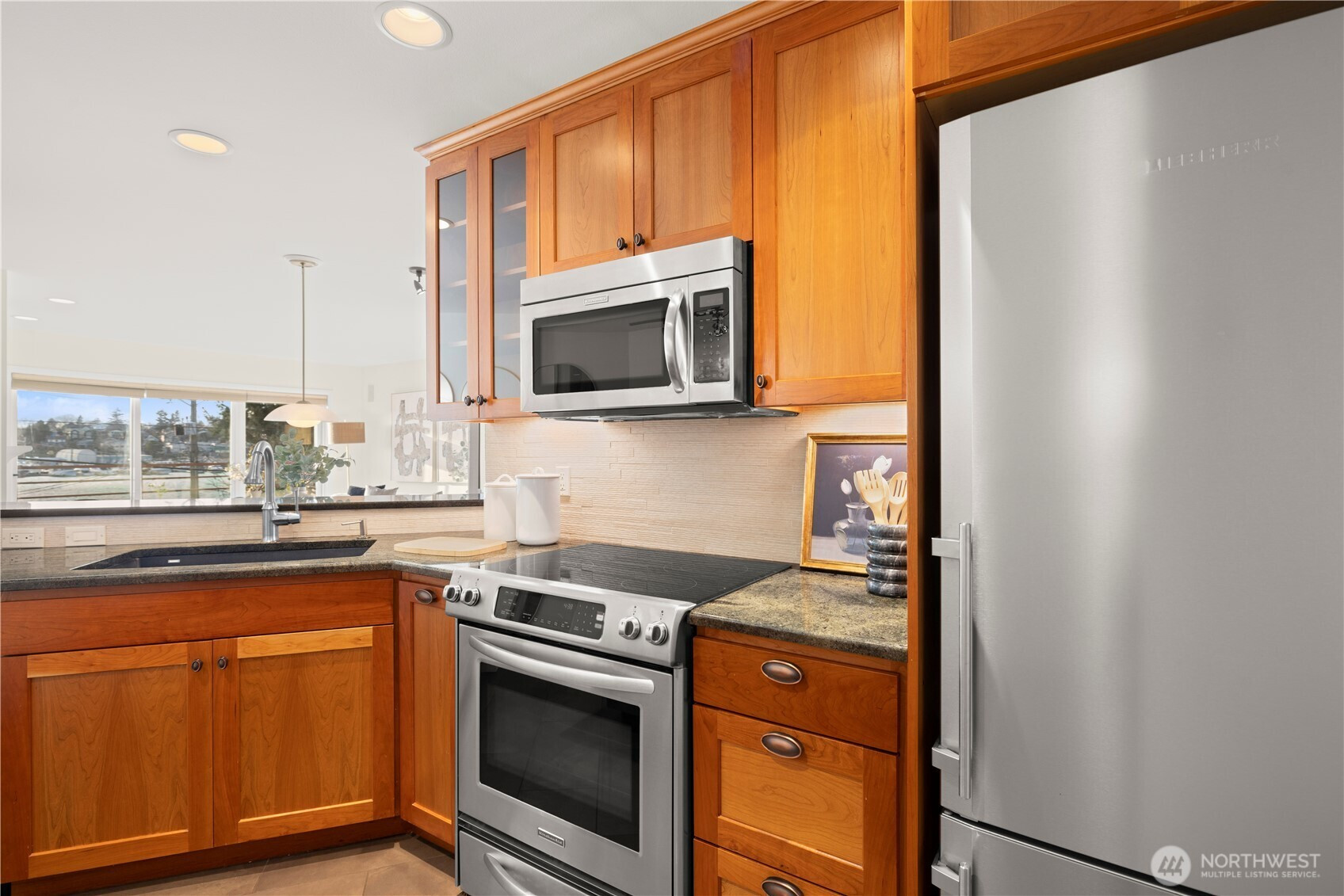 Experience the quintessential Eastlake lifestyle in this premium two-story condo at 3100 Fairview. Positioned on the 3rd and 4th floors, this west-facing home offers an unparalleled front-row seat to Lake Union. The main level features an open-concept kitchen with granite countertops and stainless appliances, flowing into a living area centered around a cozy gas fireplace. Step out onto the private balcony to enjoy 180-degree views of seaplanes and sailboats. This level is rounded out by a full bath with heated tile floors and a laundry area with an in-unit washer/dryer. Upstairs, the layout is designed for comfort and privacy. The primary suite serves as a true retreat with its own private lake-view balcony, walk-in closet, and an attached en-suite bathroom featuring a double vanity, tiled-in shower, and heated floors. Down the hall, the spacious second bedroom is an ideal flex space for a high-end home office. Practicality meets luxury with two dedicated parking spots w EV charging, & 2 storage units located on each balcony. Located directly across from the Seattle College Rowing Club, Fairview Park kayak launch and P-Patch, recreation is at your doorstep. Enjoy local favorites like Eastlake Coffee or the building’s rooftop patio with views of the Space Needle and Seattle skyline. A special financing incentive is available: offering a 2-1 lender-paid buydown, significantly lowering your interest rate for the first two years. Fully staged and move-in ready—welcome home!