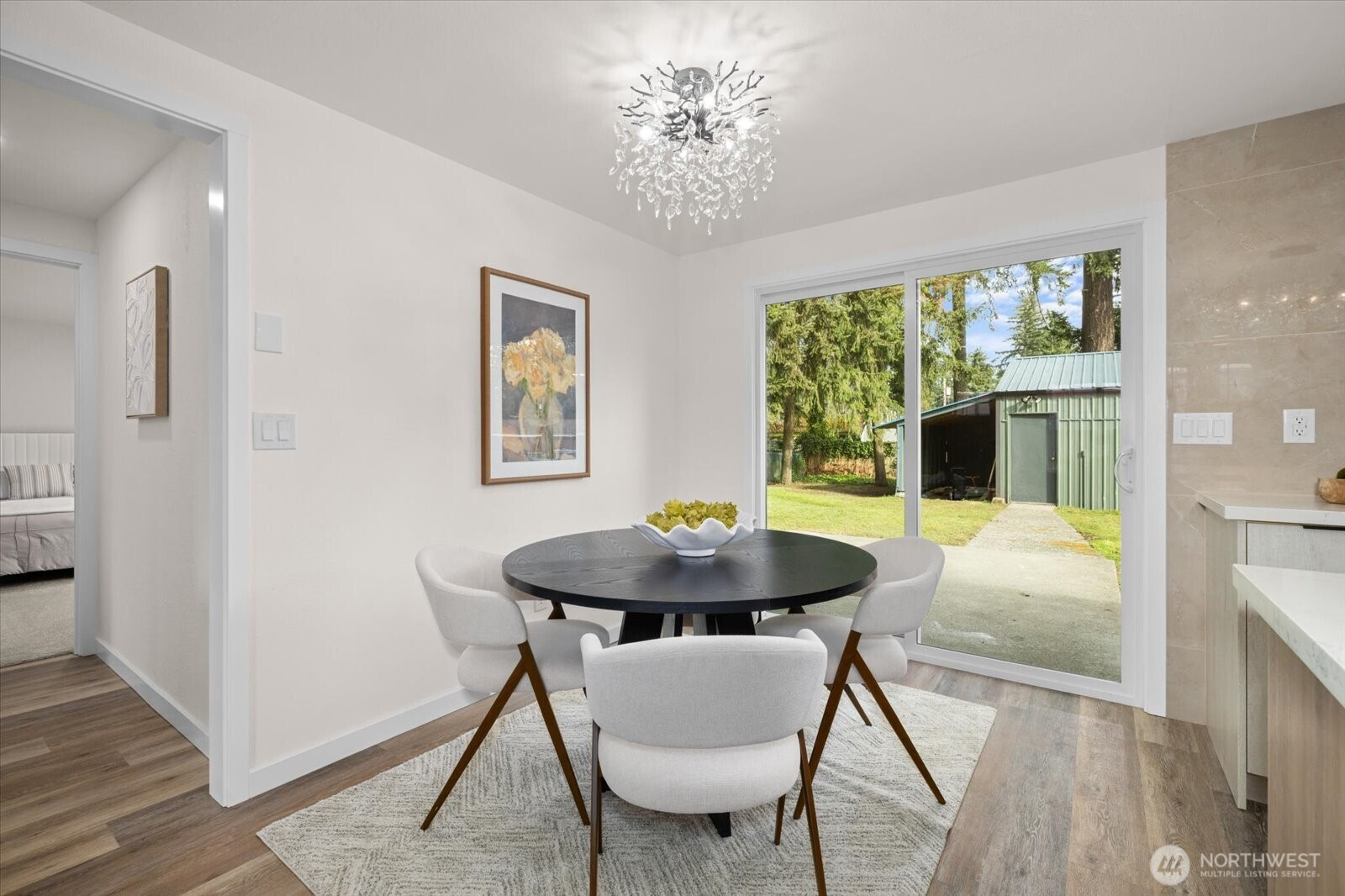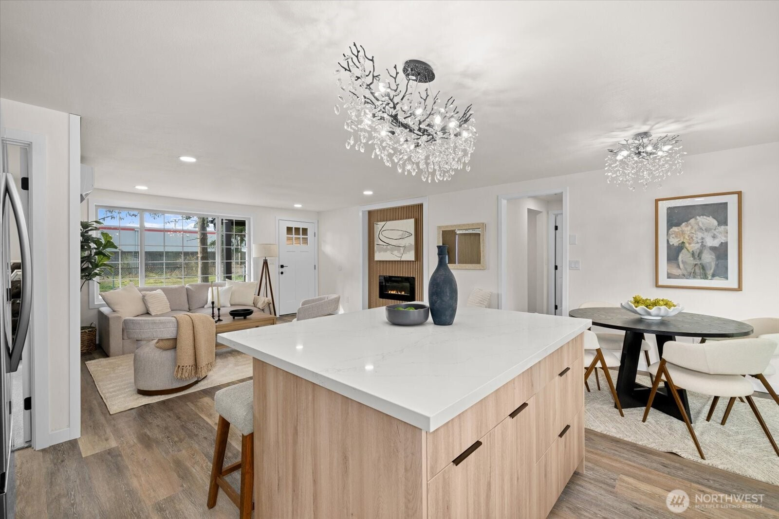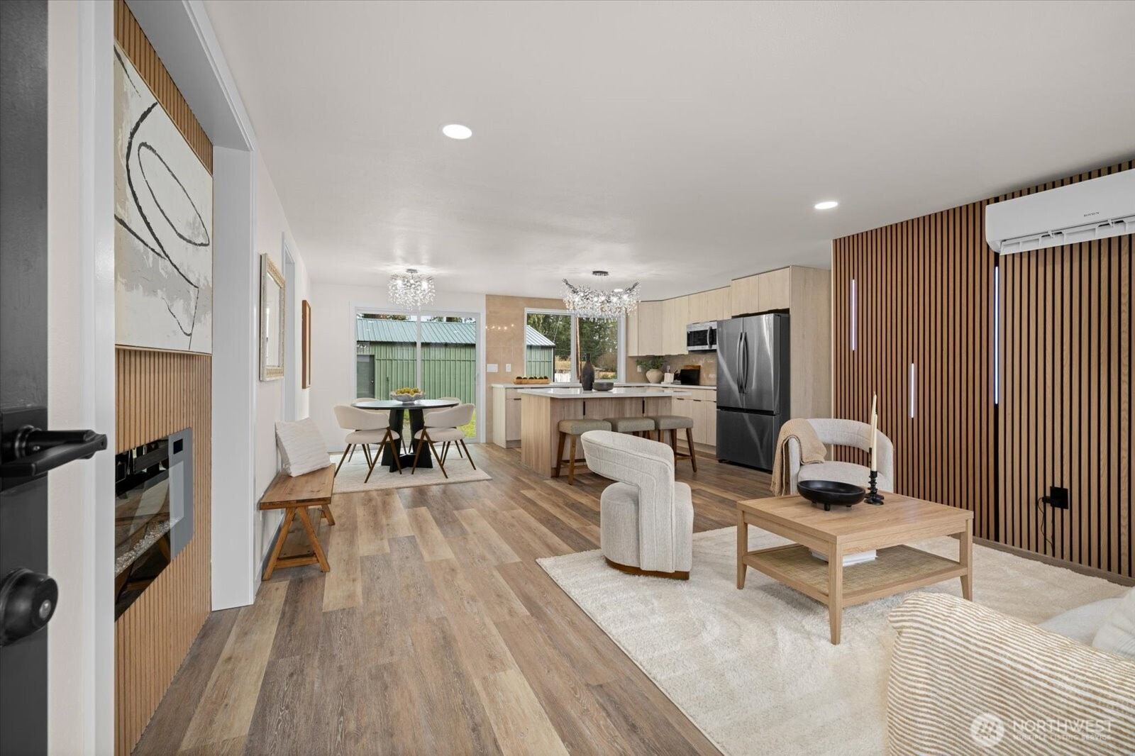 Completely renovated with modern, tasteful finishes, this thoughtfully designed home offers the perfect balance of style, comfort, & functionality. Located on a desirable corner lot, it provides added privacy, space, & flexibility. The home features 5 bedrooms w/ a layout that feels both efficient & intentional. The primary suite is a true retreat, complete w/direct access to the deck—ideal for quiet mornings or unwinding in the evening. Nearby, an oversized room offers exceptional versatility & can easily serve as a playroom, studio, home office, or additional bedroom. Living spaces feel warm and inviting, highlighted by an electric fireplace & a striking modern feature wall with wood panels and sleek bar lighting, creating a clean, cozy, & contemporary atmosphere. The kitchen is bright & welcoming, featuring new appliances, beautifully selected cabinetry & a timeless modern design suited for everyday living and entertaining.Additional bedrooms are well positioned to allow for comfortable separation of space & privacy.One bedroom features a semi-en suite bathroom, offering added convenience.Outside, the spacious backyard provides endless possibilities for recreation, gardening or future projects. A detached 670 sqft garage offers excellent space for a workshop, hobby area, or additional storage. Ample parking is available in the driveway, off street, & in the backyard.This move-in-ready home combines thoughtful design, modern upgrades & a highly desirable corner-lot setting