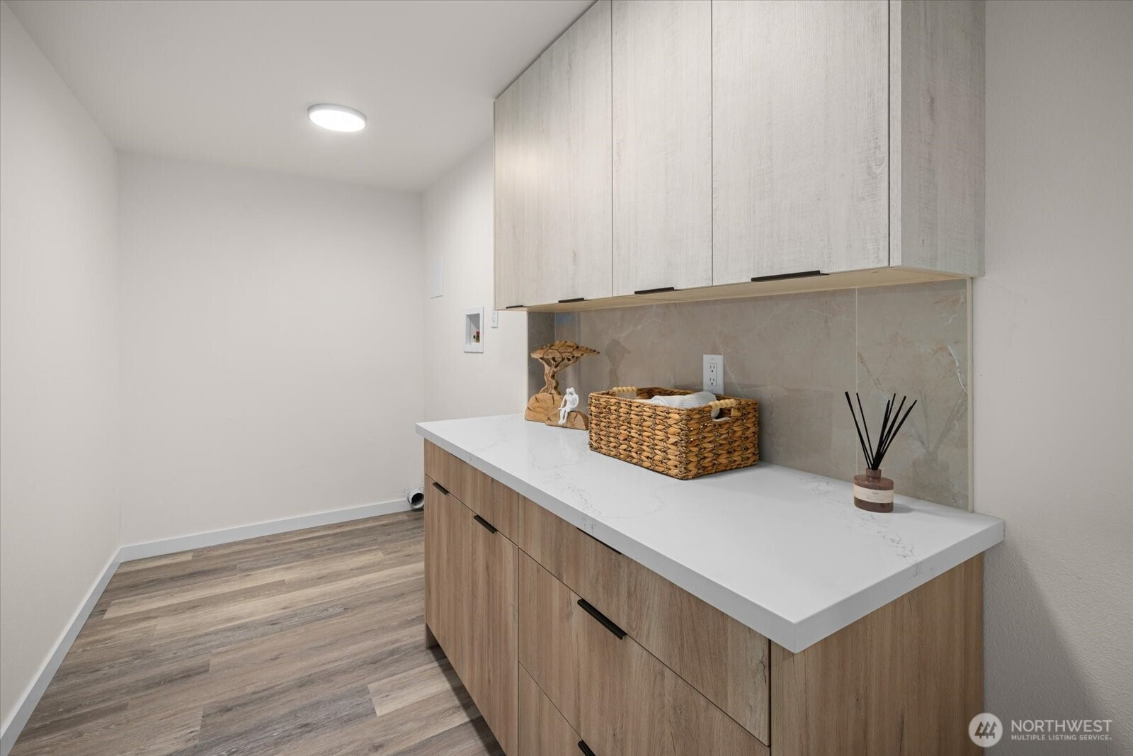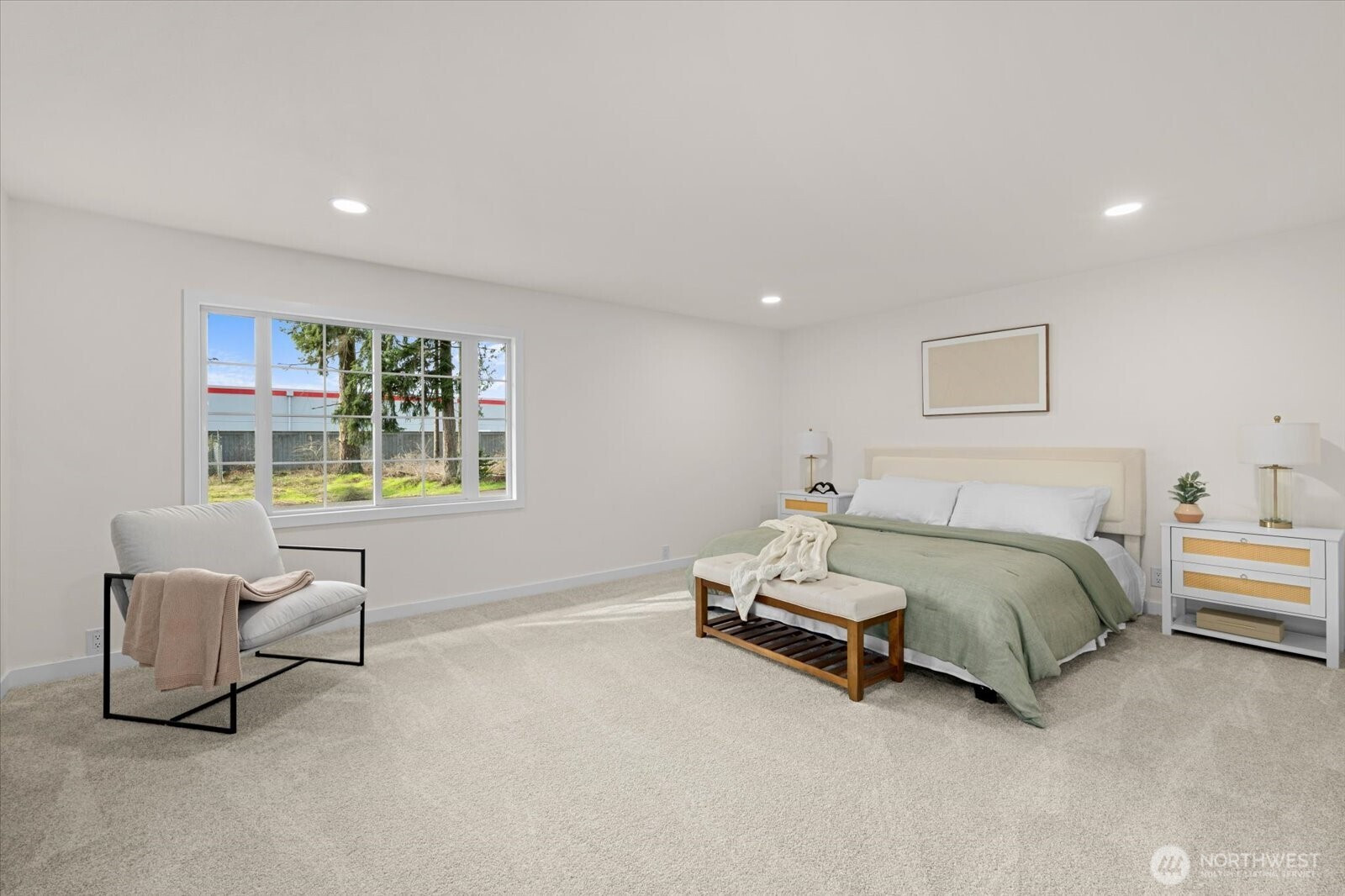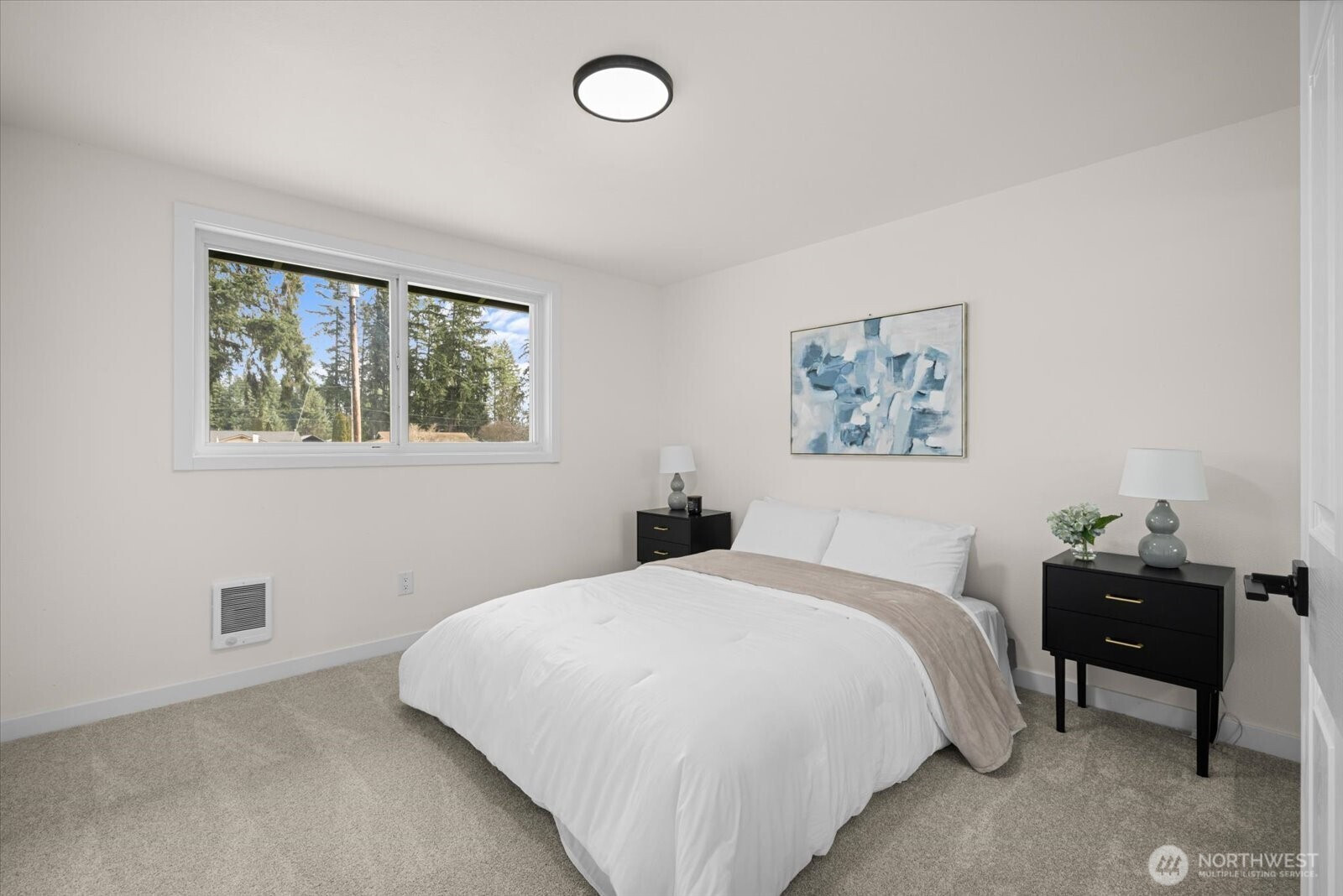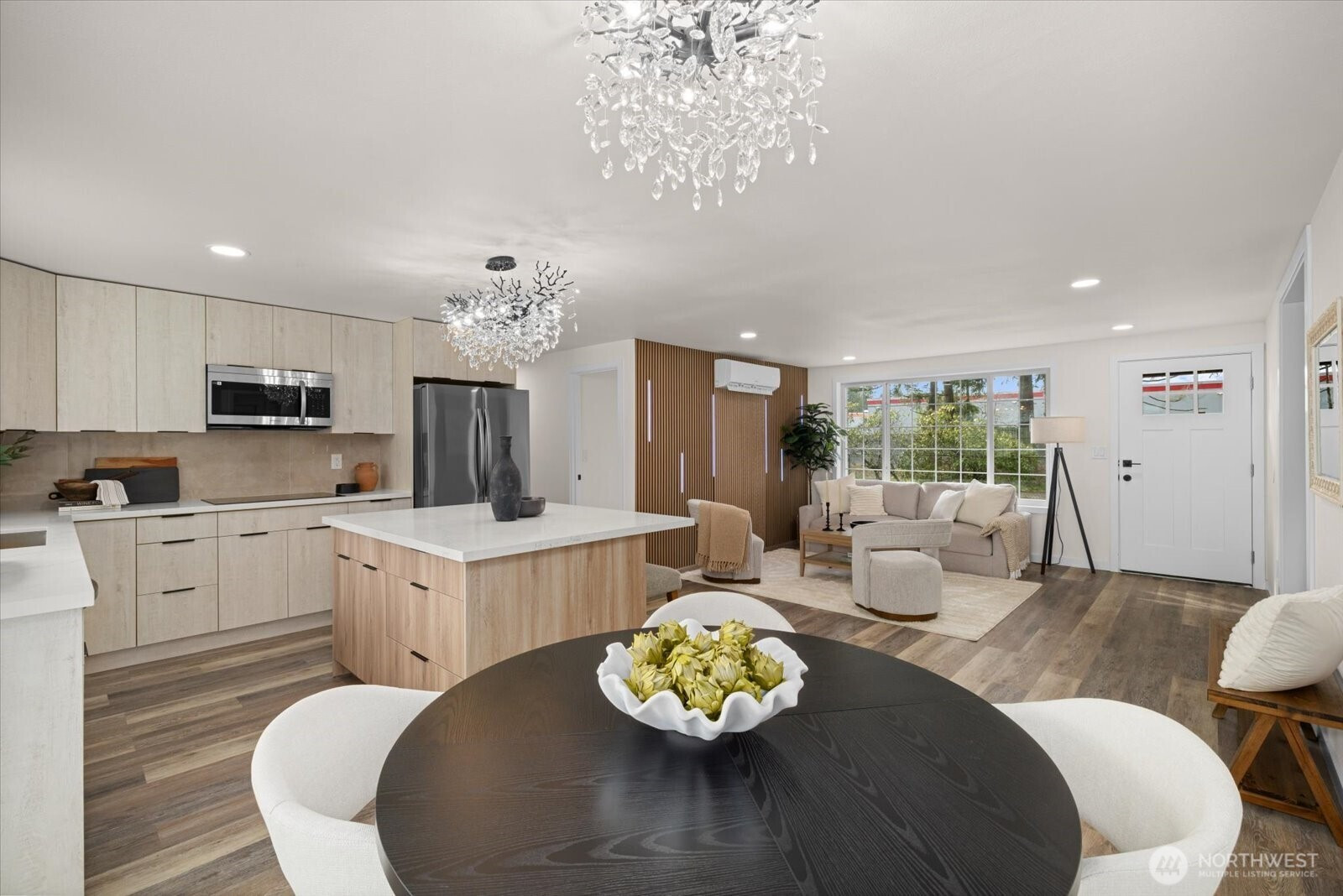 Completely renovated with modern, tasteful finishes, this thoughtfully designed home offers the perfect balance of style, comfort, & functionality. Located on a desirable corner lot, it provides added privacy, space, & flexibility. The home features 5 bedrooms w/ a layout that feels both efficient & intentional. The primary suite is a true retreat, complete w/direct access to the deck—ideal for quiet mornings or unwinding in the evening. Nearby, an oversized room offers exceptional versatility & can easily serve as a playroom, studio, home office, or additional bedroom. Living spaces feel warm and inviting, highlighted by an electric fireplace & a striking modern feature wall with wood panels and sleek bar lighting, creating a clean, cozy, & contemporary atmosphere. The kitchen is bright & welcoming, featuring new appliances, beautifully selected cabinetry & a timeless modern design suited for everyday living and entertaining.Additional bedrooms are well positioned to allow for comfortable separation of space & privacy.One bedroom features a semi-en suite bathroom, offering added convenience.Outside, the spacious backyard provides endless possibilities for recreation, gardening or future projects. A detached 670 sqft garage offers excellent space for a workshop, hobby area, or additional storage. Ample parking is available in the driveway, off street, & in the backyard.This move-in-ready home combines thoughtful design, modern upgrades & a highly desirable corner-lot setting