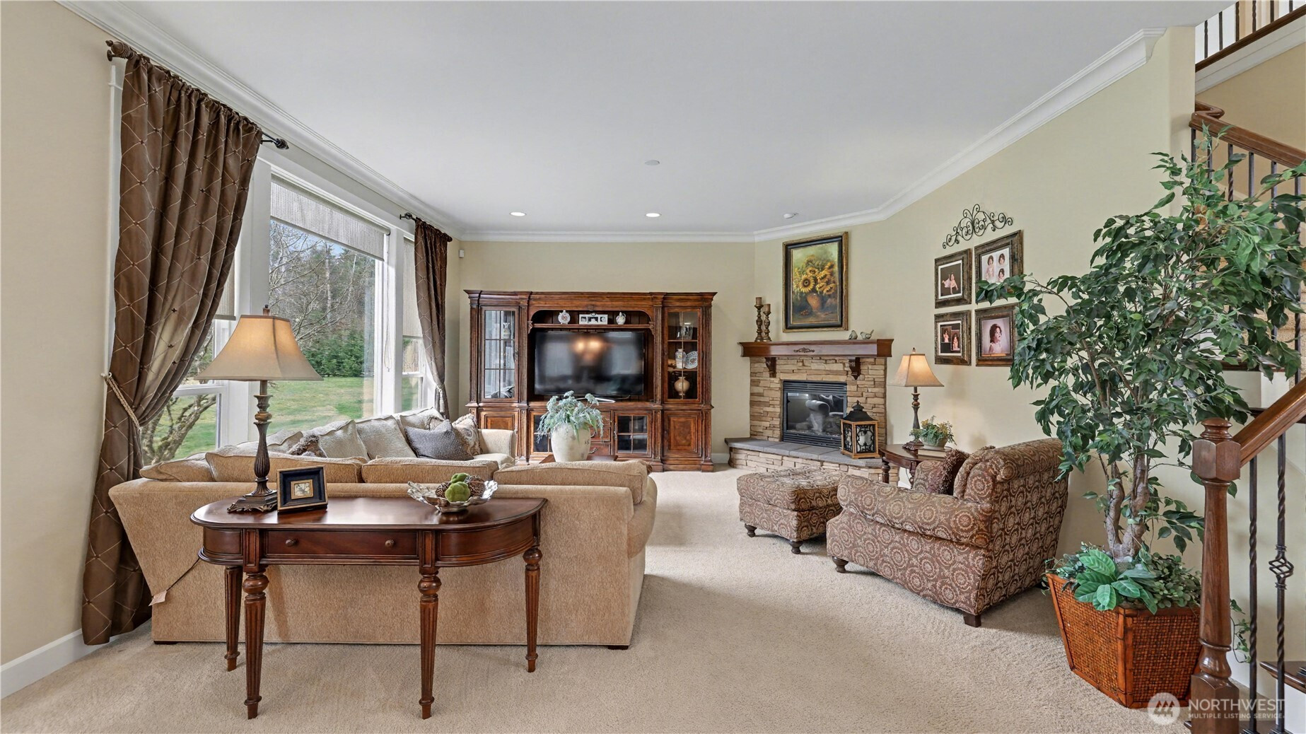 Welcome to The Reserve at Lake Sawyer! This beautifully maintained home offers space, comfort, and thoughtful design throughout. The bright, open great room flows seamlessly into the dining area, creating an inviting setting for everyday living and gatherings. The kitchen features an eating area and connects easily to the living room with a gas fireplace. A main-level office adds flexibility for work or hobbies. Large windows fill the home with natural light, while A/C ensures year-round comfort. Upstairs, the primary suite offers a peaceful retreat, complete with a gas fireplace, two closets, and a well-appointed 5-piece bathroom. Three additional bedrooms provide flexibility for a variety of needs, and the spacious, light-filled bonus room offers the perfect setting for relaxing, entertaining, or everyday living. Outside, enjoy a large backyard with a covered patio—ideal for outdoor dining or unwinding. The expansive 1,400 sq ft 4-car garage provides exceptional space for parking, storage, or projects. This home combines generous living areas with practical features, all in a desirable Black Diamond location.
