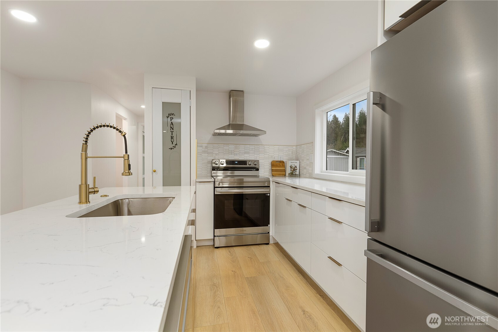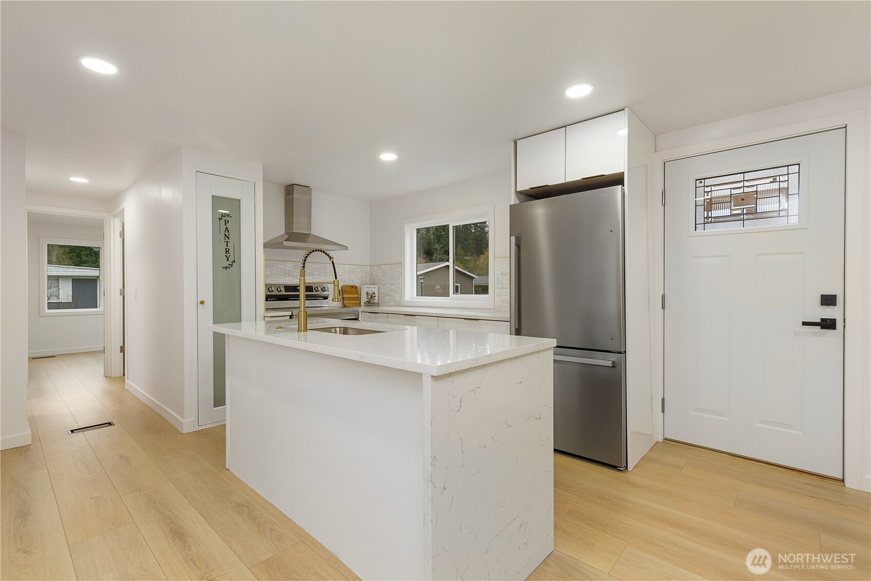 Prepare to be wowed by this fully remodeled 2 bed, 1.75 bath manufactured home in the heart of Black Diamond. Every inch feels brand new, from the custom kitchen with quartz counters, gold-tone fixtures, and stainless steel appliances, to the spa-inspired primary bath featuring a soaking tub, double vanity, and walk-in shower. Light-filled rooms, modern flooring, and frosted glass closets add a luxury touch throughout. Tucked into a peaceful community near Ten Trails & historic downtown. This is not your average manufactured home.... it's a showstopper.